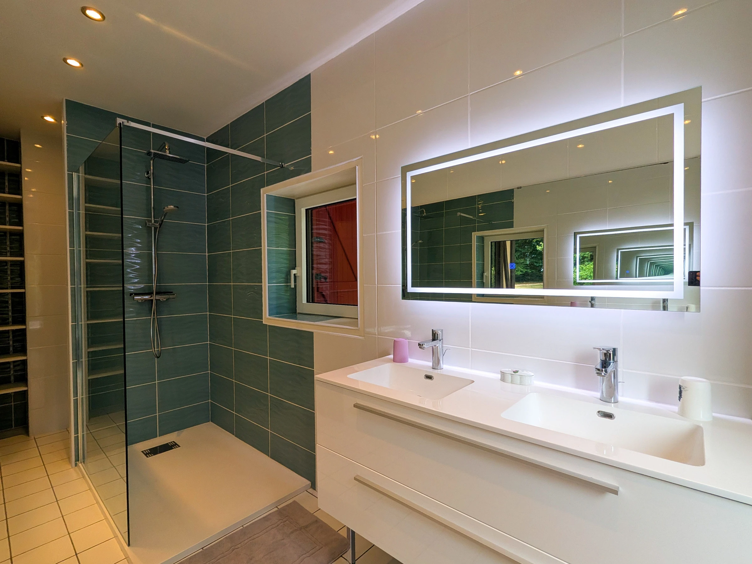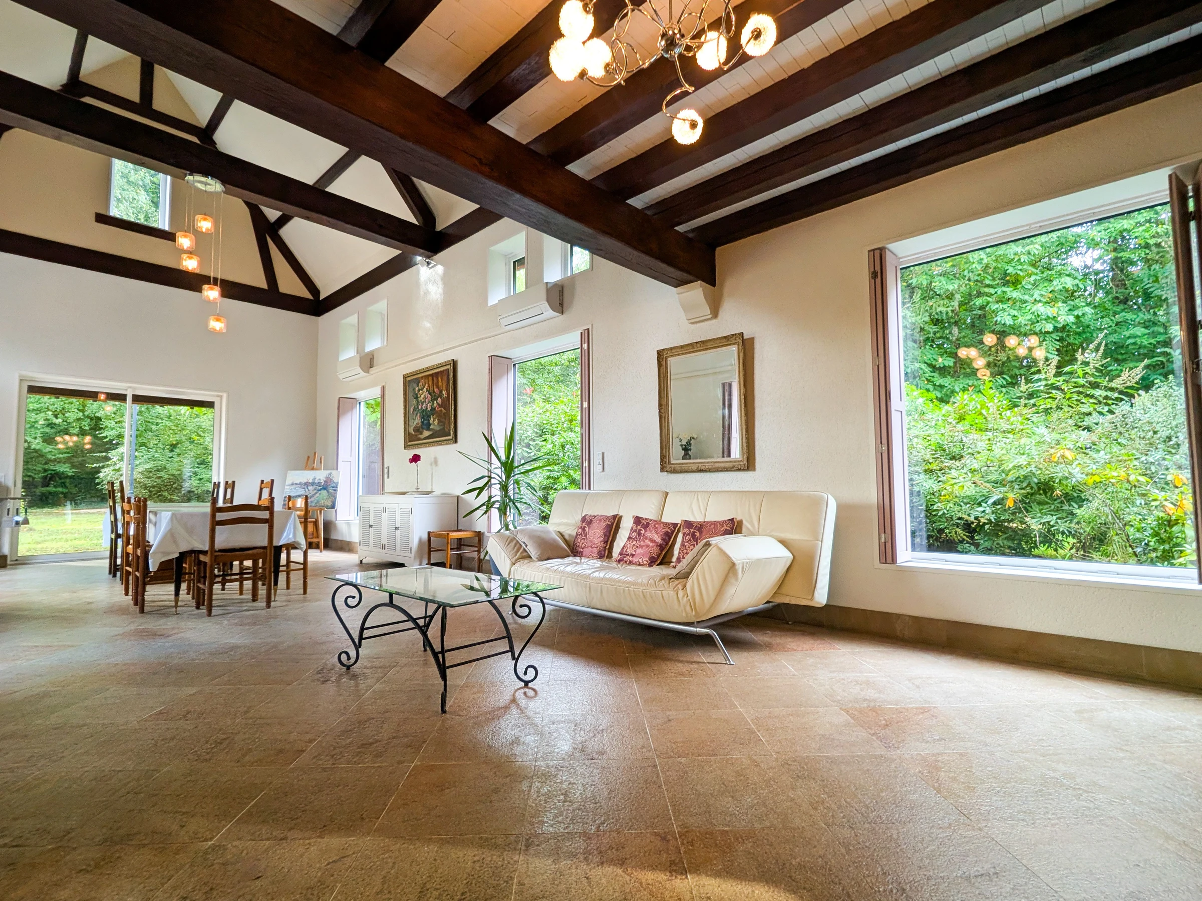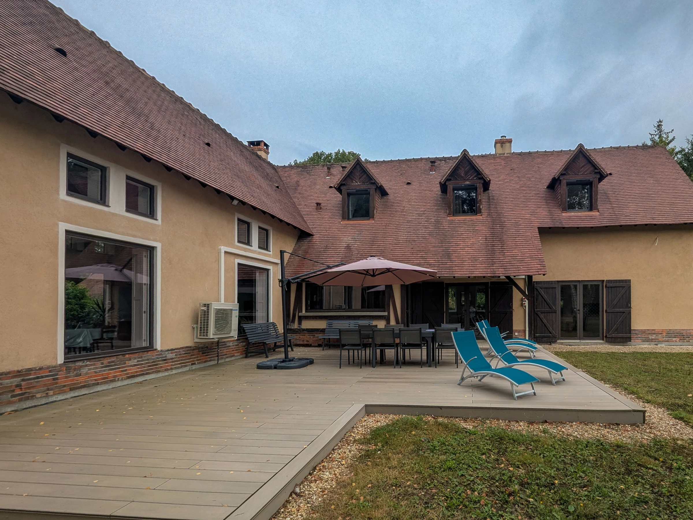 Im Herzen von Berry, nur 20 Minuten vom Zoopark Beauval und in der Nähe von Valençay und den majestätischen Schlössern des Loiretals entfernt, liegt dieses Architektenhaus eingebettet in üppiges Grün. Abgeschieden und ruhig gelegen, bietet es Blick auf einen 1 Hektar großen, bewaldeten Park mit einem herrlichen, 5.000 m² großen privaten Teich. Im Erdgeschoss: eine geräumige Eingangshalle, die zu einer Waschküche und einem separaten WC mit Waschbecken führt. Außerdem finden Sie ein Ess-/Wohnzimmer, eine voll ausgestattete Küche und ein großes, helles Wohnzimmer mit Essbereich und Sitzecke. Ein Familienschlafzimmer (ein Queensize-Bett und zwei Etagenbetten) vervollständigt diese Etage mit direktem Zugang zu einem Duschbad/WC.