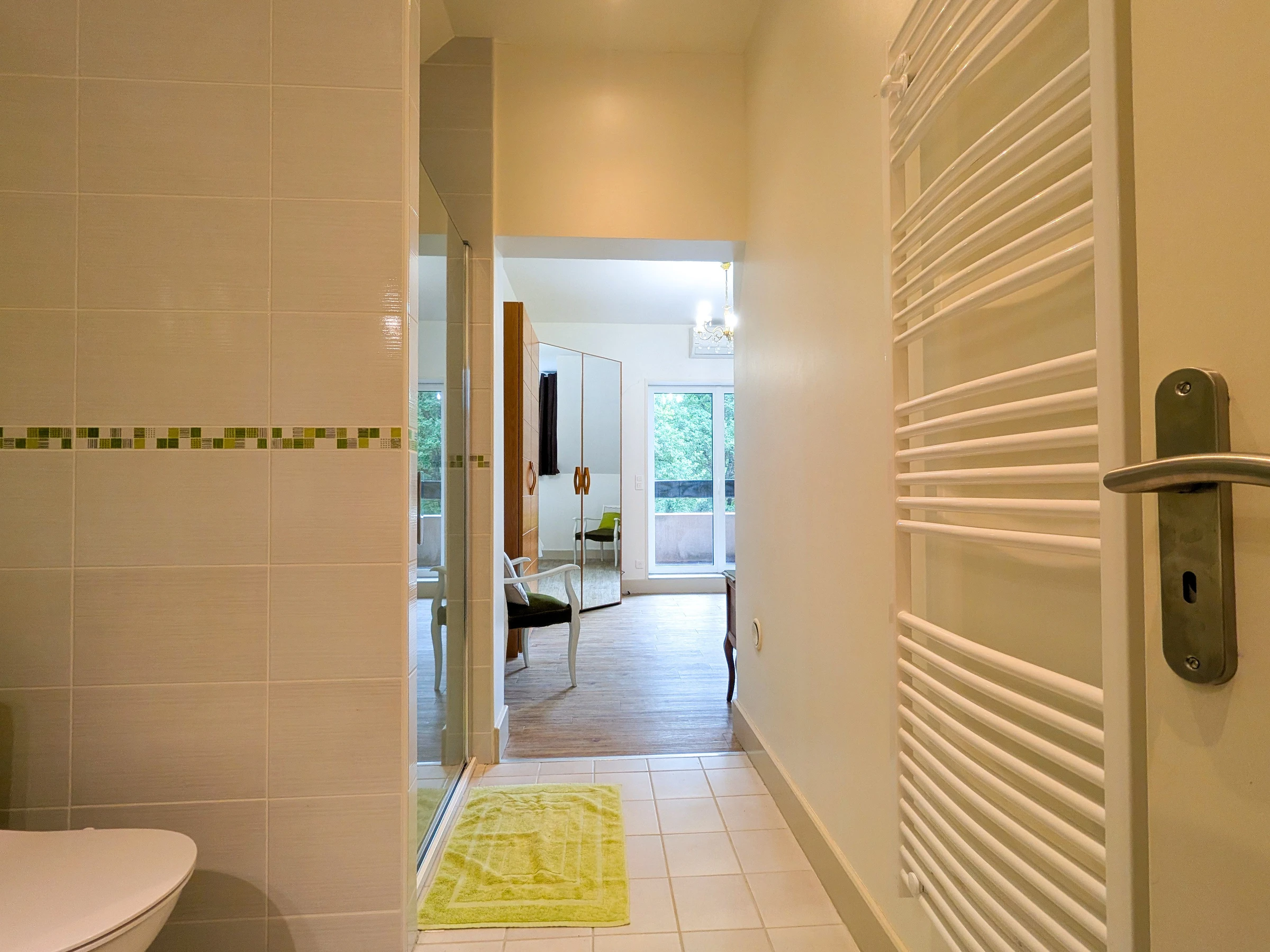 Außenbereich: Zwei private Terrassen, eine davon überdacht, sowie ein überdachter Balkon an einem der Schlafzimmer laden dazu ein, die üppige Umgebung in vollen Zügen zu genießen. Parkplätze stehen auf dem Grundstück zur Verfügung.