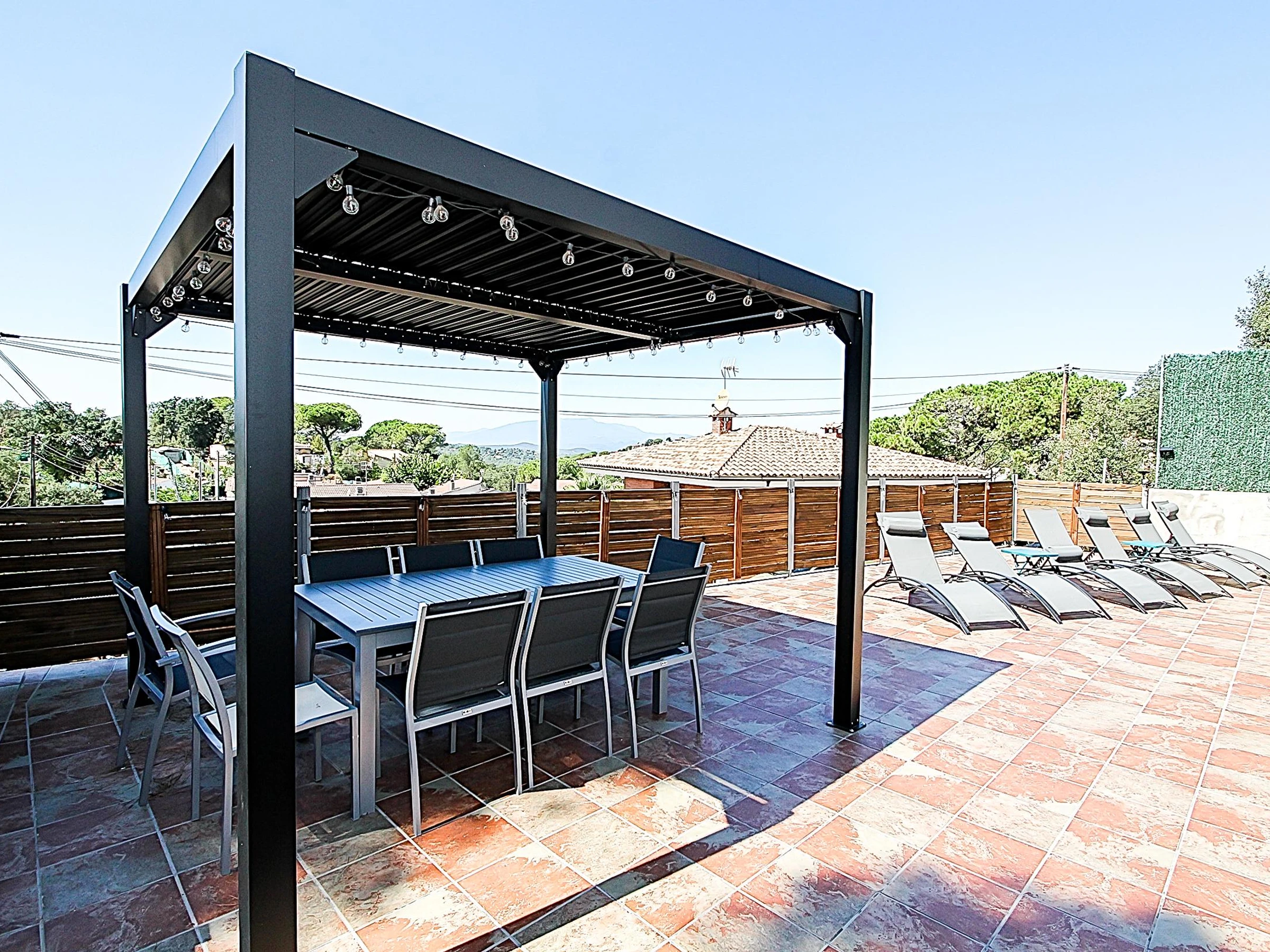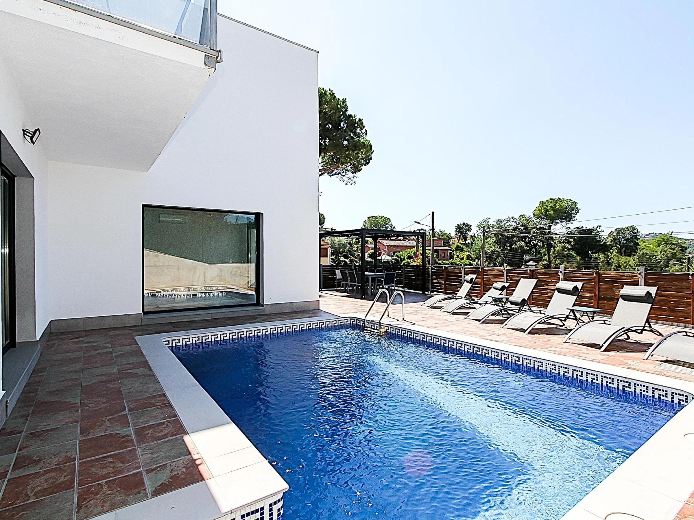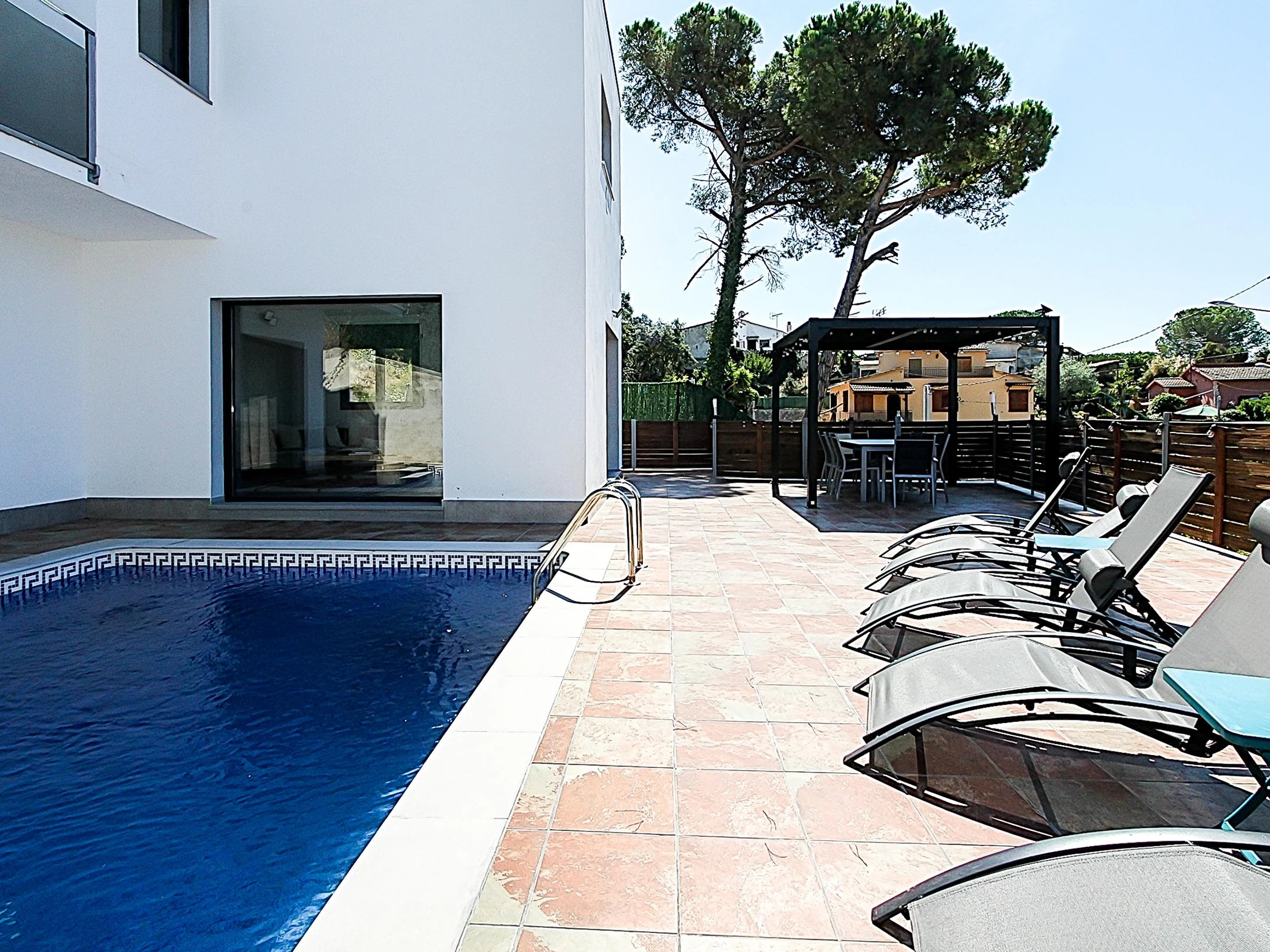 Villa Esperanza ist eine erstaunliche Villa nur 6,5 km vom Strand von Lloret de mar, mit privatem Pool, komplett renoviert, mit einer Kapazität für 10-12 Personen. Das Haus besteht aus einem Wohnzimmer mit Essbereich, offene Küche komplett ausgestattet mit allem, was Sie für Ihren Urlaub brauchen, 4 Schlafzimmer mit Doppelbetten, von denen 2 ein zusätzliches Einzelbett und 2 Einzelschlafsofas und 3 Bäder mit Dusche haben. Die Villa Esperanza verfügt über eine Klimaanlage in allen Zimmern. Ein großer Außenbereich, der durch den privaten Pool mit Sonnenliegen und einer Pergola mit Tisch und Stühlen für Ihr Frühstück oder Mahlzeiten mit Ihrer Familie oder Freunden gebildet wird, wird Sie die sonnigen Tage an der Costa Brava genießen lassen. Diese fantastische Immobilie befindet sich in der Urbanisation Aiguaviva Parc, in Vidreres. Diese Urbanisation befindet sich zwischen Vidreres und Lloret de Mar. Die Lage ist unschlagbar, die Immobilie ist nur 10 Minuten von der Costa Brava, 20 Minuten vom Flughafen Girona und 15 Minuten vom Bahnhof von Caldes de Malavella entfernt. Die Villa Esperanza wird ausschließlich an Familien und Paare über 25 Jahre vermietet.