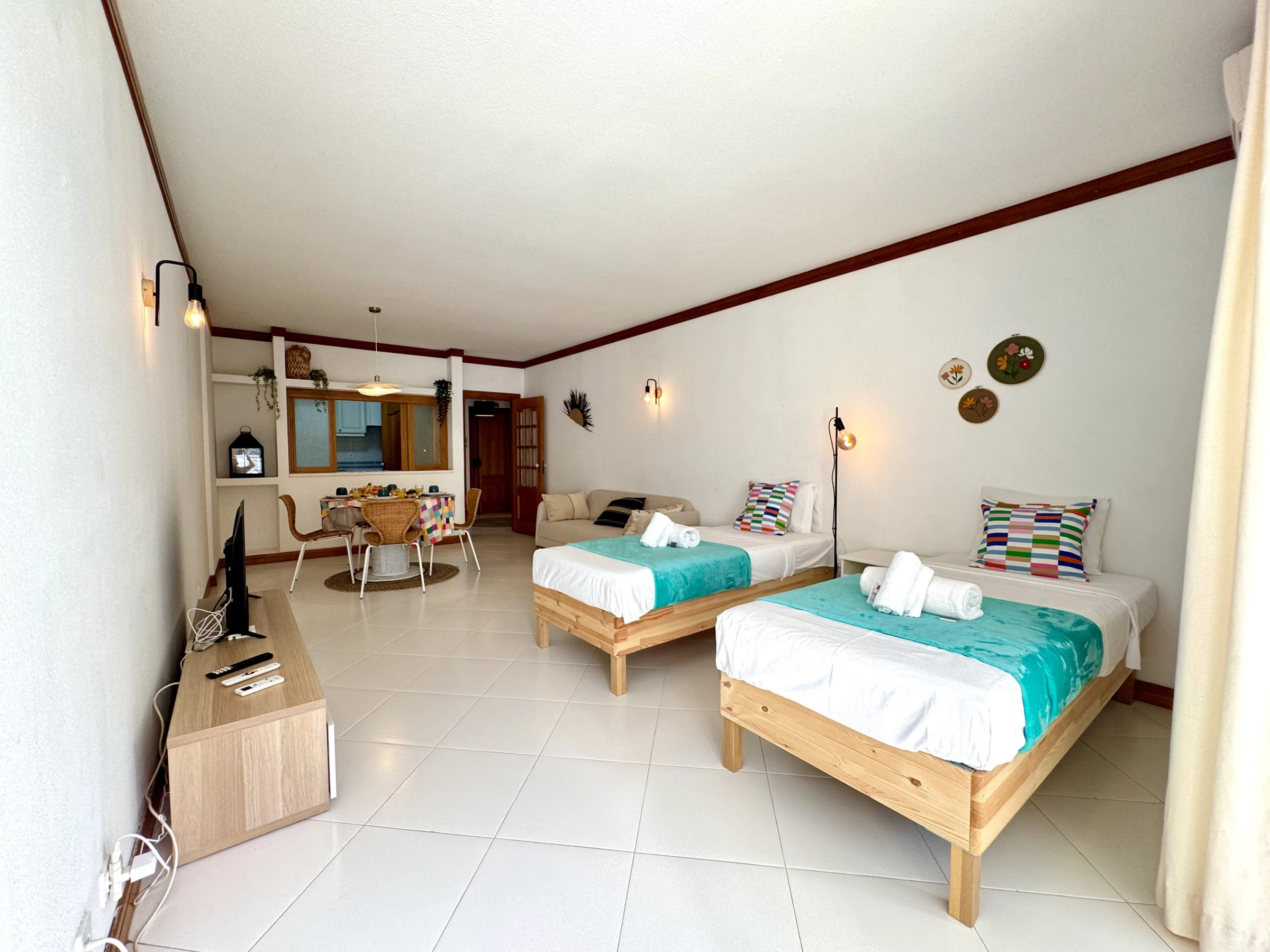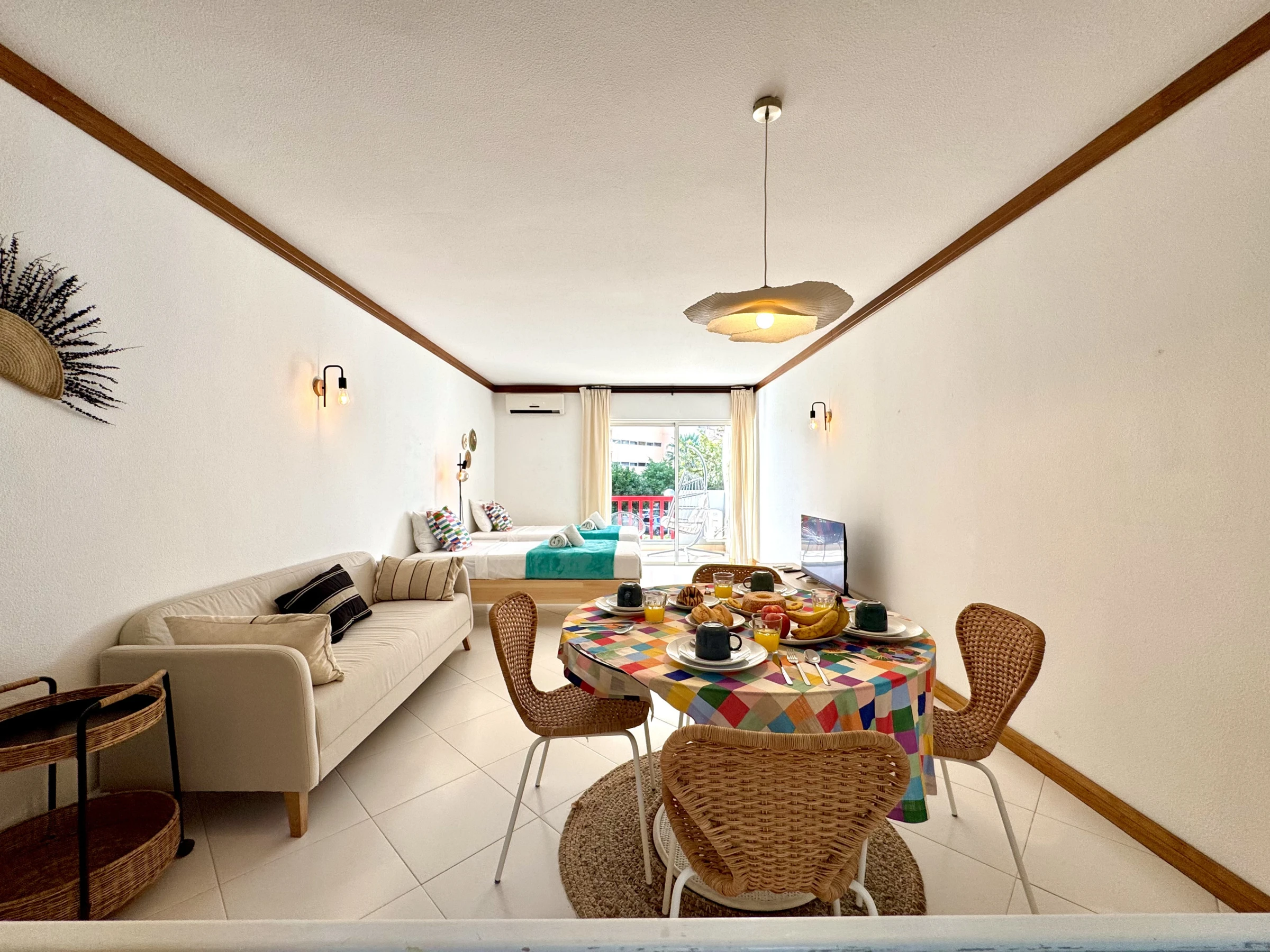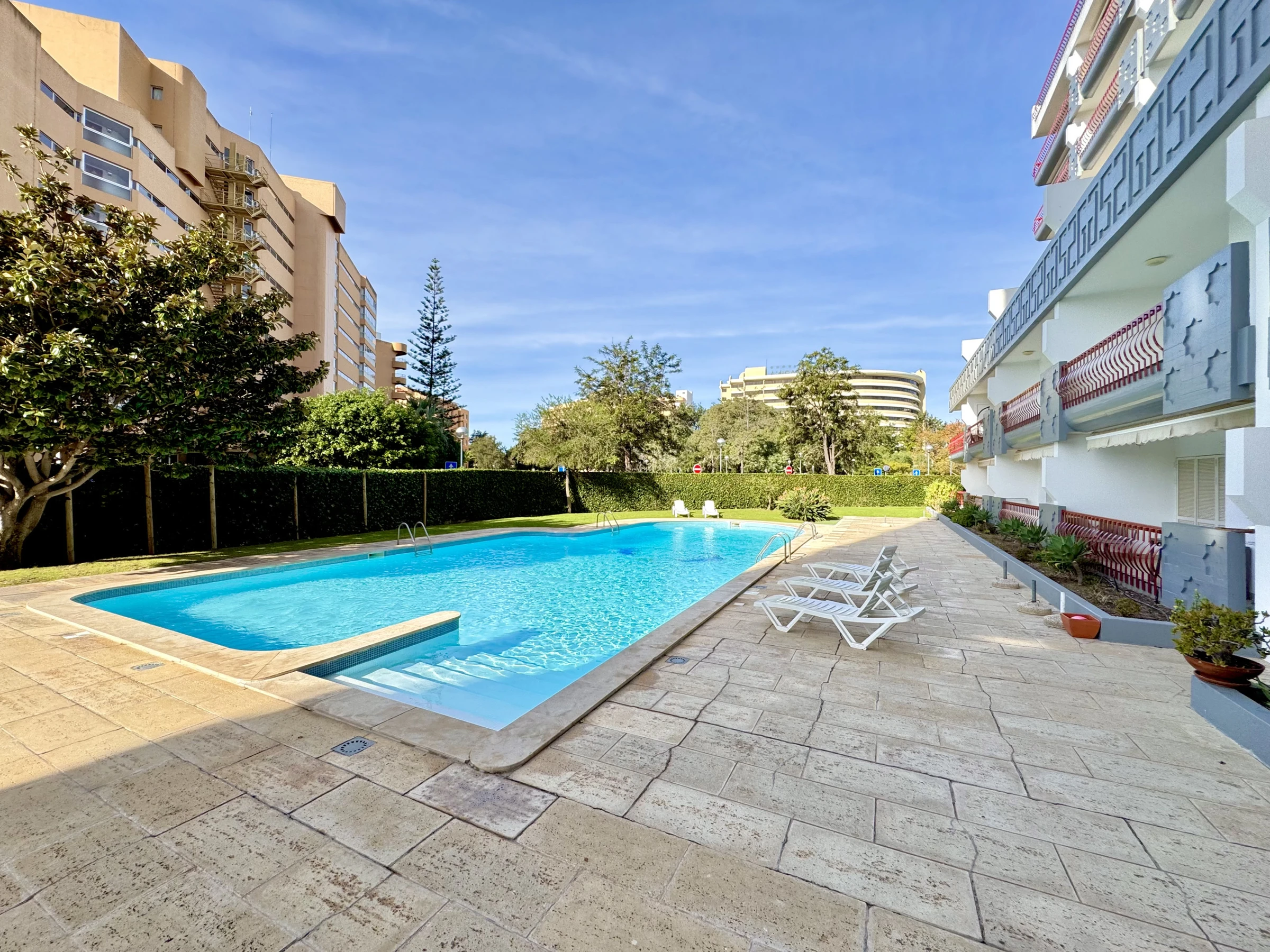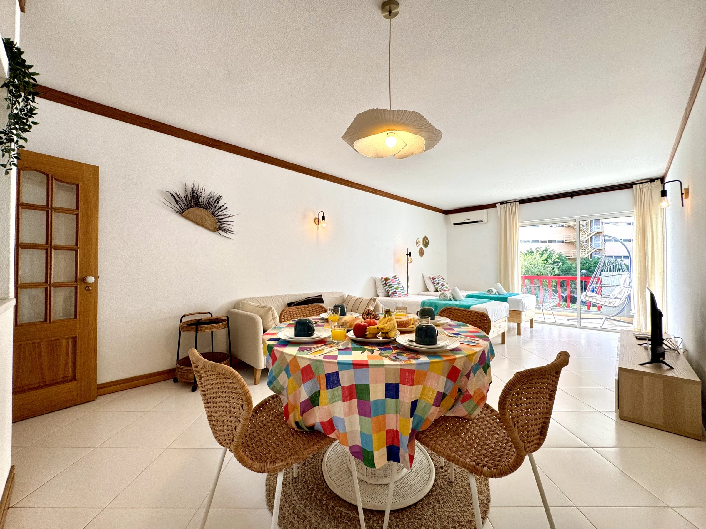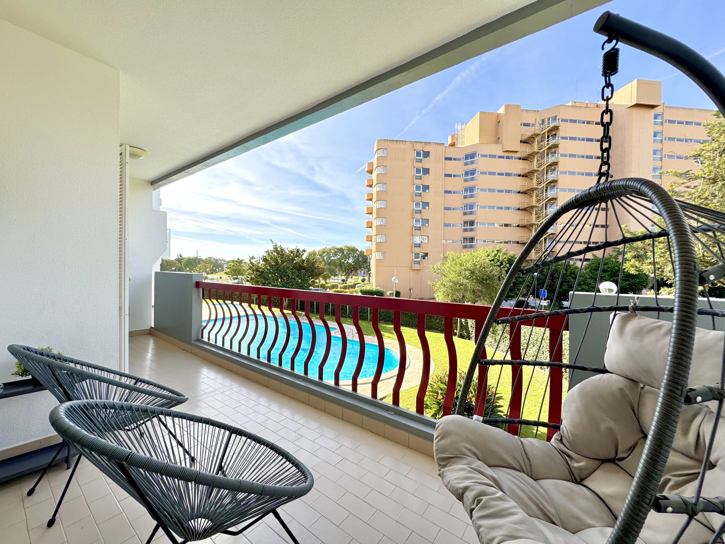 Die Wohnung bietet ein helles Wohnzimmer mit Zugang zu einem perfekten Balkon zum Entspannen am Ende des Tages, eine voll ausgestattete Küche und ein komfortables Schlafzimmer. Die Gäste haben auch Zugang zu einem ruhigen Swimmingpool, ideal für Momente der Erholung nach einem Tag am Strand.