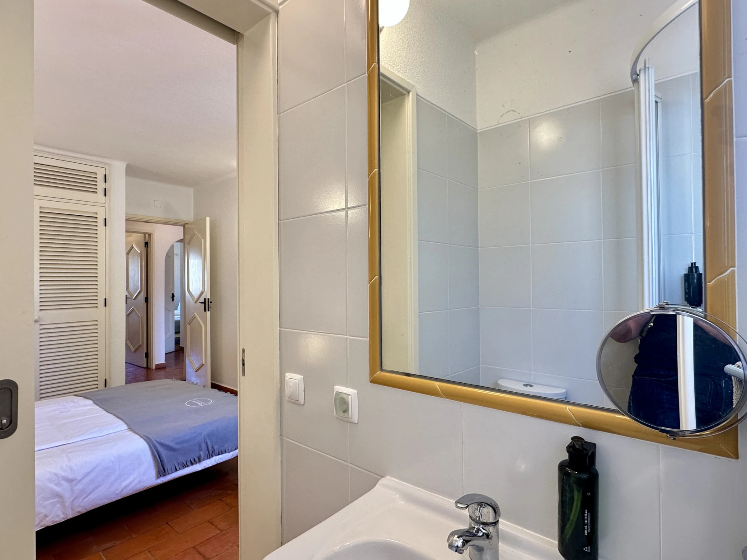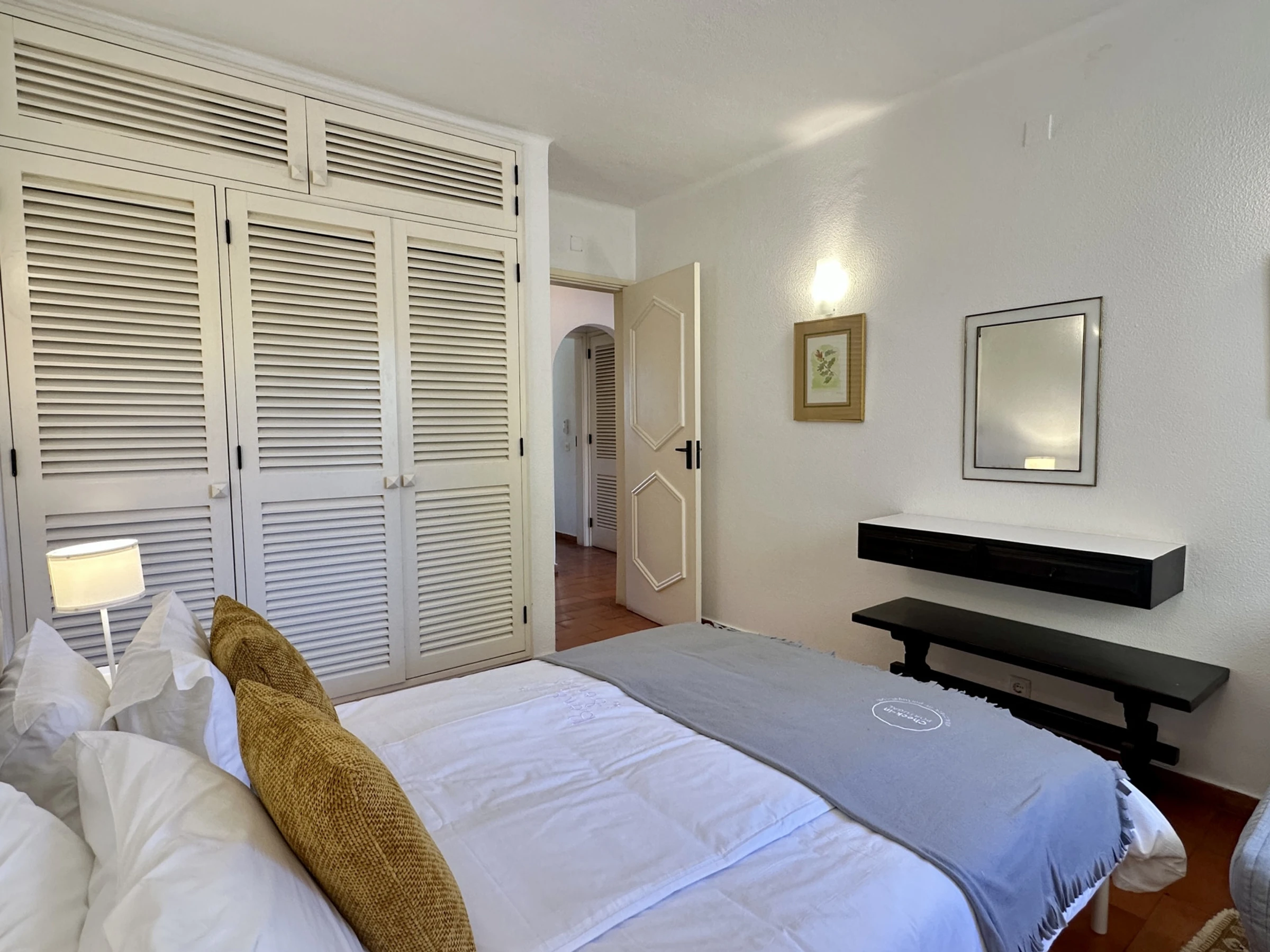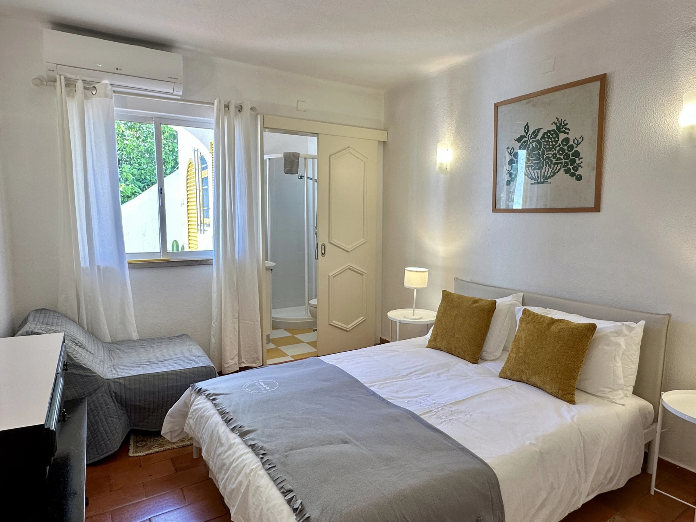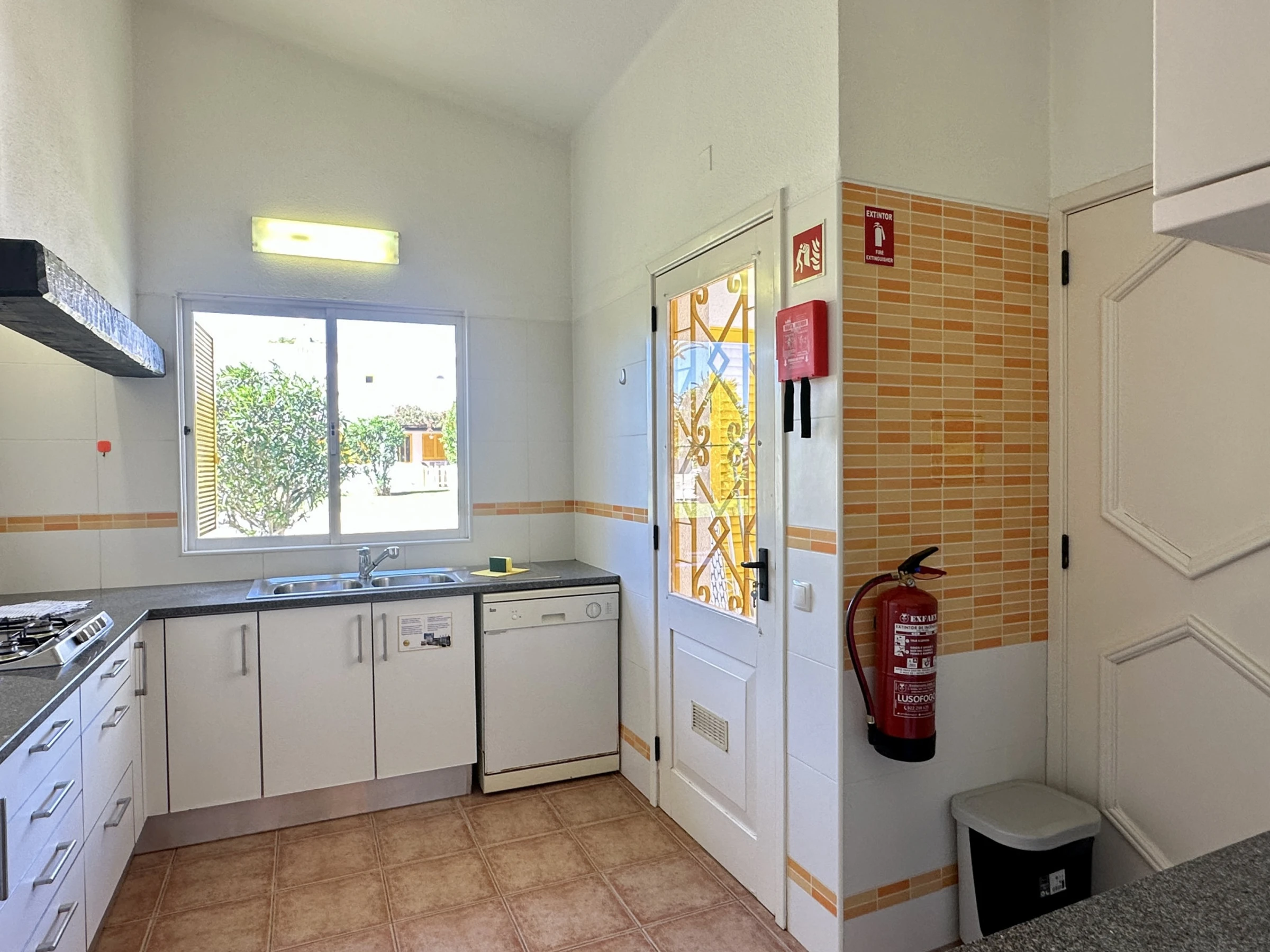 Der Außenbereich lädt dazu ein, das Klima der Algarve zu genießen, mit angenehmen Bereichen zum Essen und Entspannen, ergänzt durch den Zugang zum gemeinsamen Swimmingpool der Anlage.