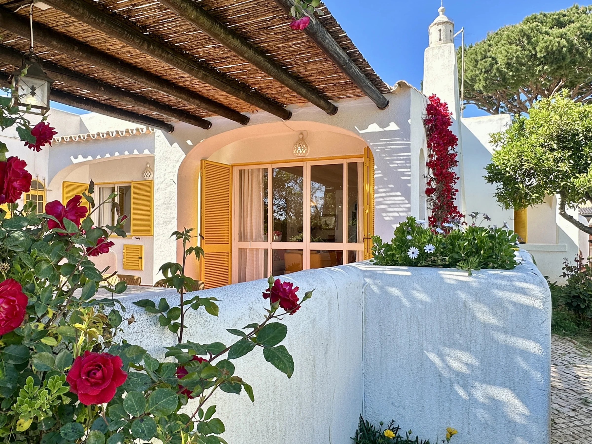 Gelegen in der Golfallee, einem der ältesten und charismatischsten Projekte von Vilamoura, fügt sich dieses Haus in eine typische Algarve-Umgebung ein, mit gelben Fensterläden, abgerundeten Mauern und gepflegten Gärten, die eine ruhige und harmonische Atmosphäre schaffen.