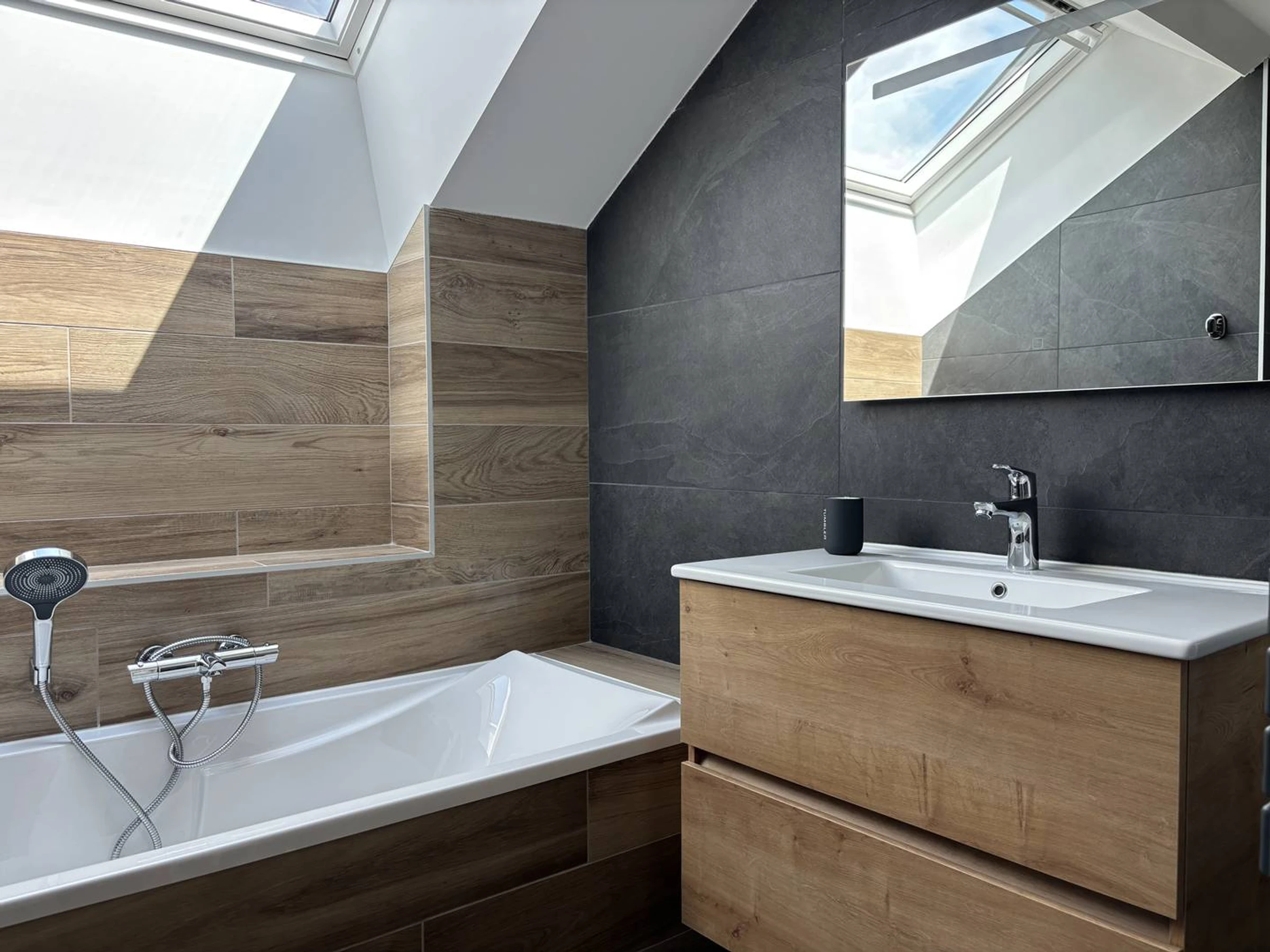 – Zweites Badezimmer mit Dusche und Handtuchwärmer.