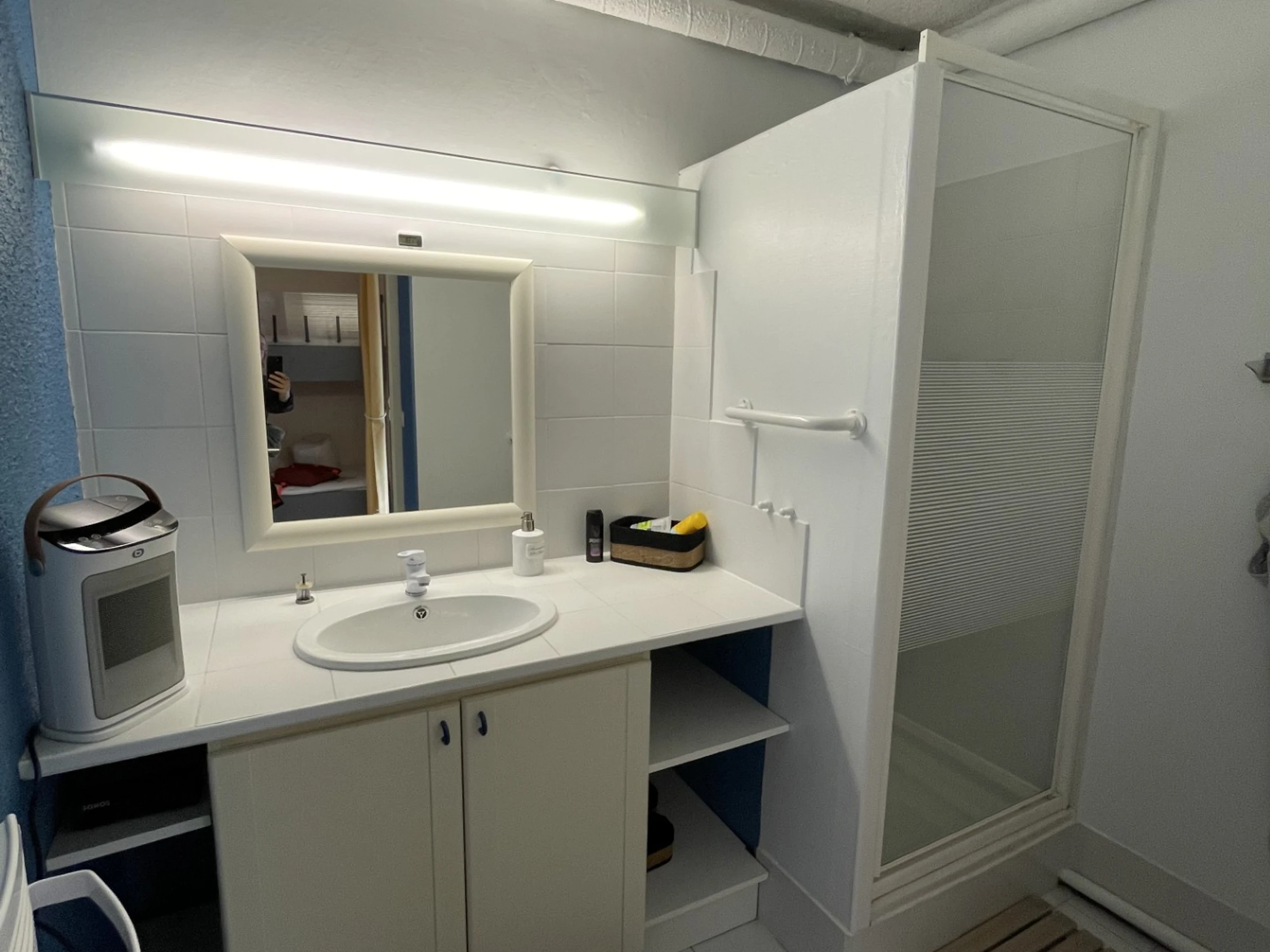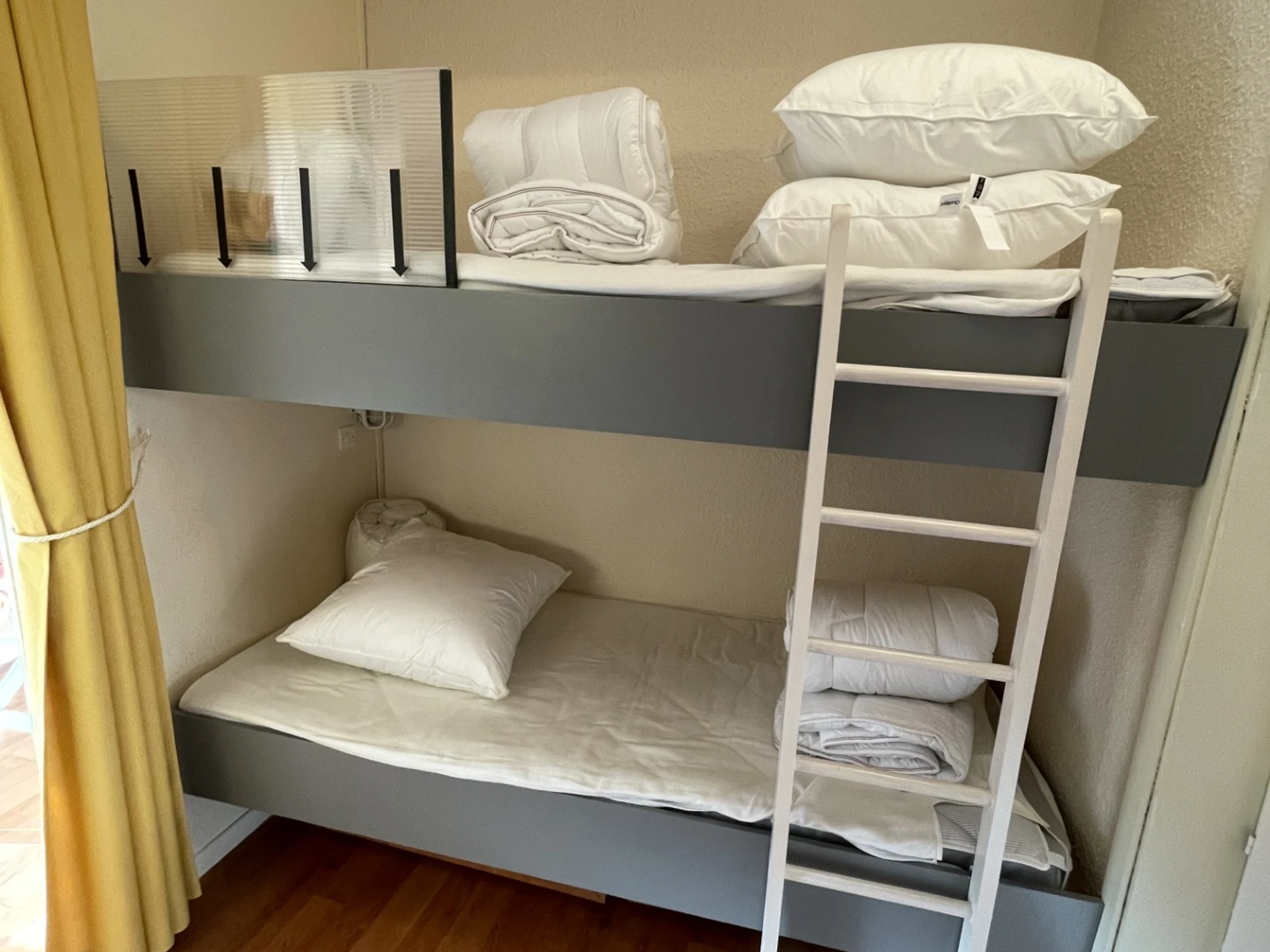 Es besteht aus einem Eingangsbereich, einer Schlafnische mit Etagenbetten, einem separaten WC, einem Duschbad,