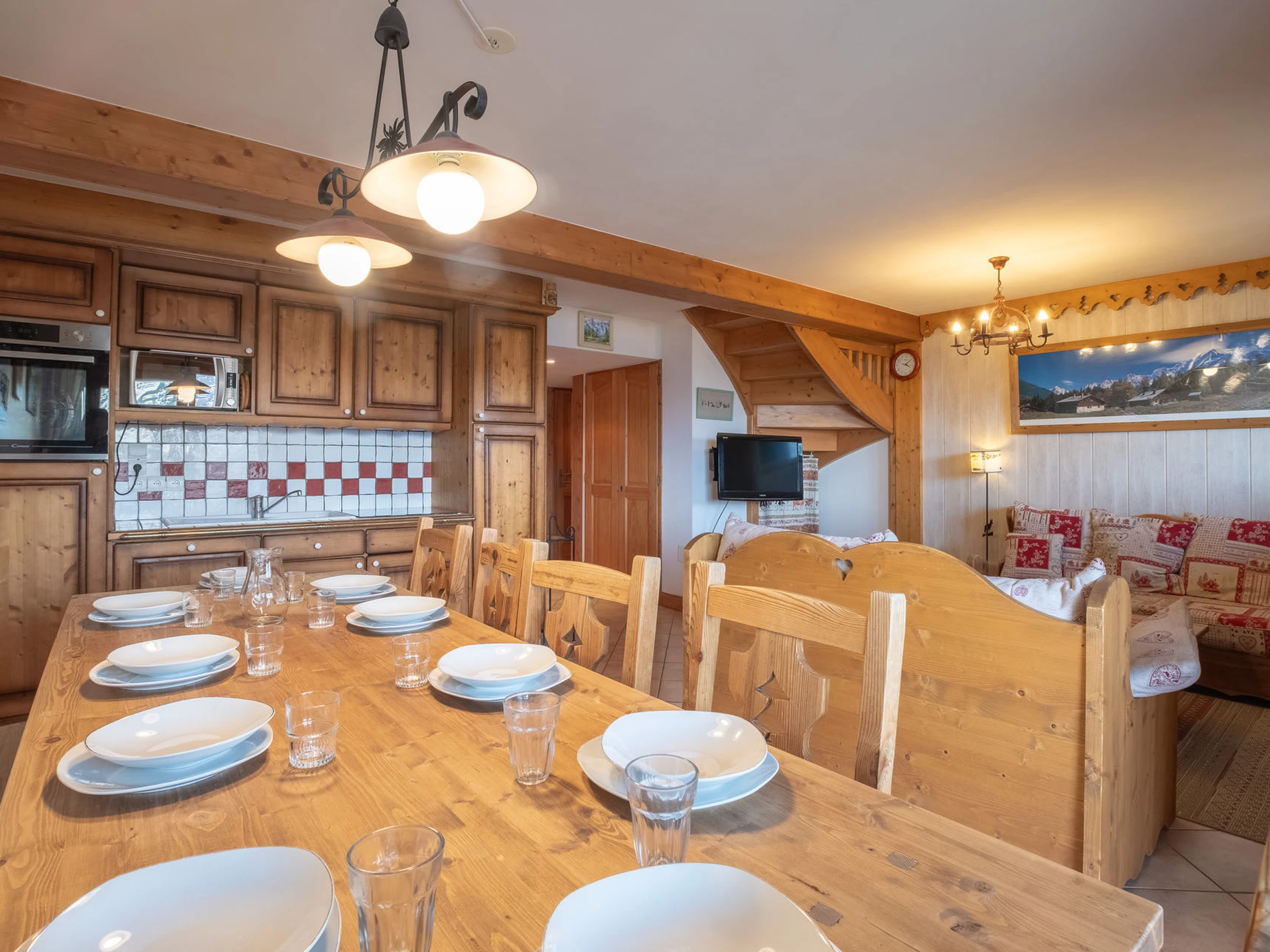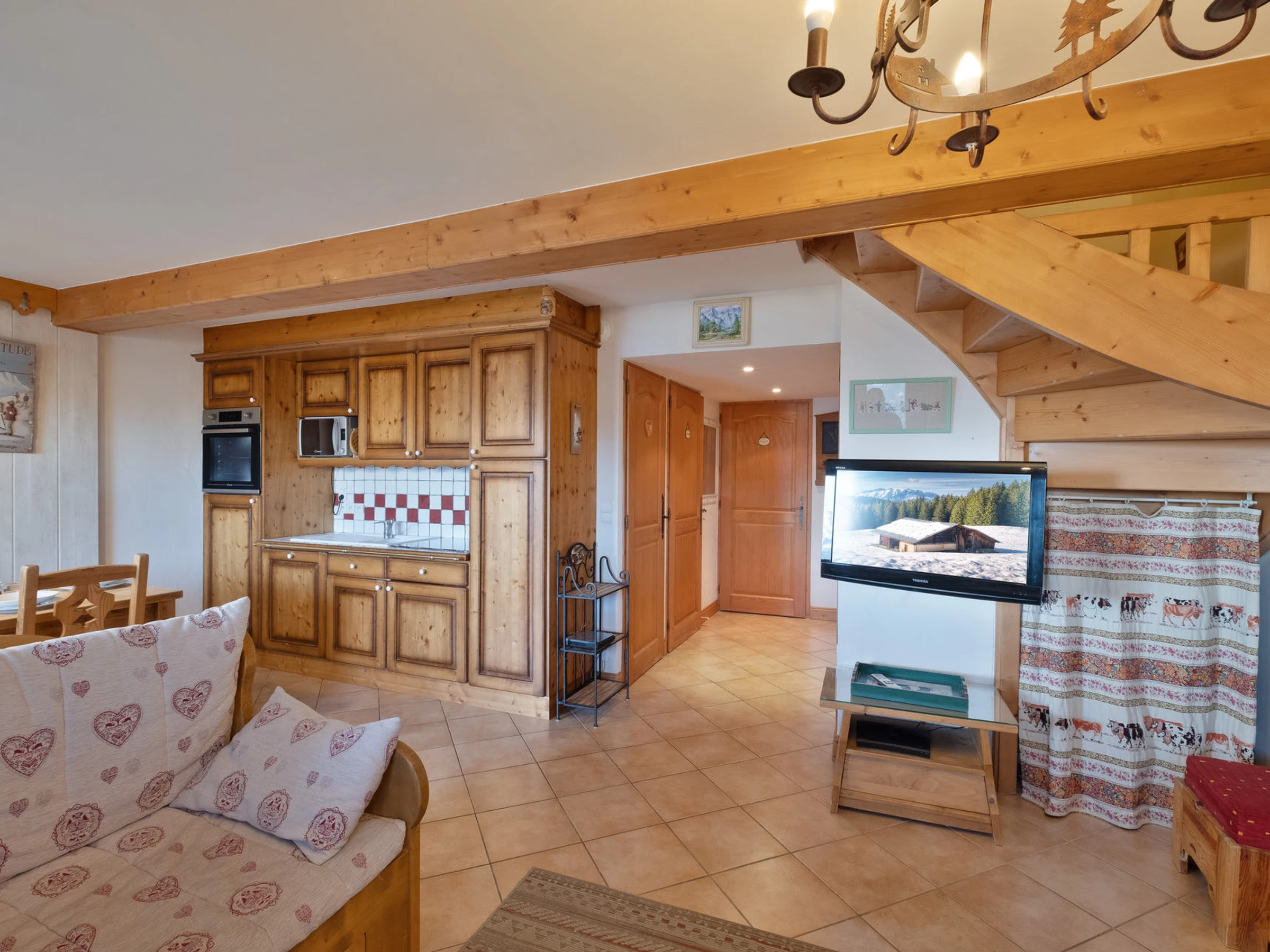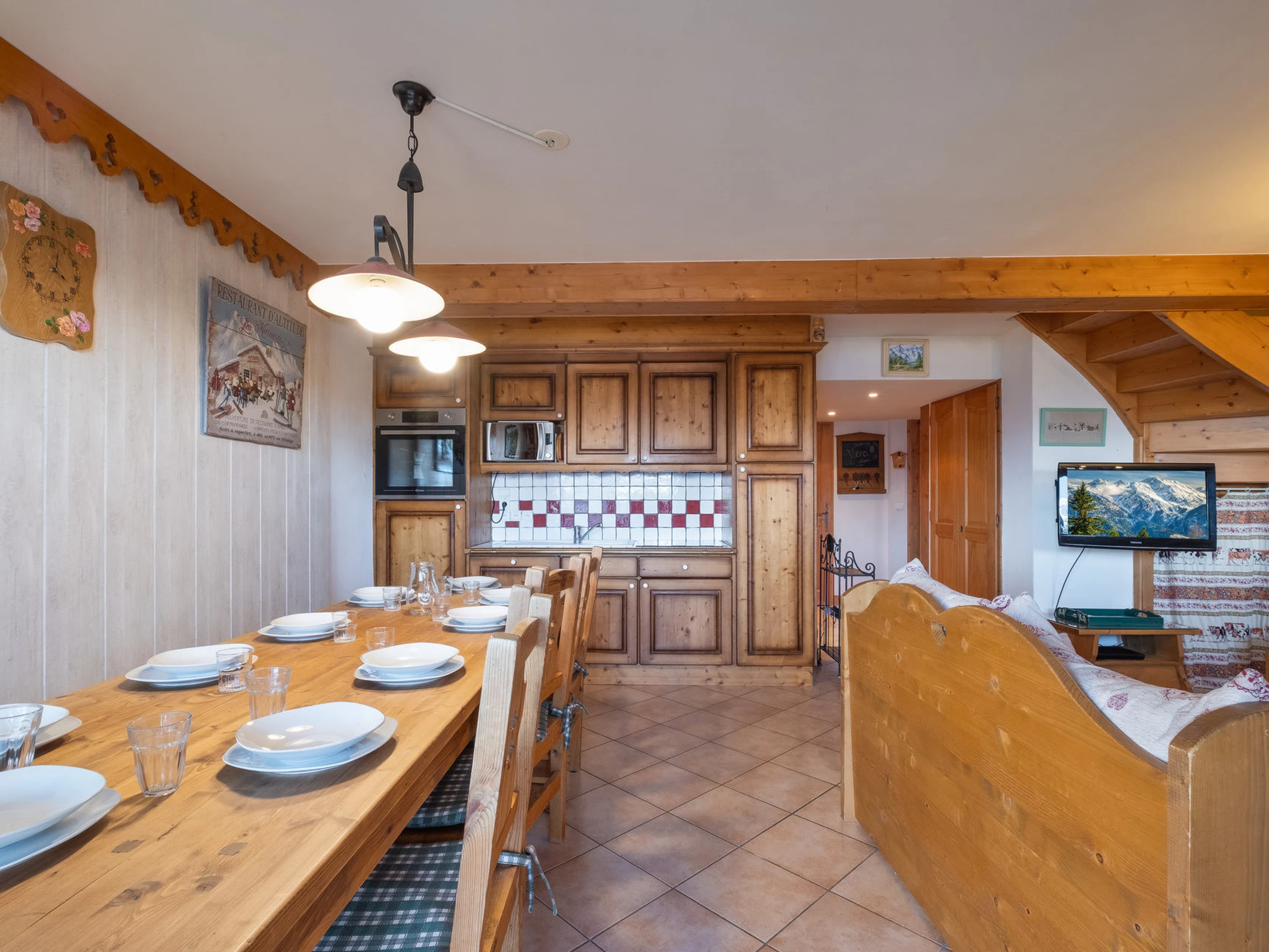 Diese Maisonette-Wohnung im obersten Stockwerk bietet ein großes, helles Wohnzimmer mit offener Küche und Panoramablick auf das Beaufortain-Tal und den Mont Blanc. Der Wohnbereich vereint Komfort und Geselligkeit und ist ideal für gesellige Stunden mit Familie und Freunden. Genießen Sie den direkten Zugang zur Skipiste sowie die Nutzung des hauseigenen Swimmingpools.