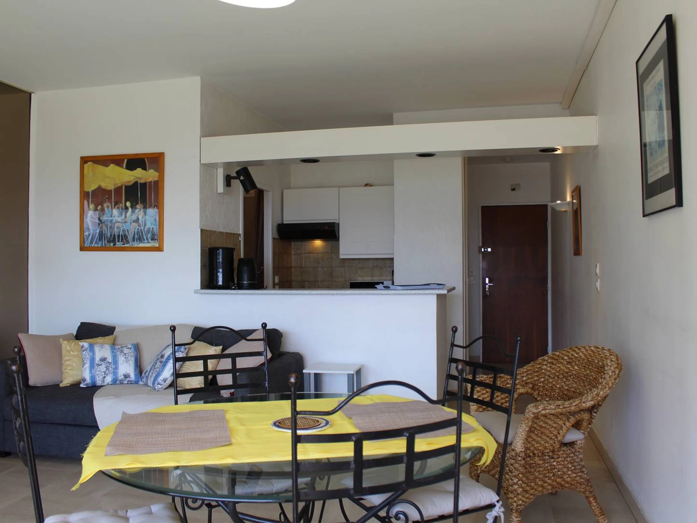 Apartment in der Residenz Le Baronnet direkt am Meer. Nur 100 Meter vom Strand und 150 Meter von Restaurants entfernt bietet dieses Apartment im vierten Stock eine wunderschöne Aussicht. Es besteht aus einem Eingangsbereich, der zu einem Schlafzimmer mit zwei 80 cm breiten Einzelbetten führt, einer voll ausgestatteten amerikanischen Küche, einem hellen Wohnzimmer mit einem 140 cm breiten Schlafsofa, das auf eine schöne Terrasse mit Blick auf den Garten und das Meer führt, sowie einem Badezimmer mit Toilette. Das Wohnzimmer ist für optimalen Komfort klimatisiert. Bettwäsche wird nicht gestellt, die Endreinigung ist jedoch inbegriffen.