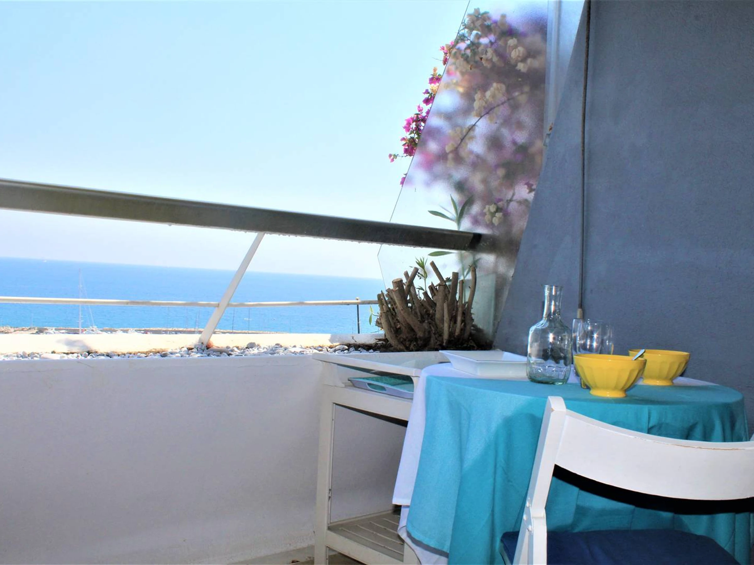 Der Vorteil dieser Unterkunft: Angenehmes Apartment, in dem Sie mit einem Buch auf der Terrasse mit einem außergewöhnlichen Blick auf das große Blau spazieren können.