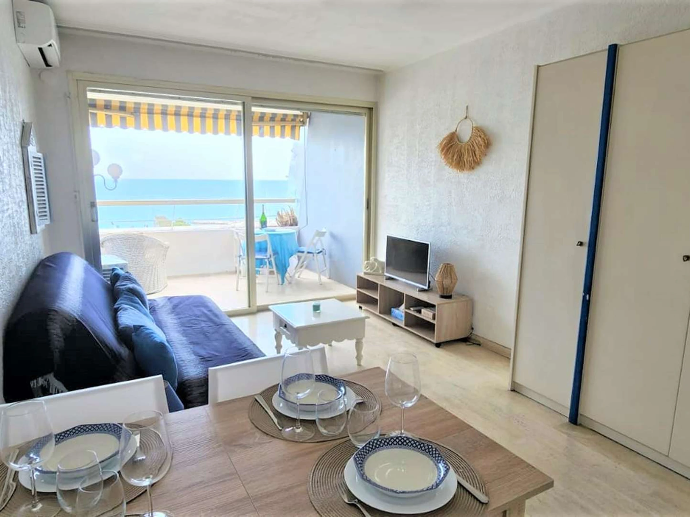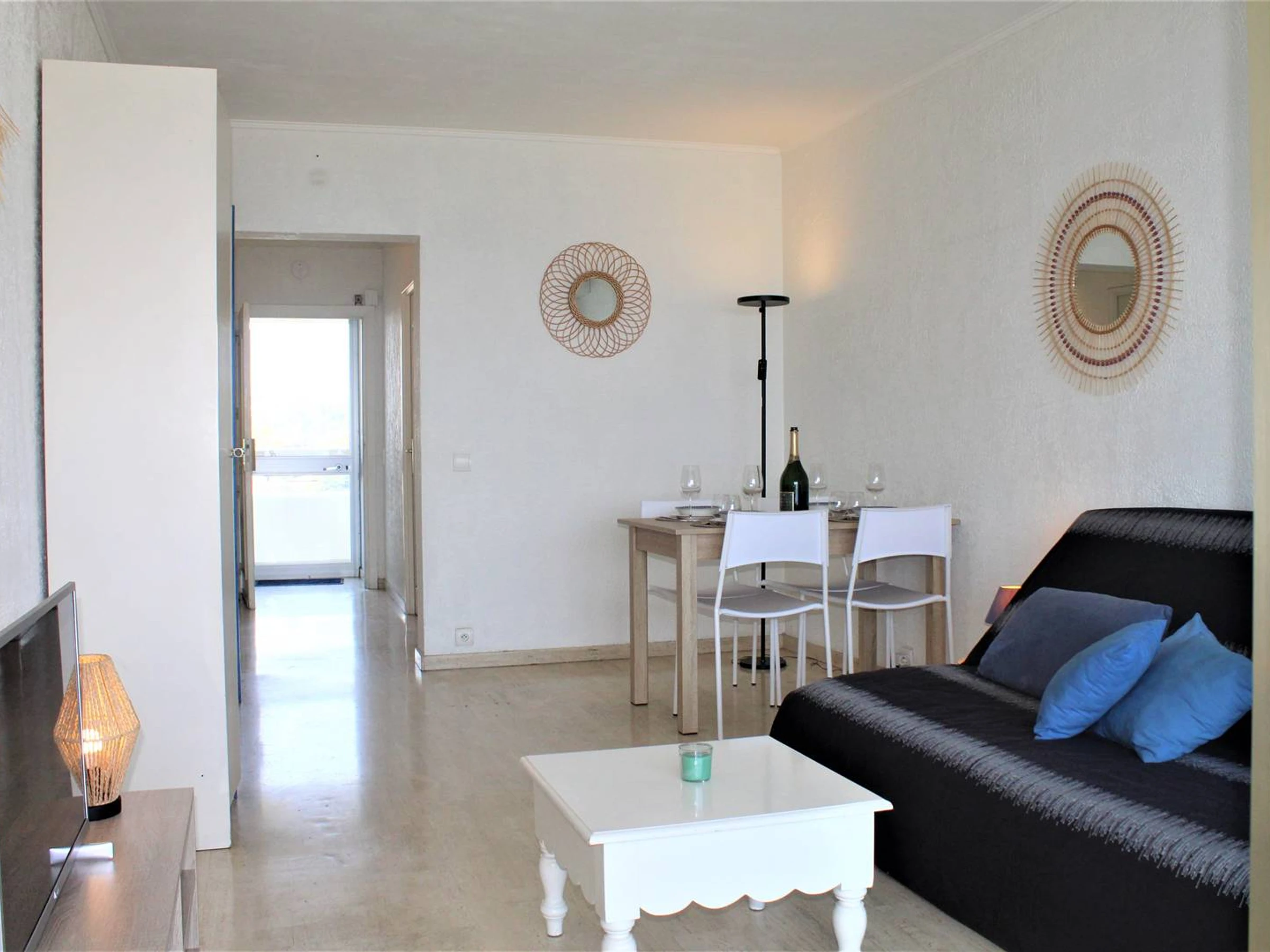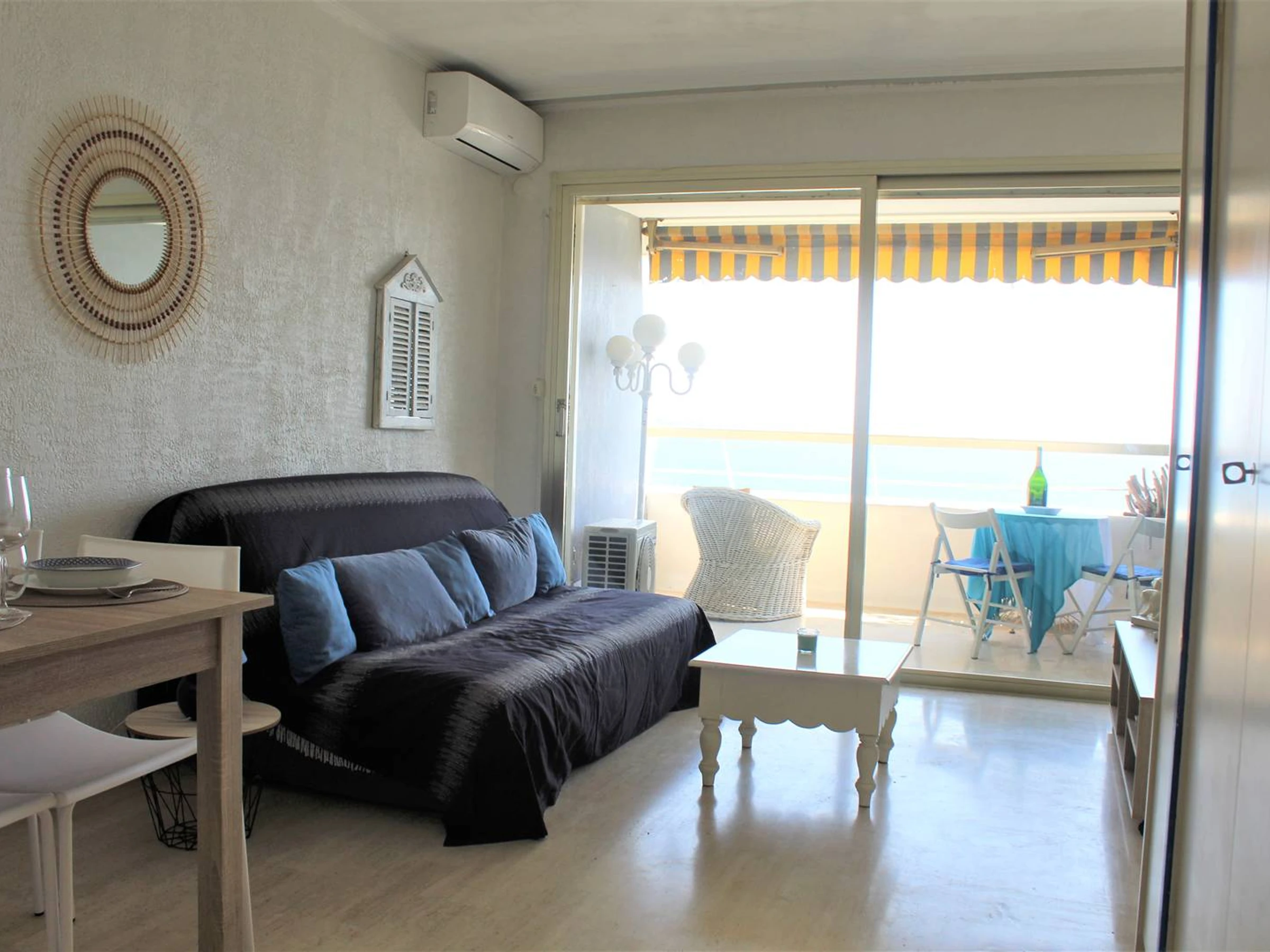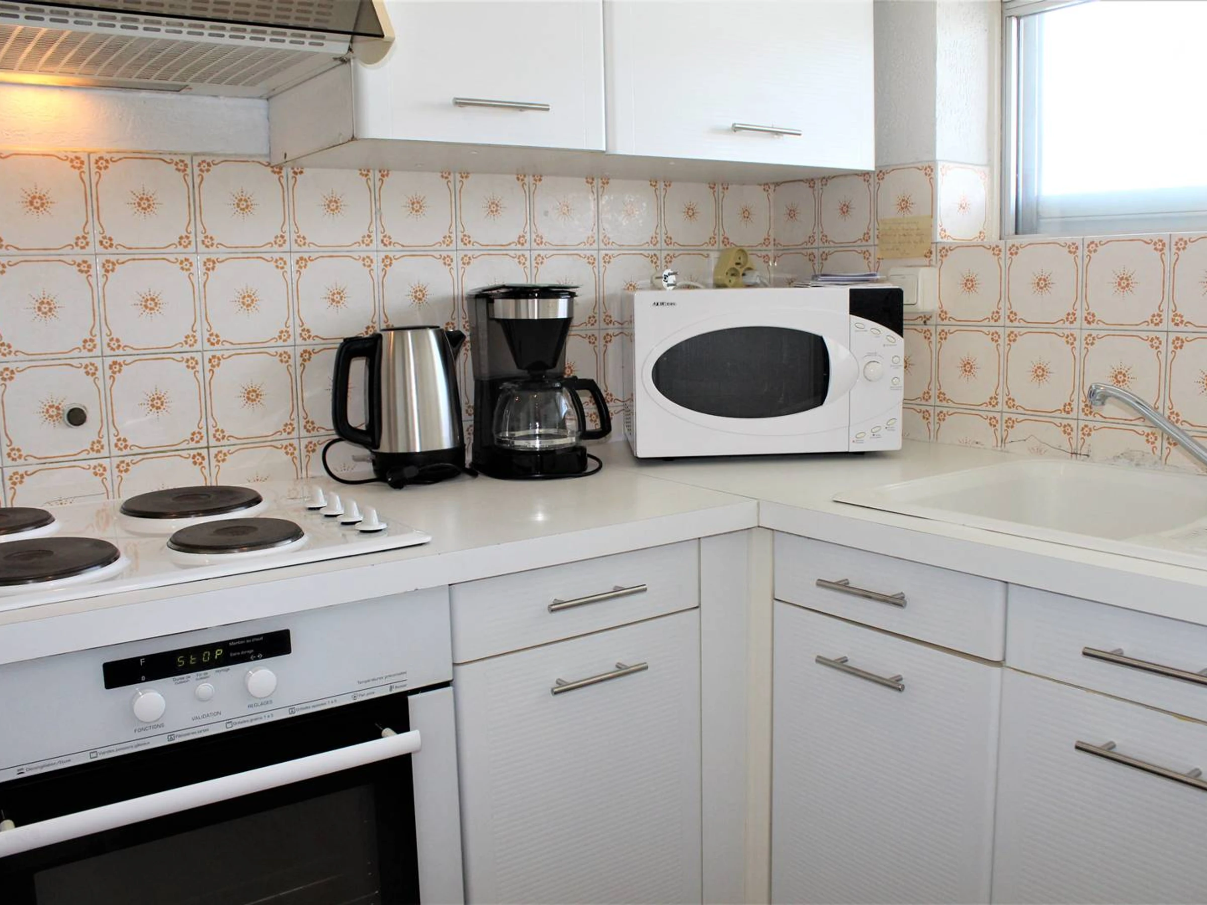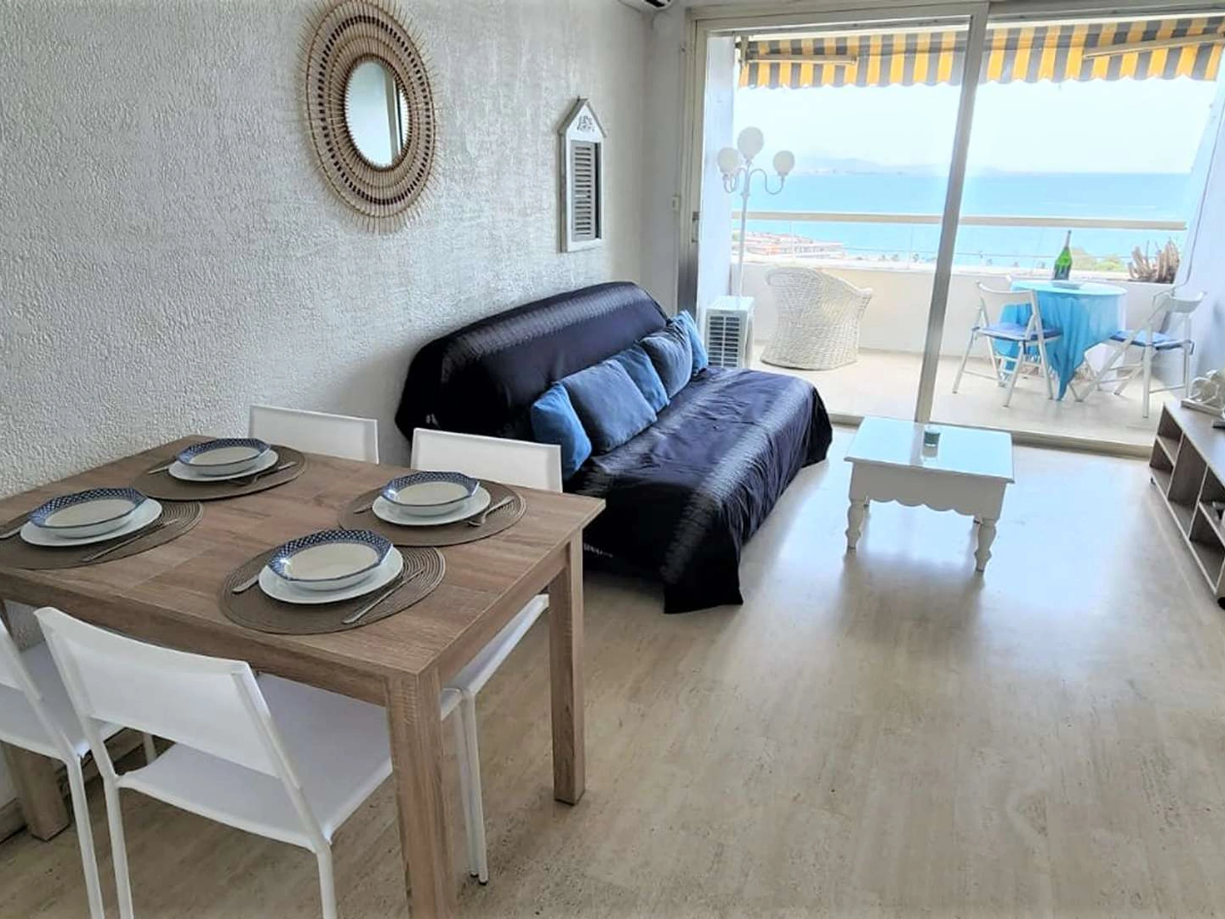 Dieses klimatisierte Apartment im 9. Stock besteht aus einer unabhängigen Einbauküche (Backofen, Mikrowelle, Kühlschrank), einem großen Badezimmer mit Badewanne und einer separaten Toilette. Ein angenehmes Wohnzimmer mit Fernseher, einem 140 cm breiten Schlafsofa, einem 140 cm breiten ausziehbaren Bett und einem Essbereich, der sich auf eine Terrasse mit außergewöhnlichem Blick auf das Mittelmeer öffnet. Ein Ankleidezimmer vervollständigt diese Eigenschaft. Endreinigung inbegriffen. Haushaltswäsche wird nicht gestellt.