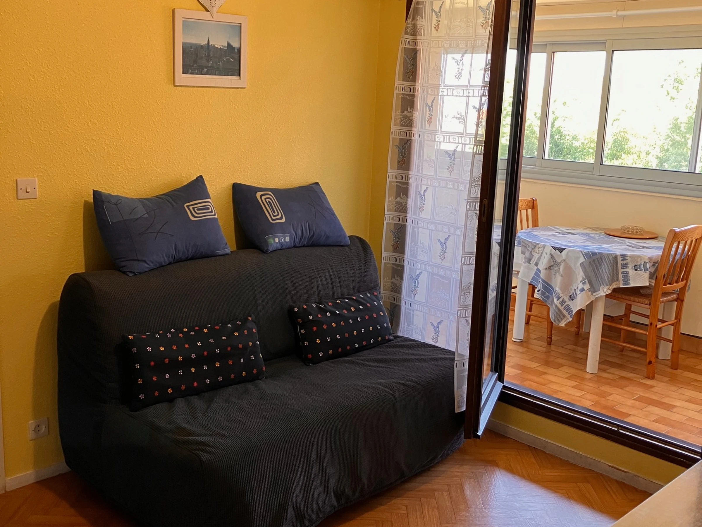 In einer Residenz, 100 Meter vom Strand entfernt, bietet diese schöne 2-Zimmer-Wohnung mit Loggia und Meerblick: