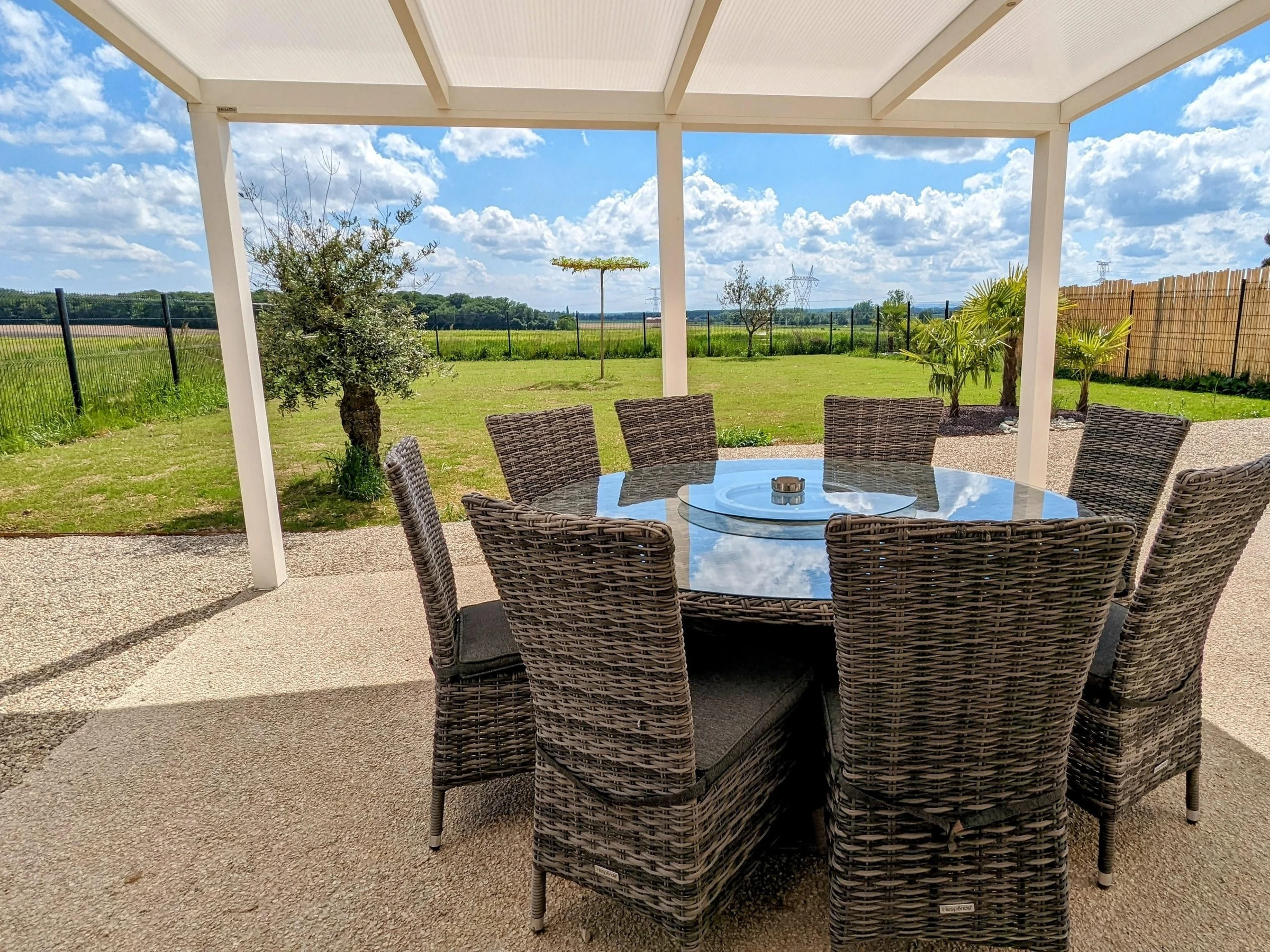 3 Schlafzimmer mit jeweils einem 140 cm breiten Bett und begehbarem Kleiderschrank. 1 Badezimmer mit Dusche und Badewanne. 1 separates WC. Klimaanlage (umschaltbar). Schöne Terrasse mit Pergola mit Blick auf einen vollständig umzäunten Garten ohne Aussicht. Herrlicher, unverbauter Blick in die Landschaft. Gartenmöbel und Grill. Privater, abgeschlossener Parkplatz (elektrisches Tor).