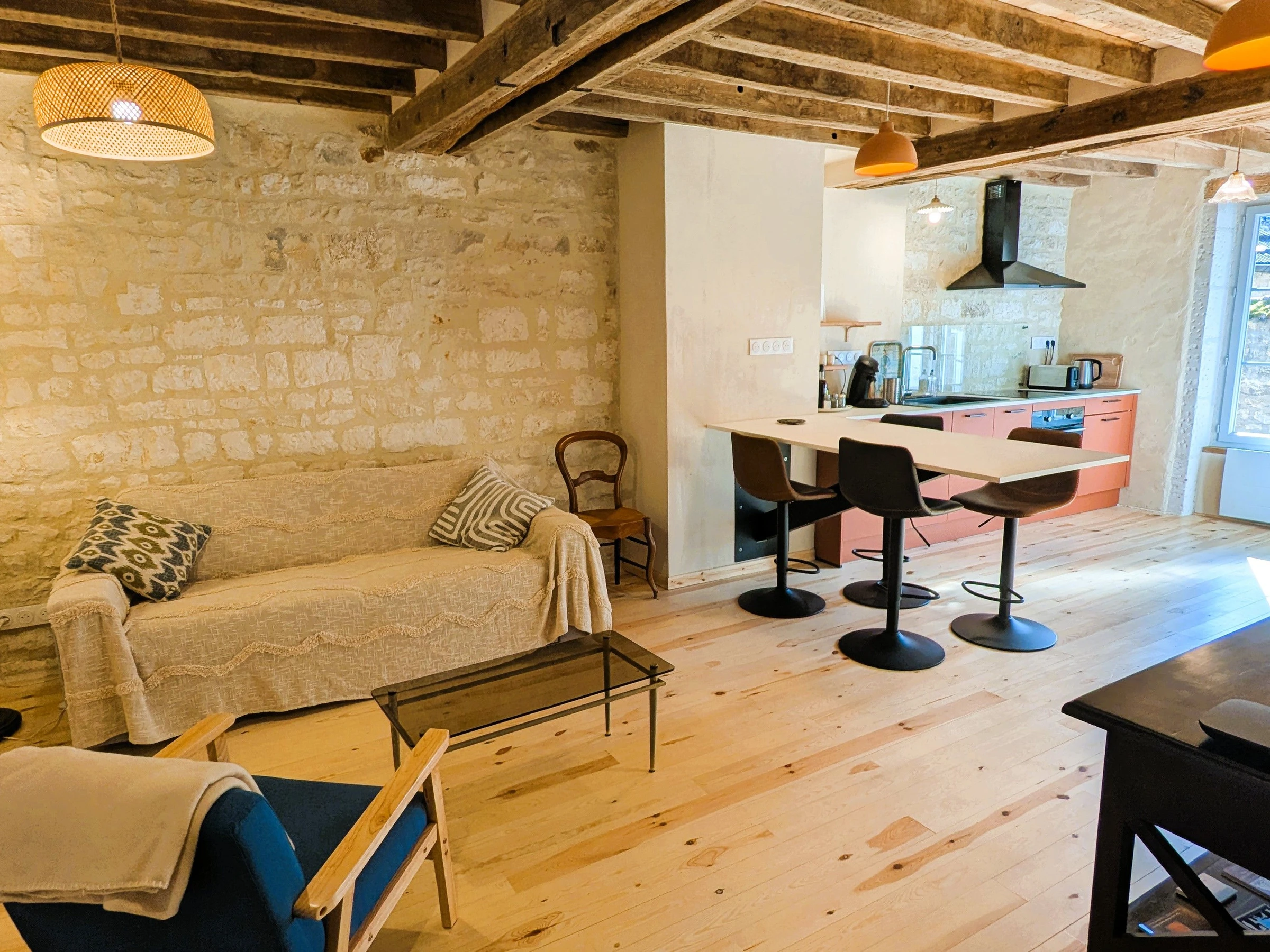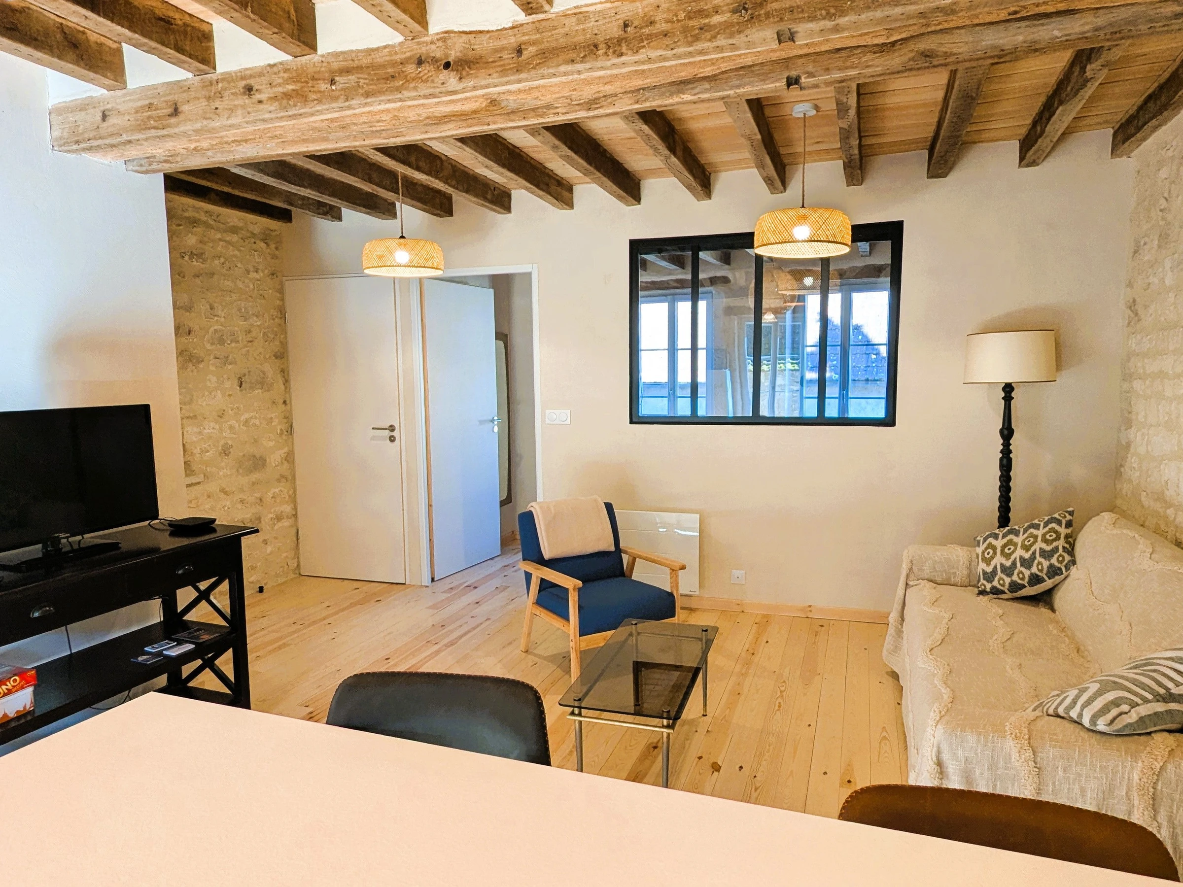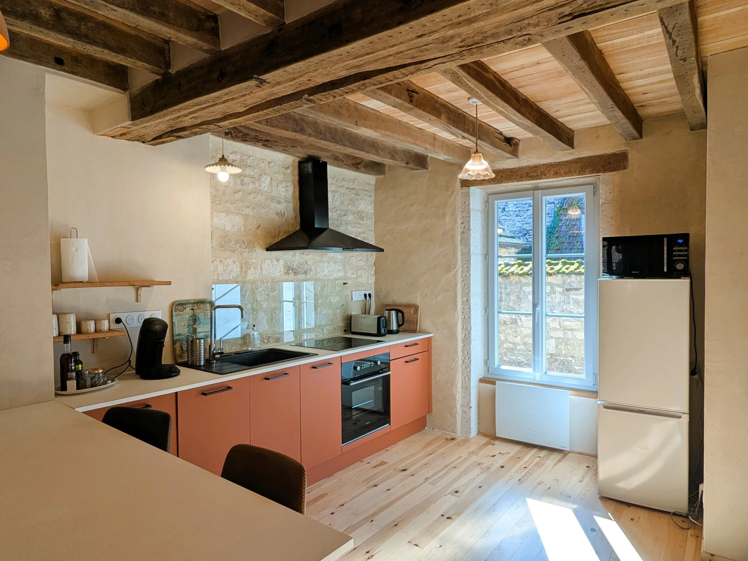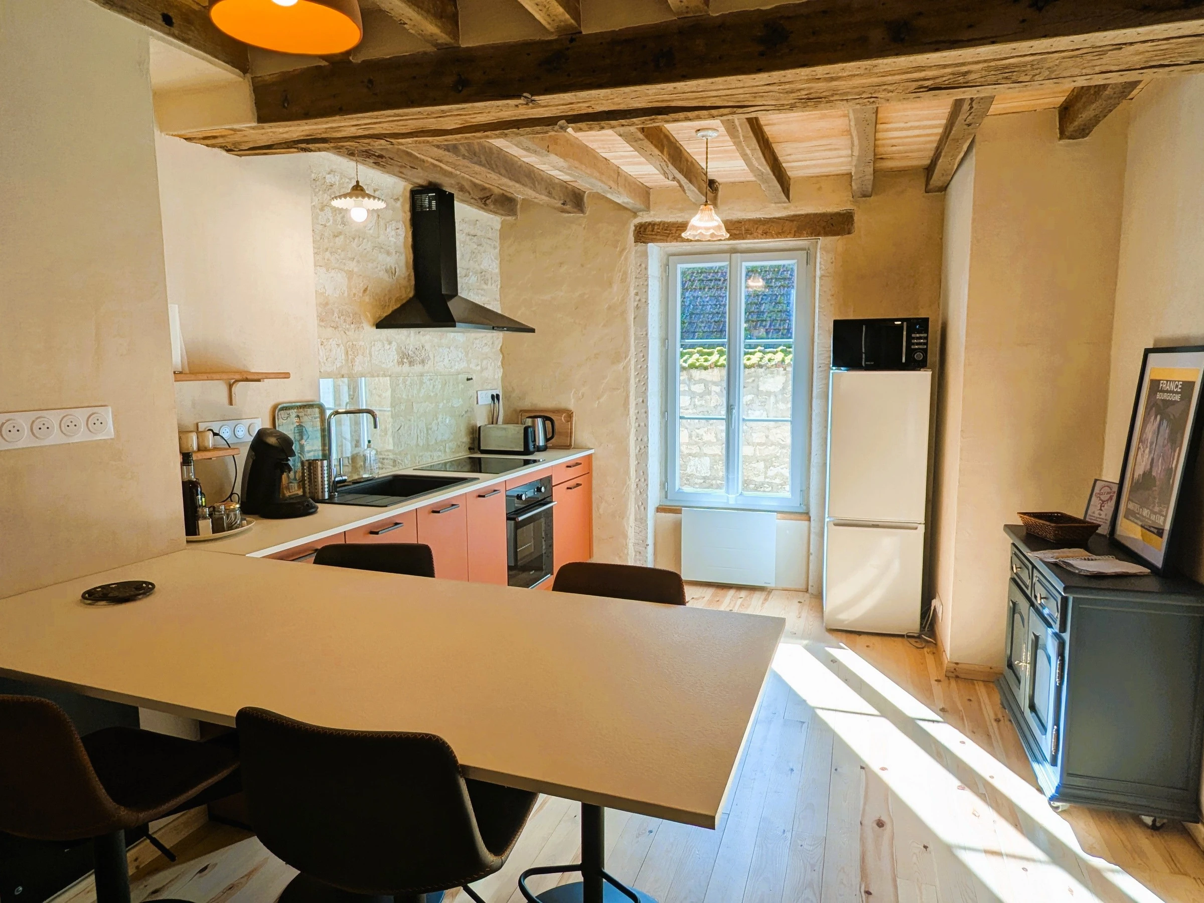Im Inneren werden Sie vom Charme des Hauses verzaubert sein: eine typisch burgundische Eichendecke mit Pappelholzplanken, Wände aus Kalkmörtel, natürliche Oberflächen und Dielenböden aus Kiefernholz schaffen eine einzigartige Atmosphäre, in der Authentizität und Wohlbefinden Hand in Hand gehen.