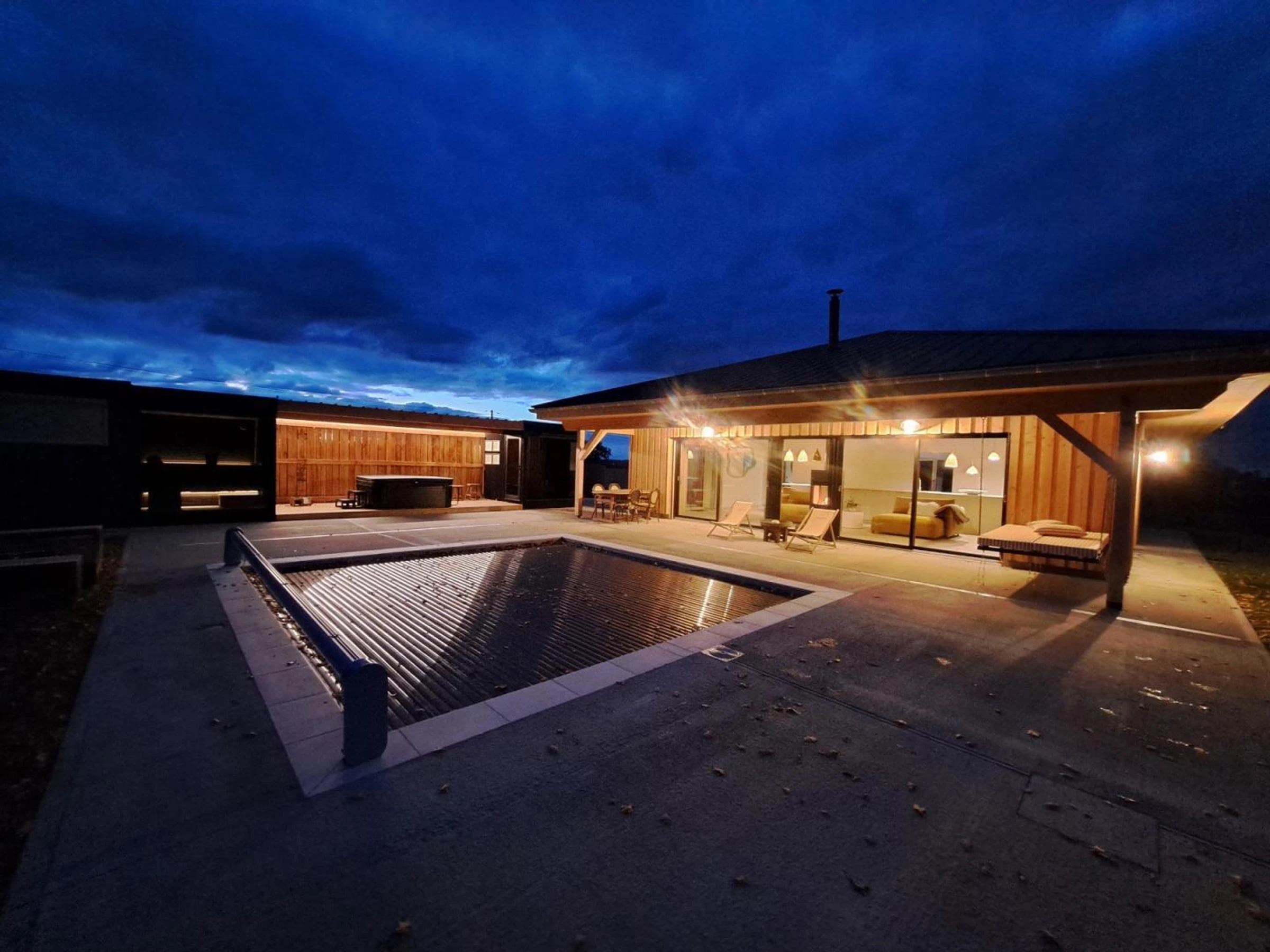 Einstöckiges Haus, Schlafzimmer und WC im Erdgeschoss, Fernseher, Internetzugang, Stereoanlage, Waschmaschine, Geschirrspüler, Mikrowelle, privater Swimmingpool, Whirlpool/Spa, Sauna, Holzofen, Grill/Grillplatte, Babyausstattung, kostenlose Bettwäsche, WLAN, Terrasse, Garten, separater Eingang, Haus, private Terrasse, Bouleplatz, freistehendes Haus, Bettwäsche wird gestellt, Haushaltswäsche.