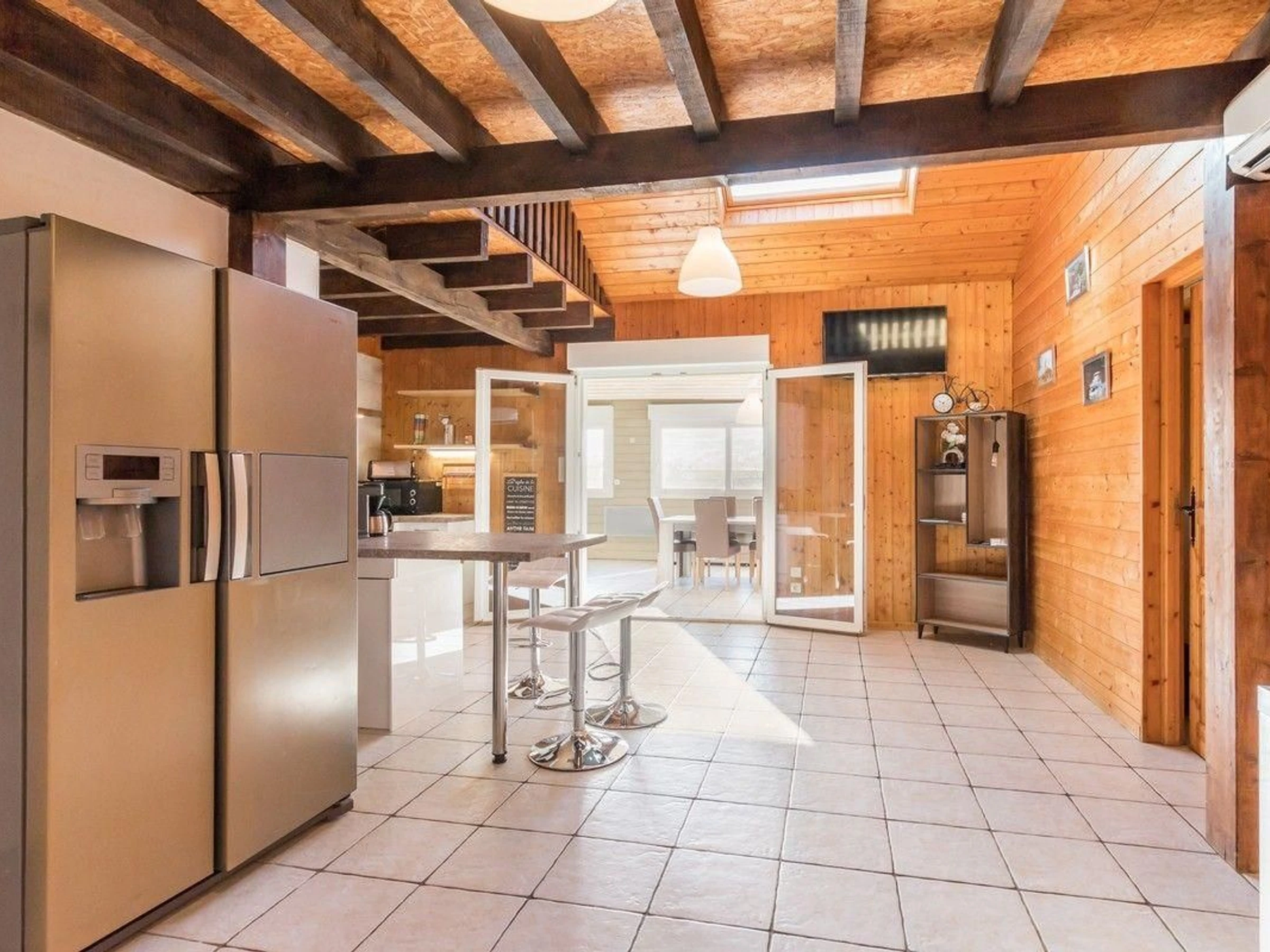 5 km entfernt, im Sommer: Freibad mit Rutschen, Spielbereich, Whirlpools. Möchten Sie etwas Ruhe und Frieden? In Vy-Le-Ferroux erwartet Sie ein gemütliches kleines Nest: ein charmantes Fachwerkhaus, das auf einer Ebene eine Einbauküche, ein helles Wohn-/Esszimmer mit freiem Blick in die Natur, 2 Schlafzimmer mit jeweils 1 140 cm breitem Bett, ein Duschbad, WC bietet. Hochstuhl, Sitzerhöhung, 1 Reisebett. Parken. 4 x 7 m großer Swimmingpool, beheizt und sicher, geöffnet vom 1. Mai bis 30. September (wetterabhängig), zur gemeinsamen Nutzung mit den Eigentümern und Mietern des auf dem Grundstück befindlichen Wohnwagens. Petanque-Platz, Tischtennisplatte, Basketballkorb, Billard. Brettspiele. Gartenmöbel und Grill. Uneingezäuntes Grundstück. Elektroheizung. WiFi-Internet. Das Ferienhaus kann auch zusammen mit dem Wohnwagen gemietet werden, für insgesamt 8 Personen.