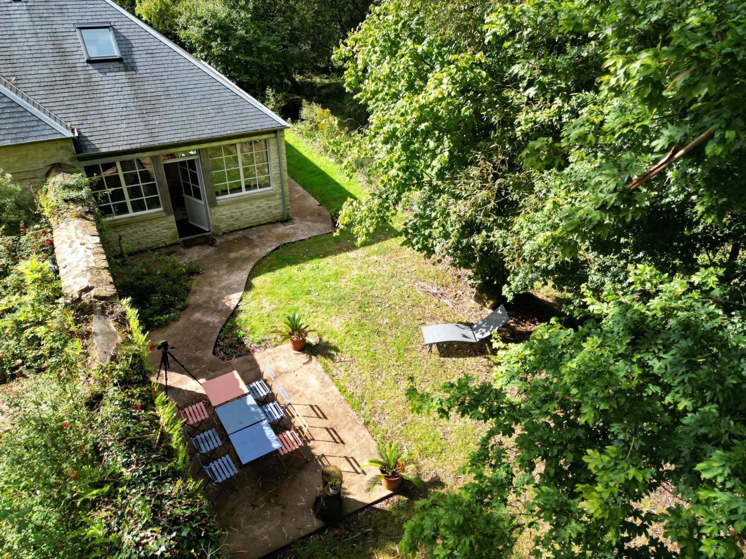 Freistehendes Haus. Wohnzimmer (TV). Küche (Backofen, 5-Flammen-Gasherd, Geschirrspüler, Kühlschrank, Gefrierschrank, Mikrowelle, Espressomaschine). Waschküche (Waschmaschine, Wäschetrockner) mit WC. Schlafzimmer 1 (Bett 160x200 cm) mit eigenem Badezimmer (begehbare Dusche, WC, Waschtisch). Im ersten Stock: Schlafzimmer 2 (Bett 160x200 cm) mit eigenem Badezimmer (freistehende Badewanne, WC, Waschtisch), Familienschlafzimmer 3 (Bett 160x200 cm + 2 Einzelbetten 90x190 cm) mit eigenem Badezimmer (freistehende Badewanne, WC, Waschtisch). Babyausstattung auf Anfrage. Bettwäsche und Handtücher werden gestellt. Betten sind bei Ankunft bezogen. Reinigungsservice gegen Aufpreis. Elektrische Heizung gegen Aufpreis. Privater, nicht eingezäunter Garten. Terrasse. Gartenmöbel. Grill. Teich in unmittelbarer Nähe des Ferienhauses (Oktober bis April). Gemeinsamer Waldpark. Parkplatz. Die lange, von Linden gesäumte Auffahrt lädt zu einem grünen Refugium ein. Eine wahre Oase der Ruhe und Natur erwartet Sie bei Véronique und Claude Pierre. Sie sind dem Charme dieses ehemaligen Herrenhauses und seiner alten Steine erlegen. Das komplett bewaldete Anwesen verfügt über einen Naturteich, der von Oktober bis April Wasser führt. Das Ferienhaus liegt direkt am Ufer, und vom Wohnzimmer aus bietet sich ein atemberaubender Blick auf das Gewässer. Je nach Jahreszeit herrscht hier eine ganz andere Atmosphäre. Die Eigentümer haben die Räume dieses schönen Gebäudes mit seinen weißen Steinmauern komplett neu gestaltet. Von der Küche bis zu den Schlafzimmern, einschließlich der einzigartigen Treppe, ist die Holz- und Metallverarbeitung bemerkenswert. Das Interieur besticht durch ein originelles Design, wie beispielsweise die schräge Wand, die als Raumteiler mit integriertem Bücherregal dient – einfach genial! Unweit von Valognes, einer Stadt voller Kunst und Geschichte, bietet dieses wunderschöne Anwesen Platz für zwei Familien.
