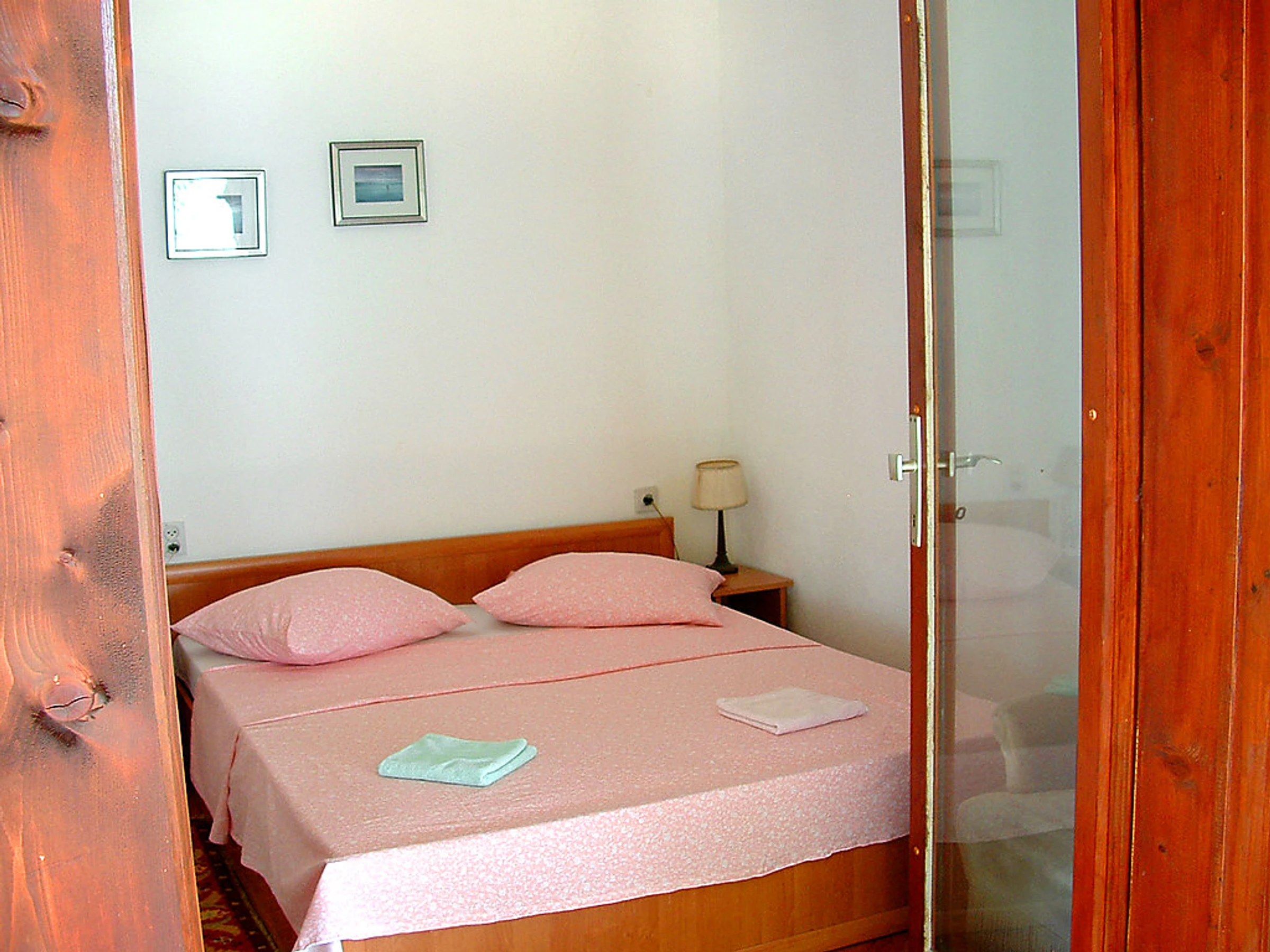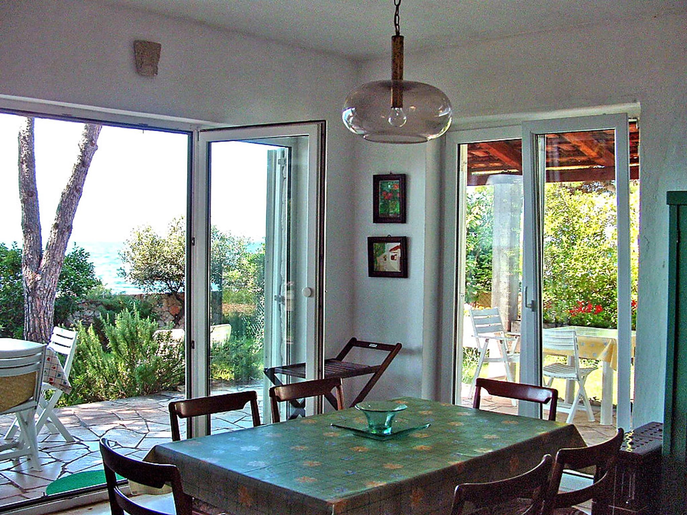 5-Zimmer-Haus 90 m2 auf 2 Stockwerken. Wohn-/Esszimmer mit offenem Kamin und Sat-TV. Ausgang zum Garten, zur Terrasse. 1 Zimmer mit 1 Bett. 1 Zimmer mit 2 Betten und Bad/Dusche/WC. Ausgang zum Garten. Offene Küche (4 Kochplatten, Backofen, Geschirrspüler, Tiefkühler). Sep. WC. Obergeschoss: (steile Treppe) 2 Zimmer, jedes Zimmer mit 1 franz. Bett (180 cm). Ausgang zum Balkon. Dusche/WC. Balkon, grosse Terrasse 20 m2 teilweise überdacht. Terrassenmöbel, Gartengrill (mobil), Liegestühle. Sehr schöne Sicht auf das Meer. Zur Verfügung: Waschmaschine. Internet (Wireless LAN, gratis). 1 kleines Haustier/Hund erlaubt. Das Obergeschoss ist auch über Aussentreppen erreichbar. Enthaltet: drahtloser Internetzugang (WIFI), Kleines Haustier, Endreinigung, Wöchentliche Wäsche (Bett- und Toilettenwäsche) Obligatorische Extra Dienstleistungen vor Ort: Kurtaxe 1.1EUR pro Person/Tag