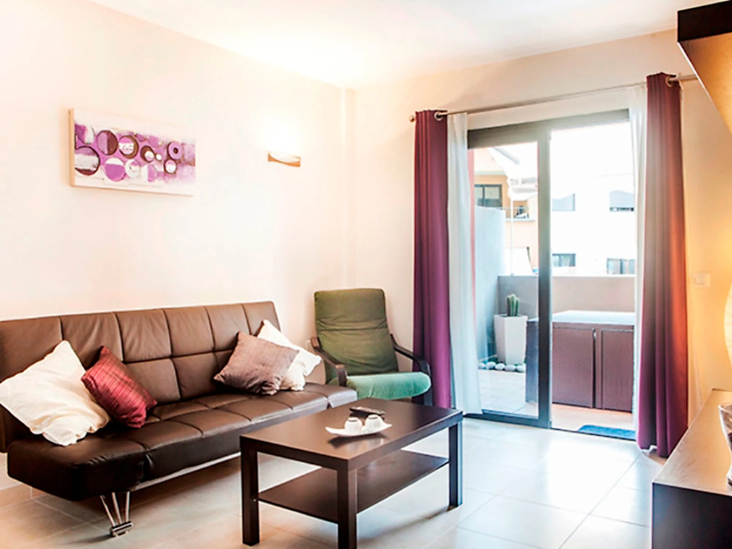 Adeje: Cosy, comfortable house "Residencial El Torreón", built in 2011. In the resort, in a quiet, sunny position, 5 km from the sea. For shared use: swimming pool (01.01.-31.12.). Outdoor shower. In the house: lift. Communal covered parking. Grocery, supermarket 50 m, shopping centre 150 m, restaurant, bus stop 50 m, sandy beach 3 km, shingle beach 3 km. Golf course 1.5 km, tennis 200 m. Please note: motorway 300 m from the property.