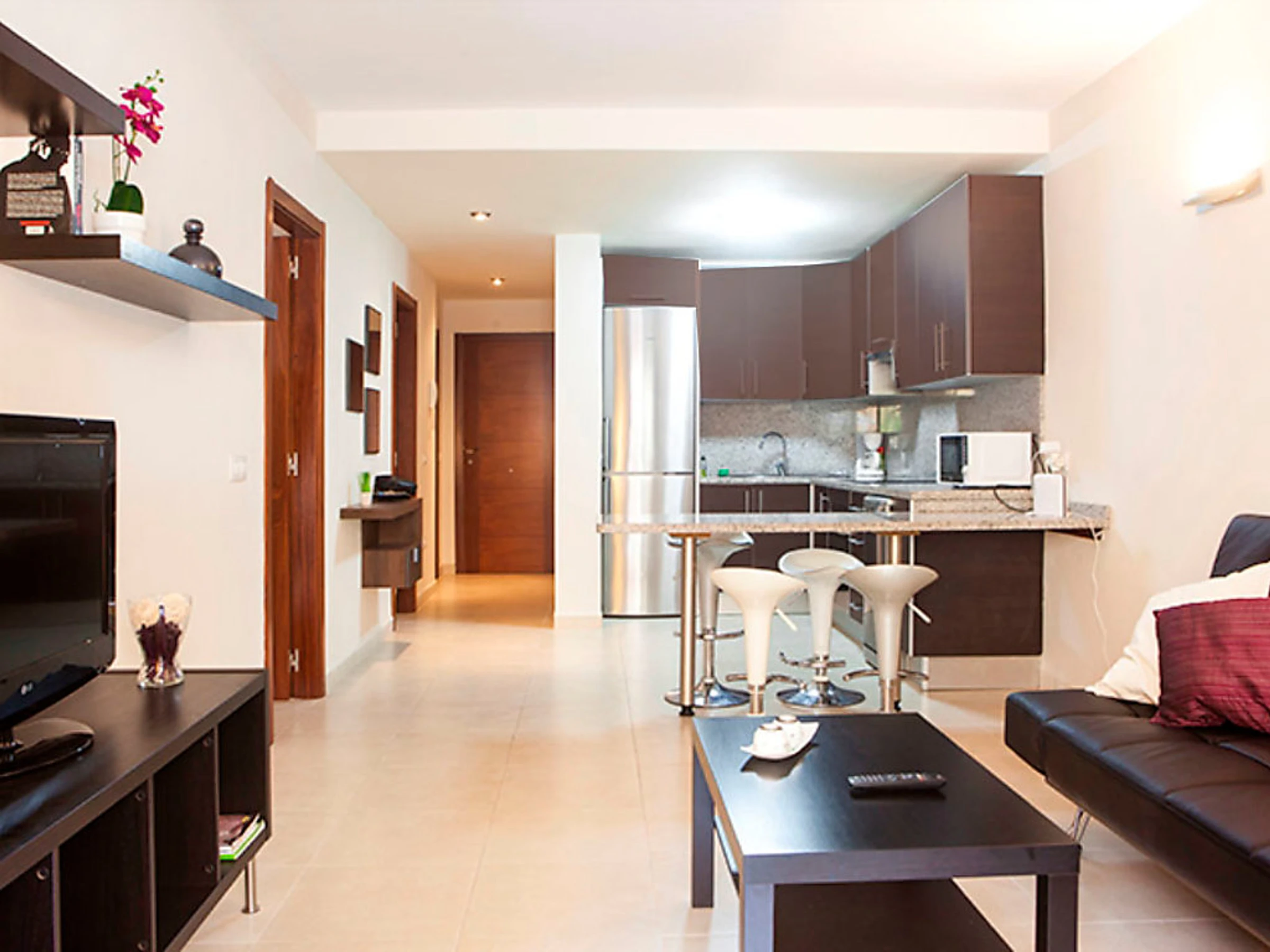 "Residencial El Torreón", 3-room apartment 67 m2, on the ground floor. Comfortable and cosy furnishings: living/dining room with 1 double sofabed, dining table and satellite TV (flat screen). Exit to the terrace. 1 room with 1 french bed. Exit to the terrace. 1 room with 1 double bed. Open kitchen (oven, dishwasher, 4 ceramic glass hob hotplates, microwave, freezer). Bath/WC. Boiler. Terrace 20 m2. Terrace furniture, deck chairs (2), box-room. Facilities: washing machine, iron. Internet (WiFi, free). Reserved parking.
