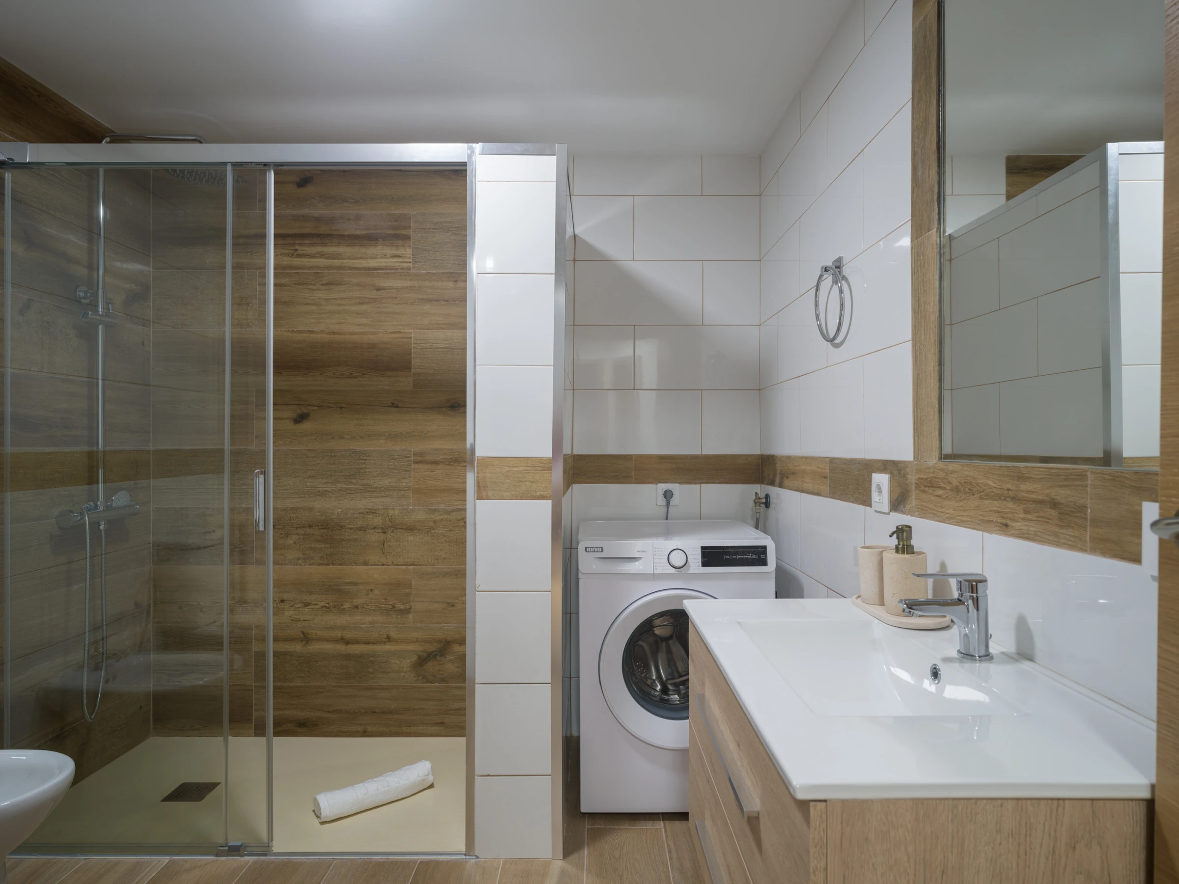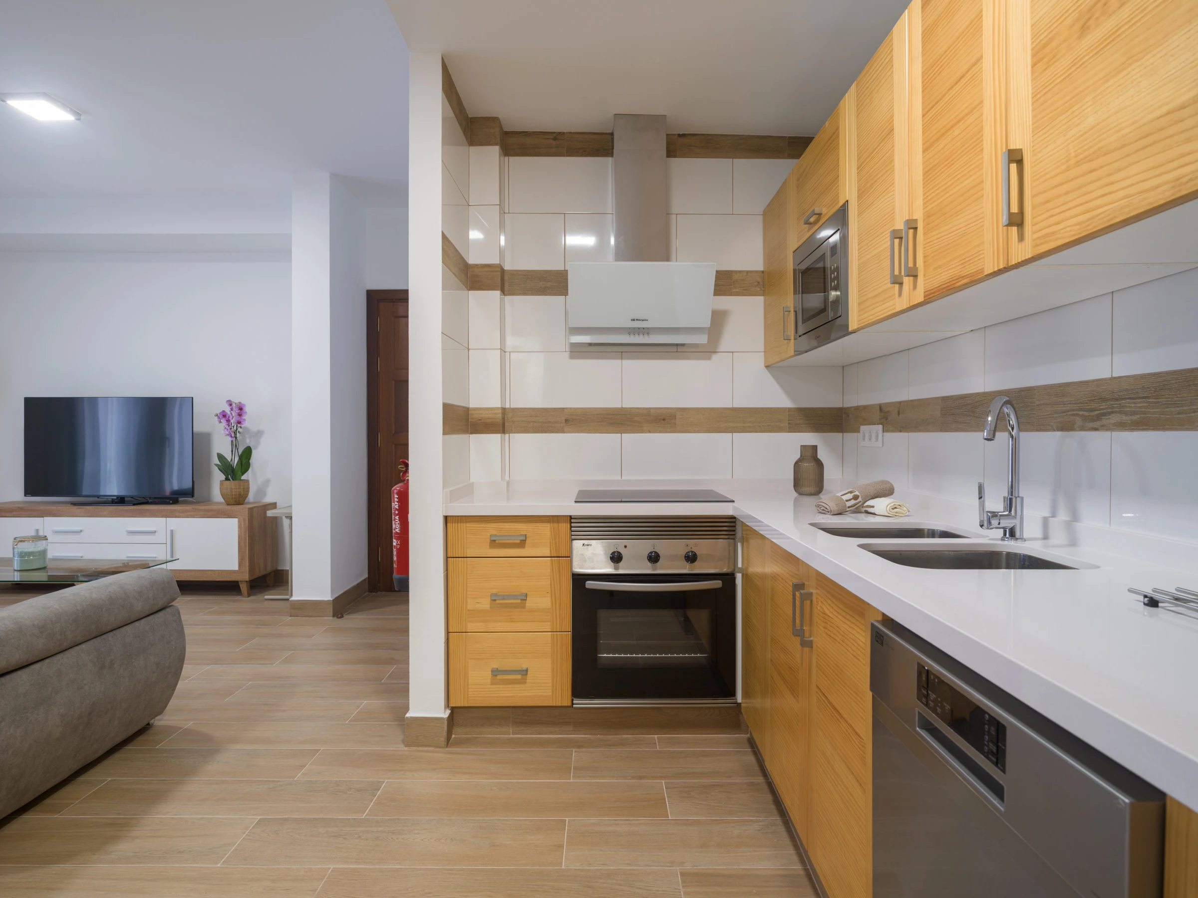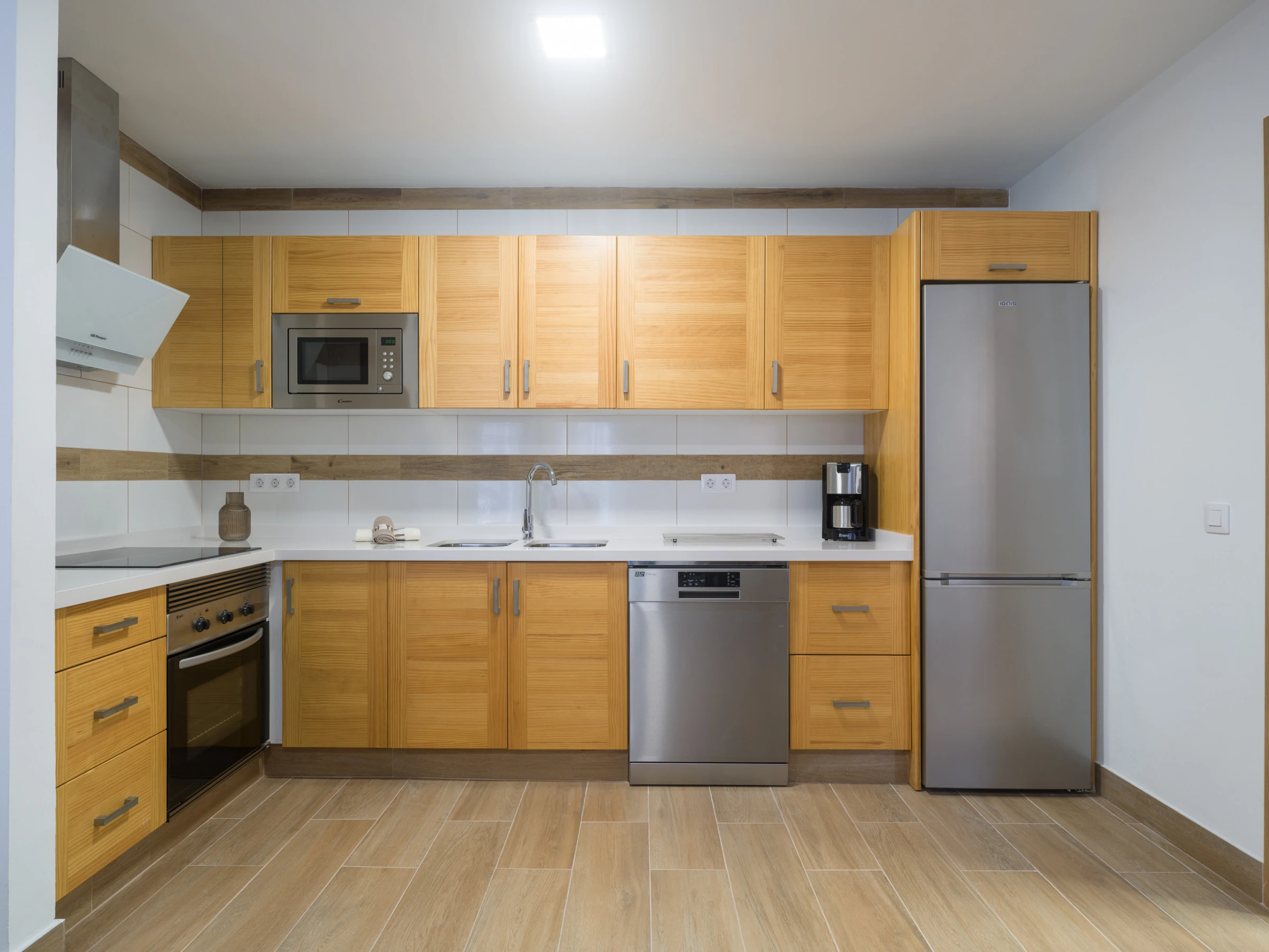 The fully equipped American kitchen is the heart of the home, perfect for preparing and sharing special moments. It includes an oven, microwave, dishwasher, coffee maker, toaster and fridge with freezer, as well as all the necessary utensils for a worry-free stay.