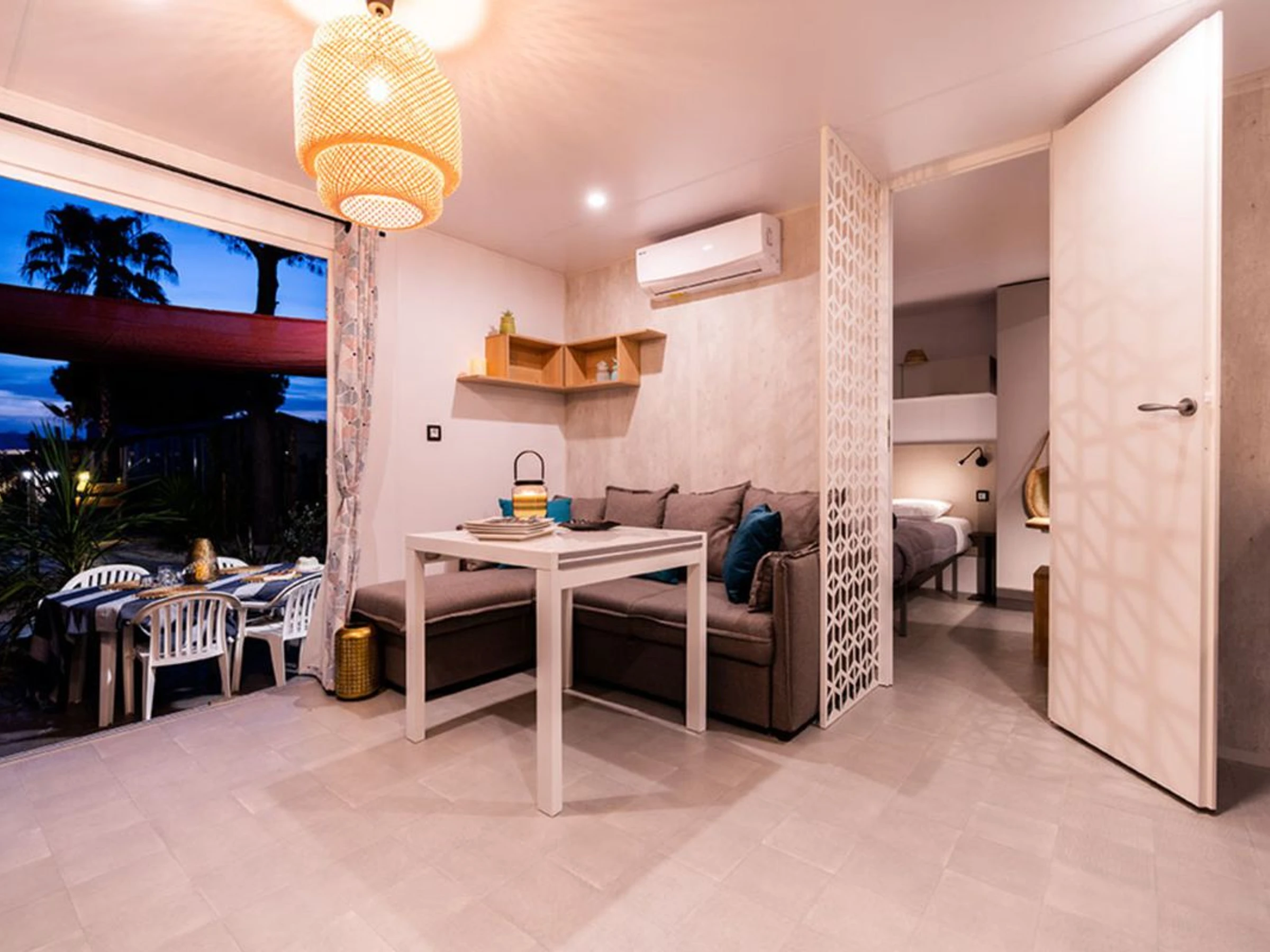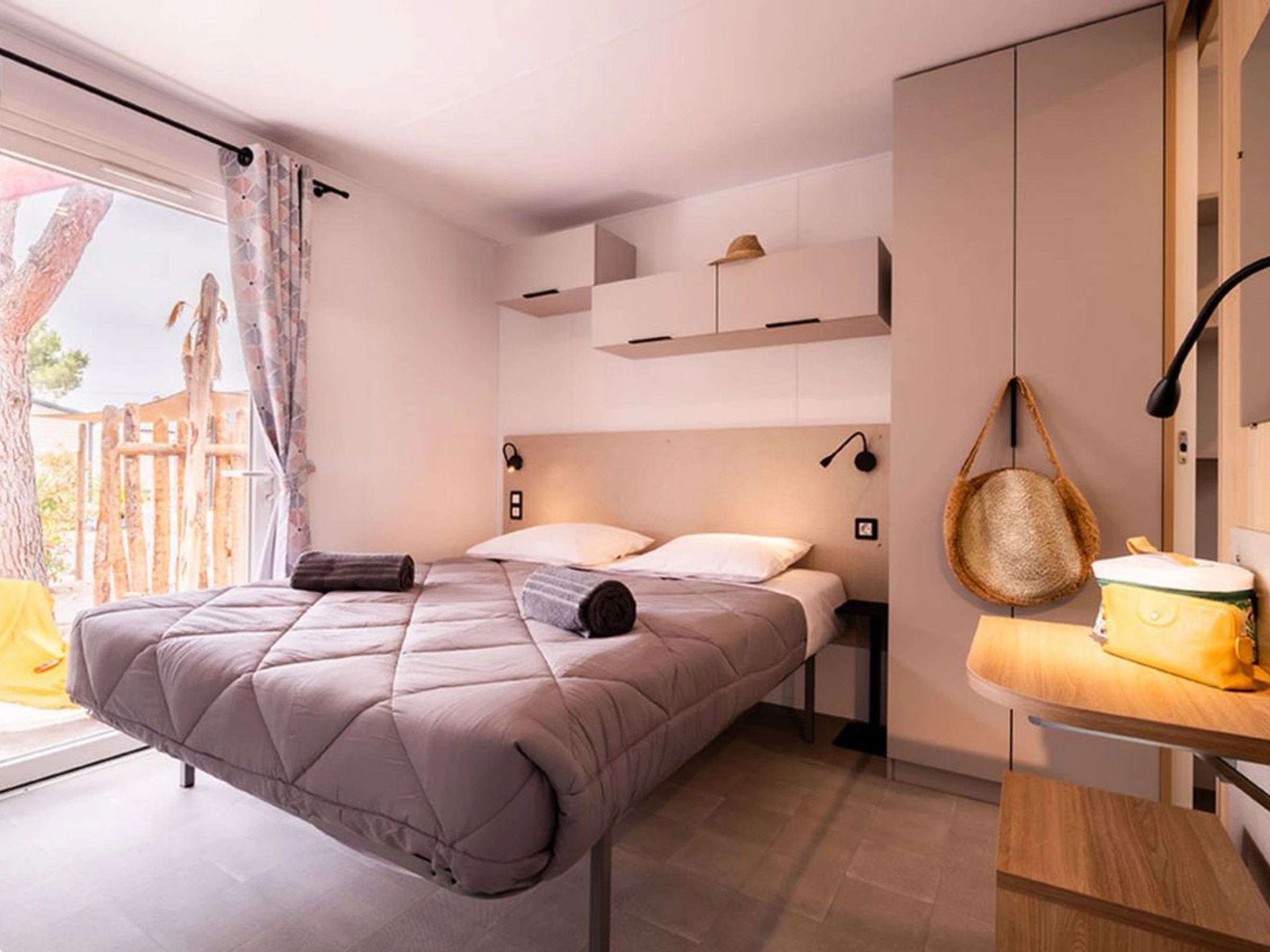 The 4-star Camping Sables D'Or campsite is located in Agde, in the Languedoc-Roussillon region. Camping Sables D'Or offers you a pleasant holiday thanks to its quality amenities: supermarket/grocery store, restaurant, entertainment, kids' club, water park, swimming pool, etc. An ideal starting point for exploring the Languedoc-Roussillon region, you will be charmed by the beauty of the landscapes and the rich heritage. For your camping holiday, book your comfortable mobile home at Camping Sables D'Or and enjoy guaranteed fun!
