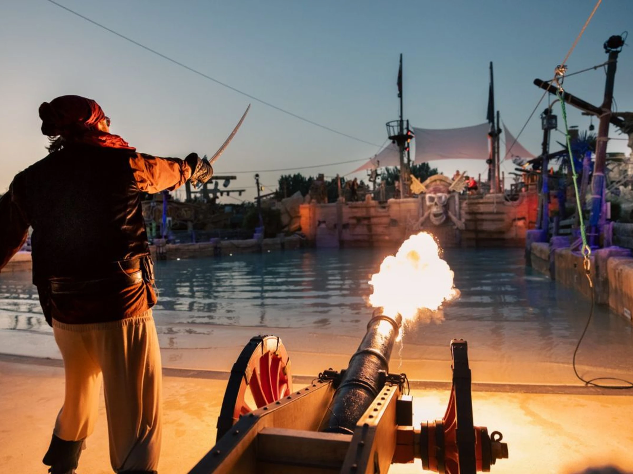 - Road to cross for the swimming pool reception. 5 water slides, including 1 multi-lane slide with 6 slides, and 2 thrill rides.