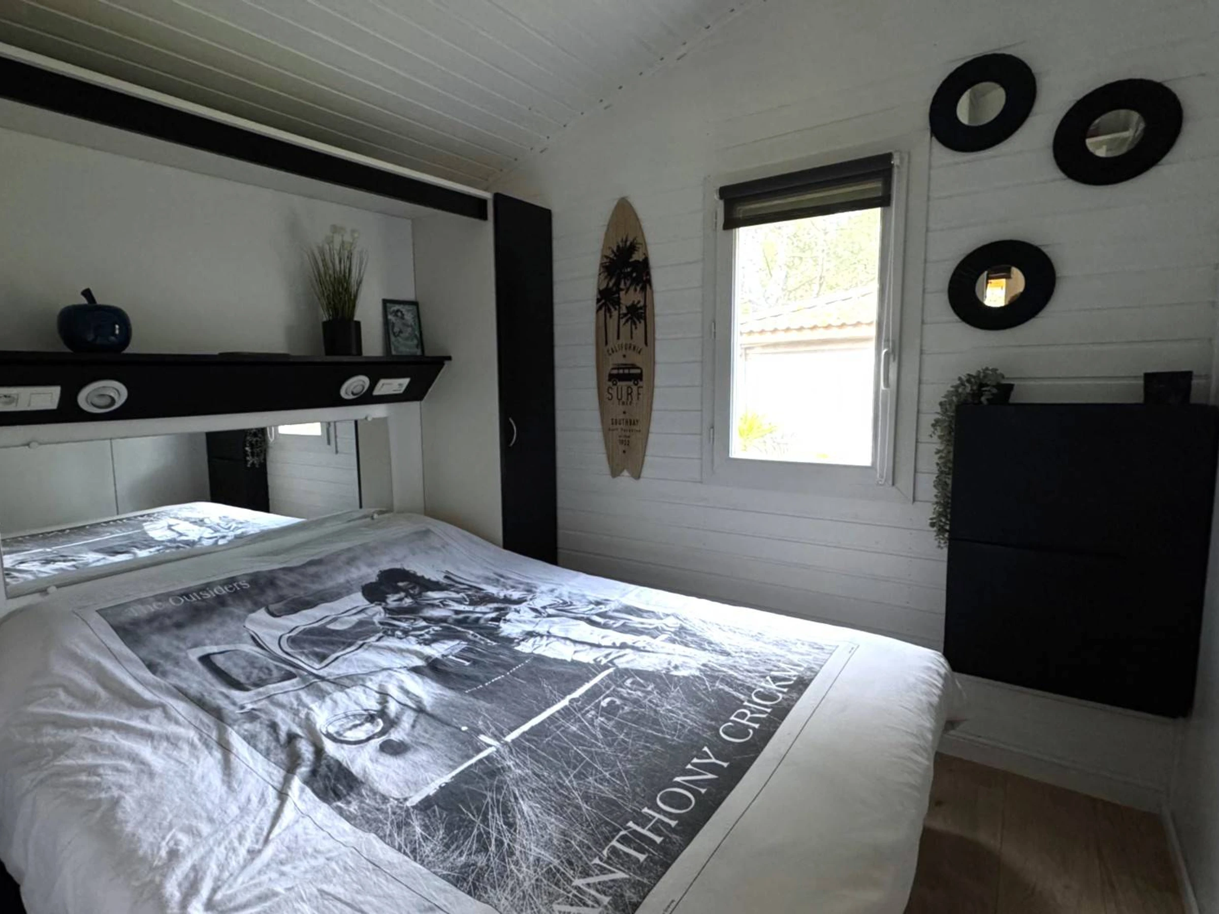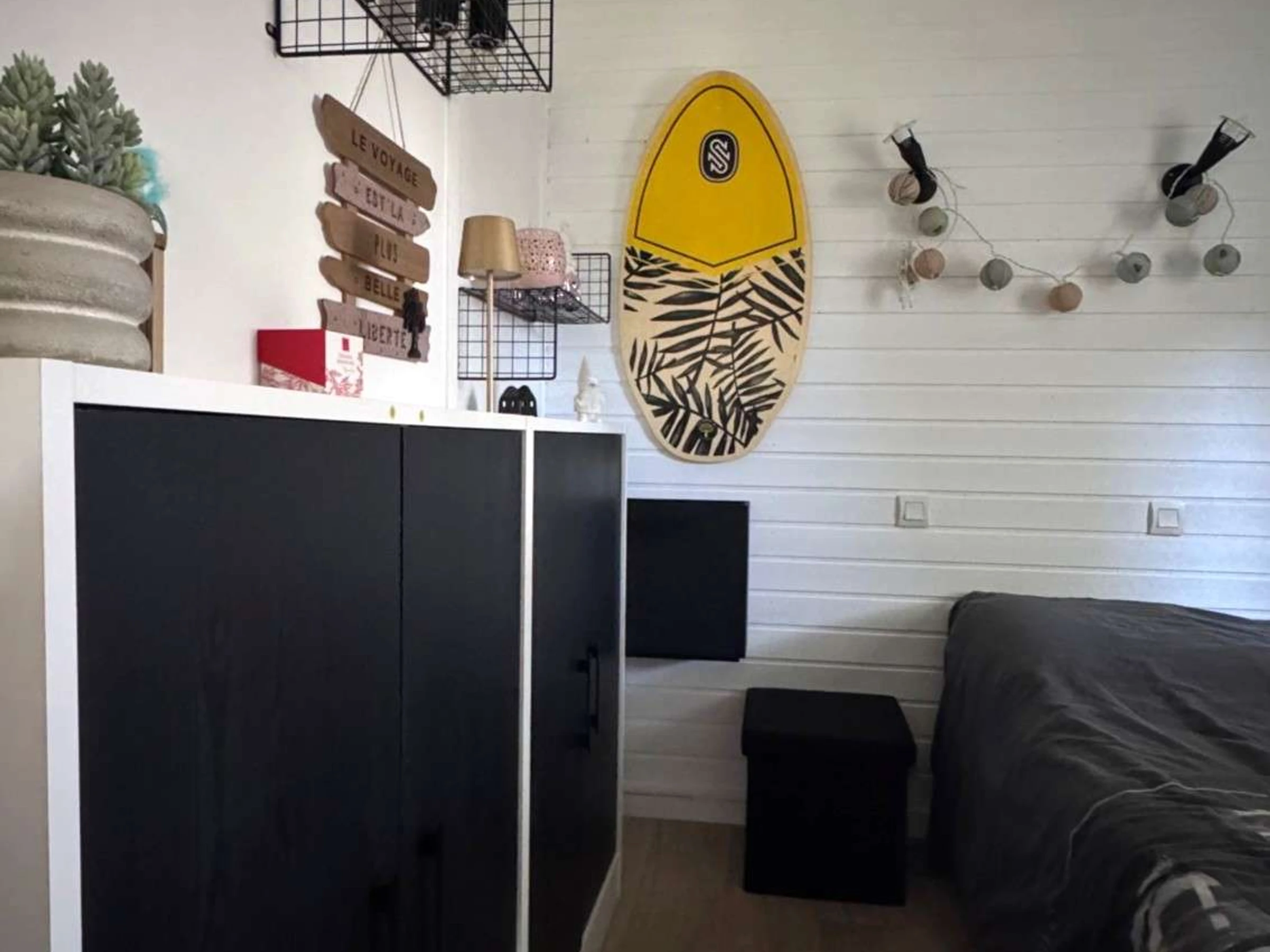 2 chambres, l'une avec un grand lit en 160, l'une avec deux lits simples en 80.