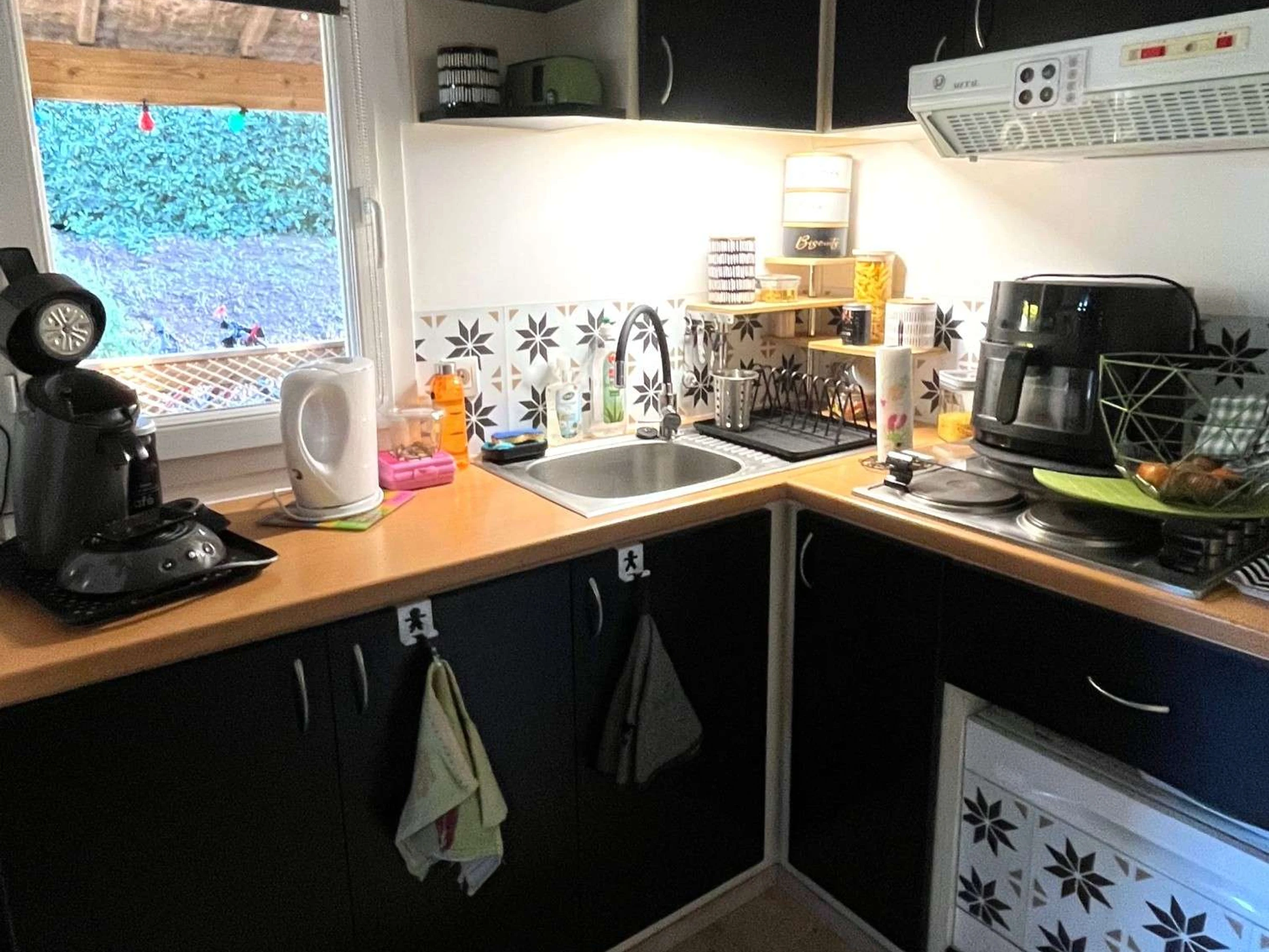 Les ustensiles tels que poêles, casseroles, verres, couverts et assiettes sont à disposition des voyageurs ainsi que les couettes, oreillers et nécessaire de nettoyage.