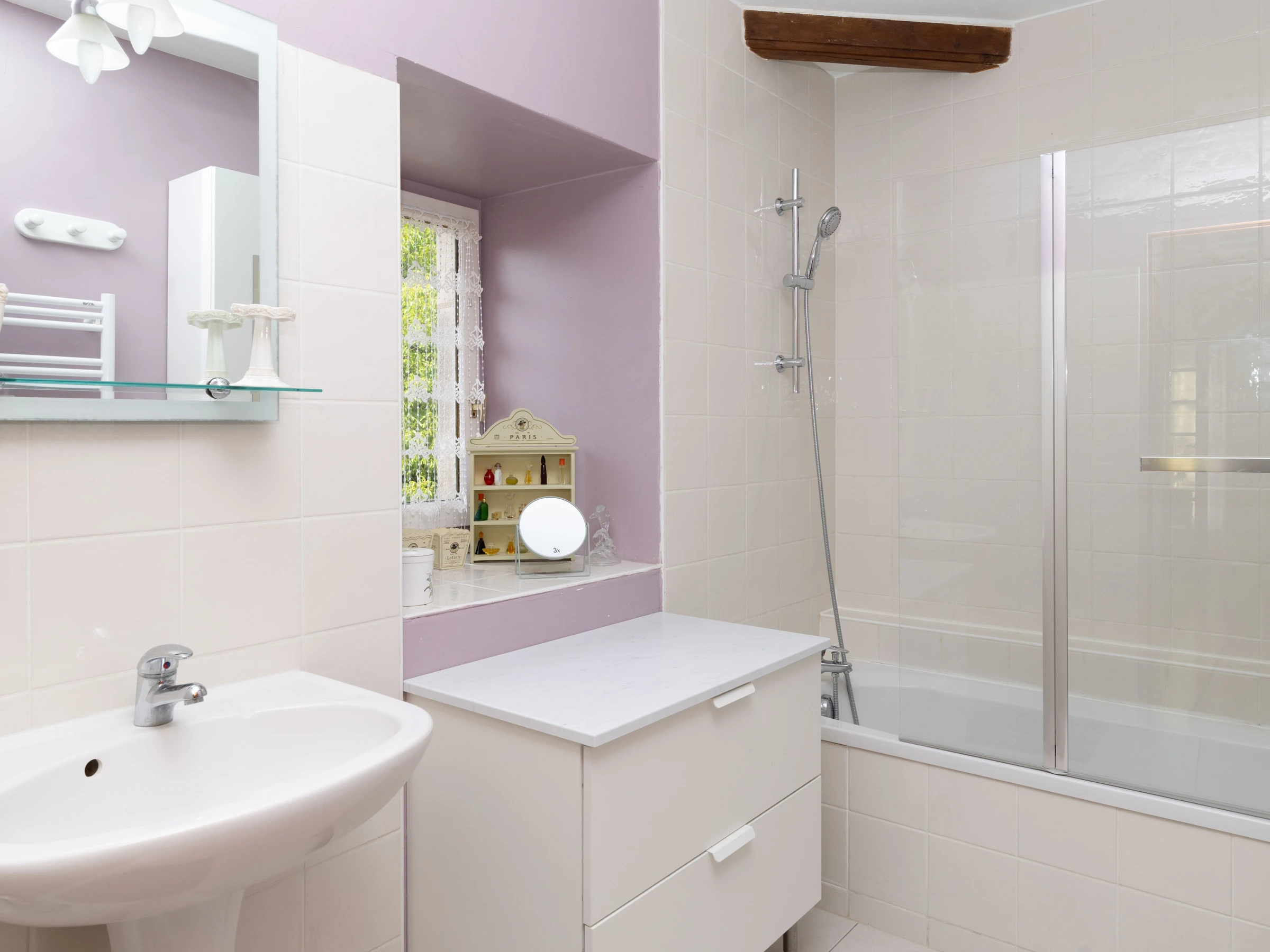 On the ground floor, you will enjoy a spacious and inviting living area where natural materials (exposed stone, beams) are elegantly combined with tasteful décor. A fully equipped kitchen opens onto a comfortable lounge with a flat-screen TV and wood-burning stove (wood provided). There is also a separate WC.