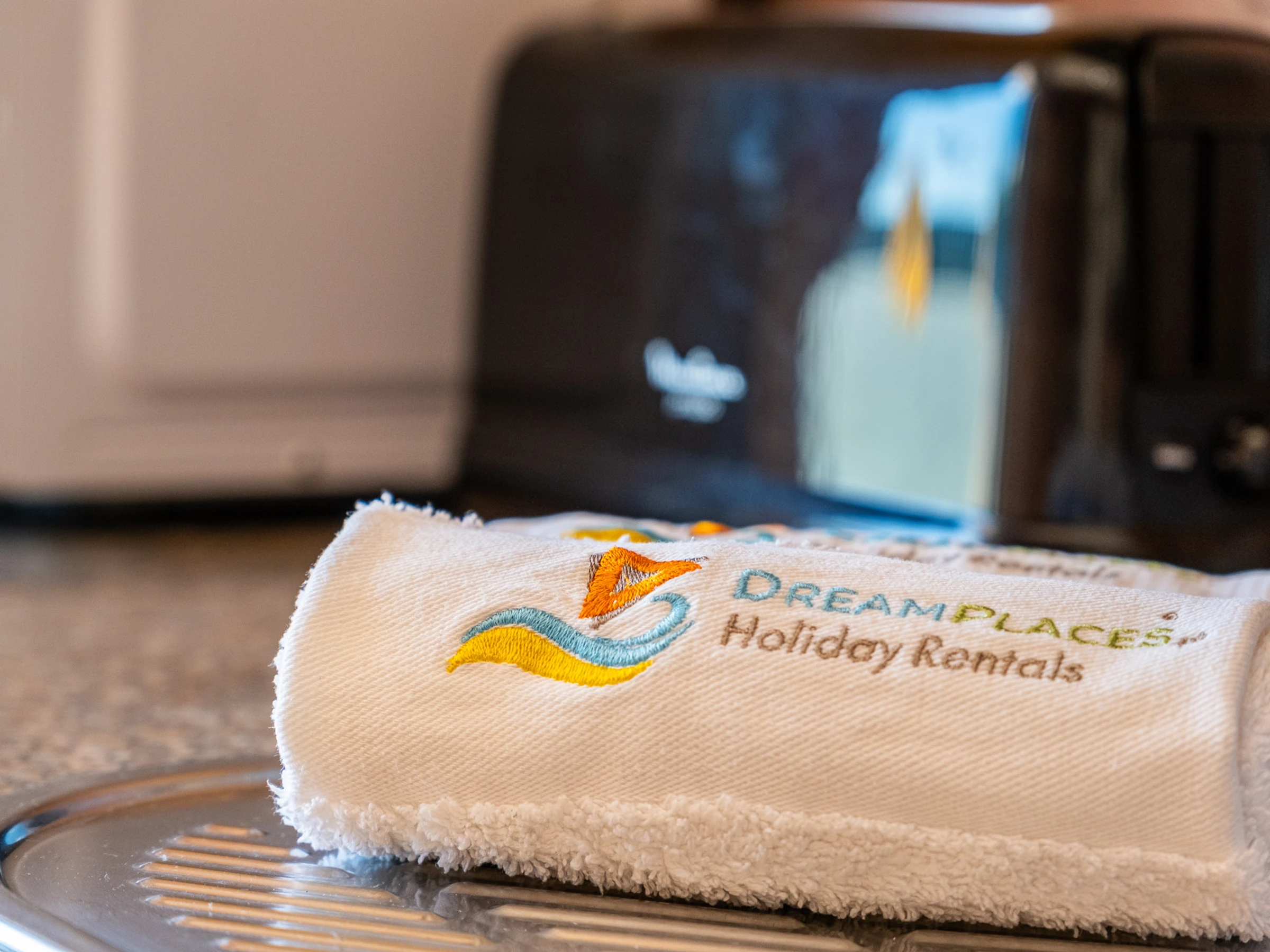 The kitchen, electric, is equipped with refrigerator, microwave, oven, freezer, dishwasher, dishes/cutlery, kitchen utensils, coffee machine, toaster, kettle and juicer.