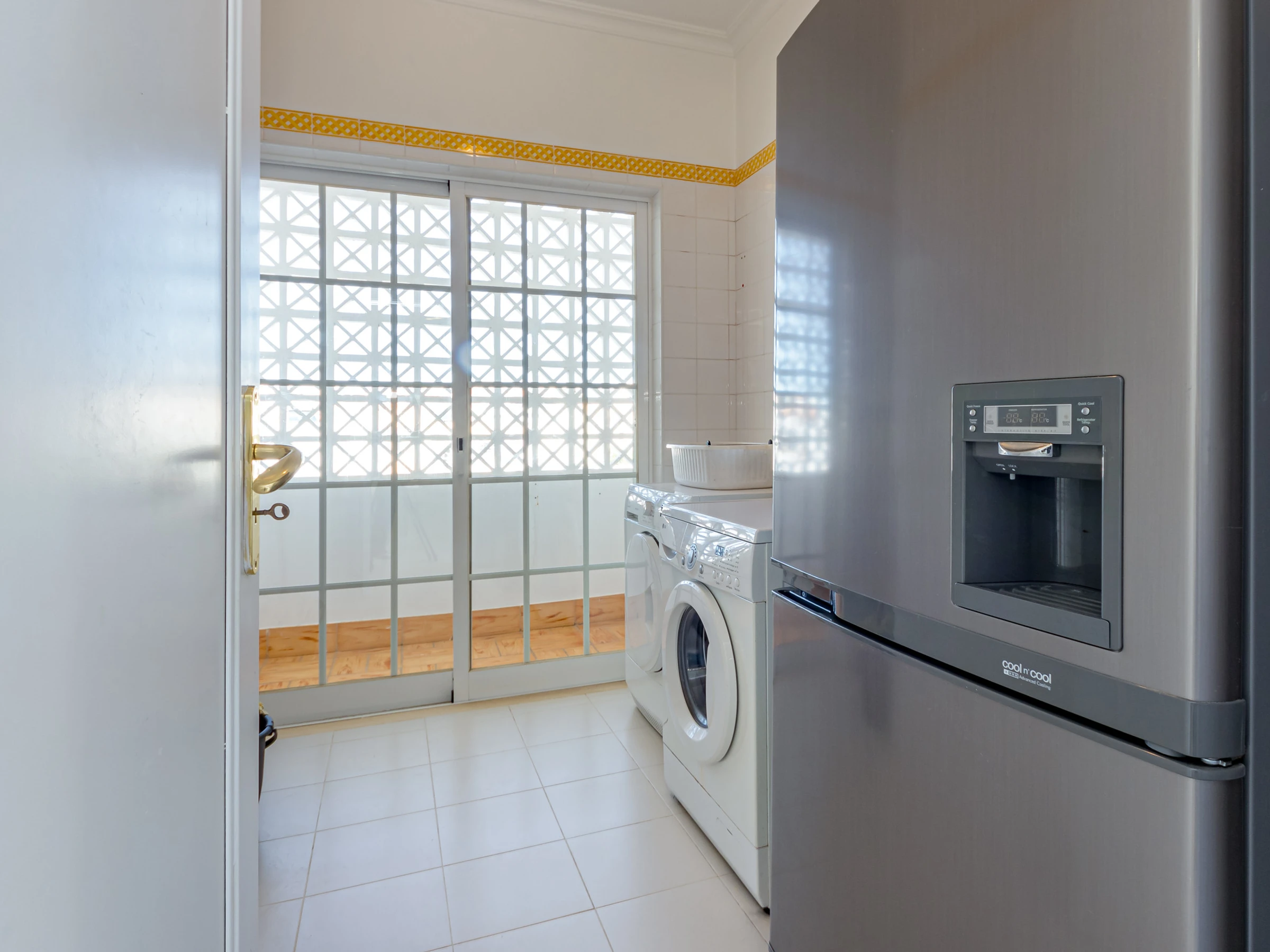 There is a separate laundry room with washing machine, tumble dryer, large fridge freezer, iron and ironing board.