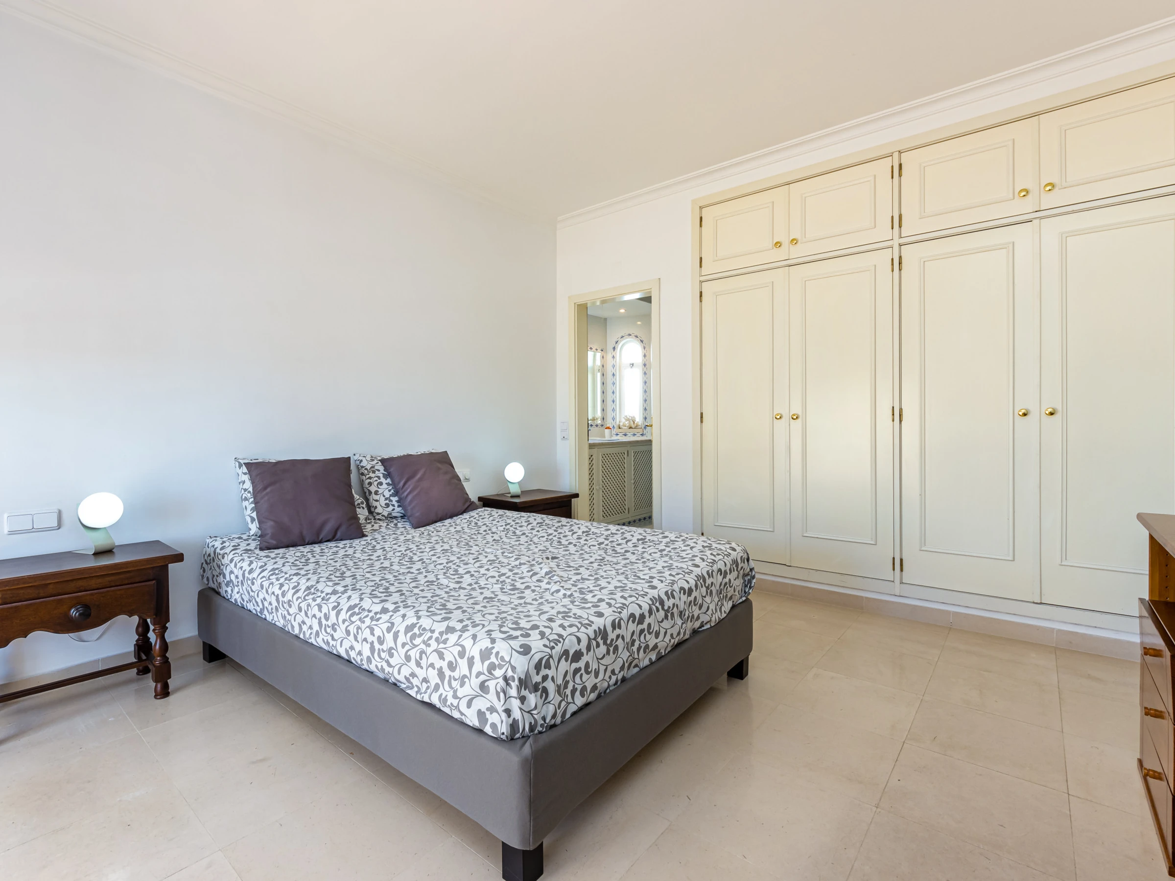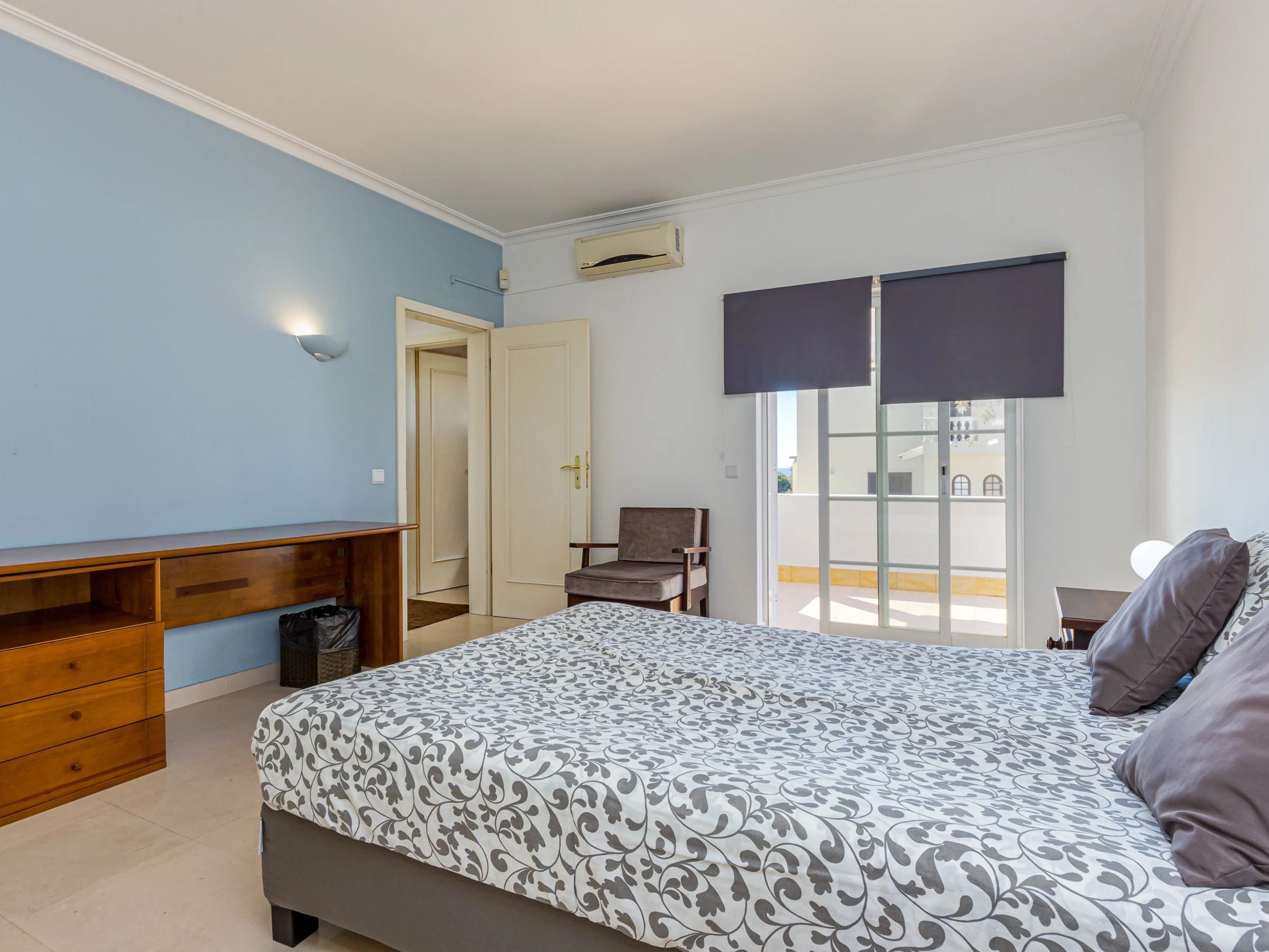 The master bedroom has a double bed. The bedroom has air conditioning and a large en-suite shower room. The private balcony has a table and chairs where you can sit and admire the alluring views over to the sea.
