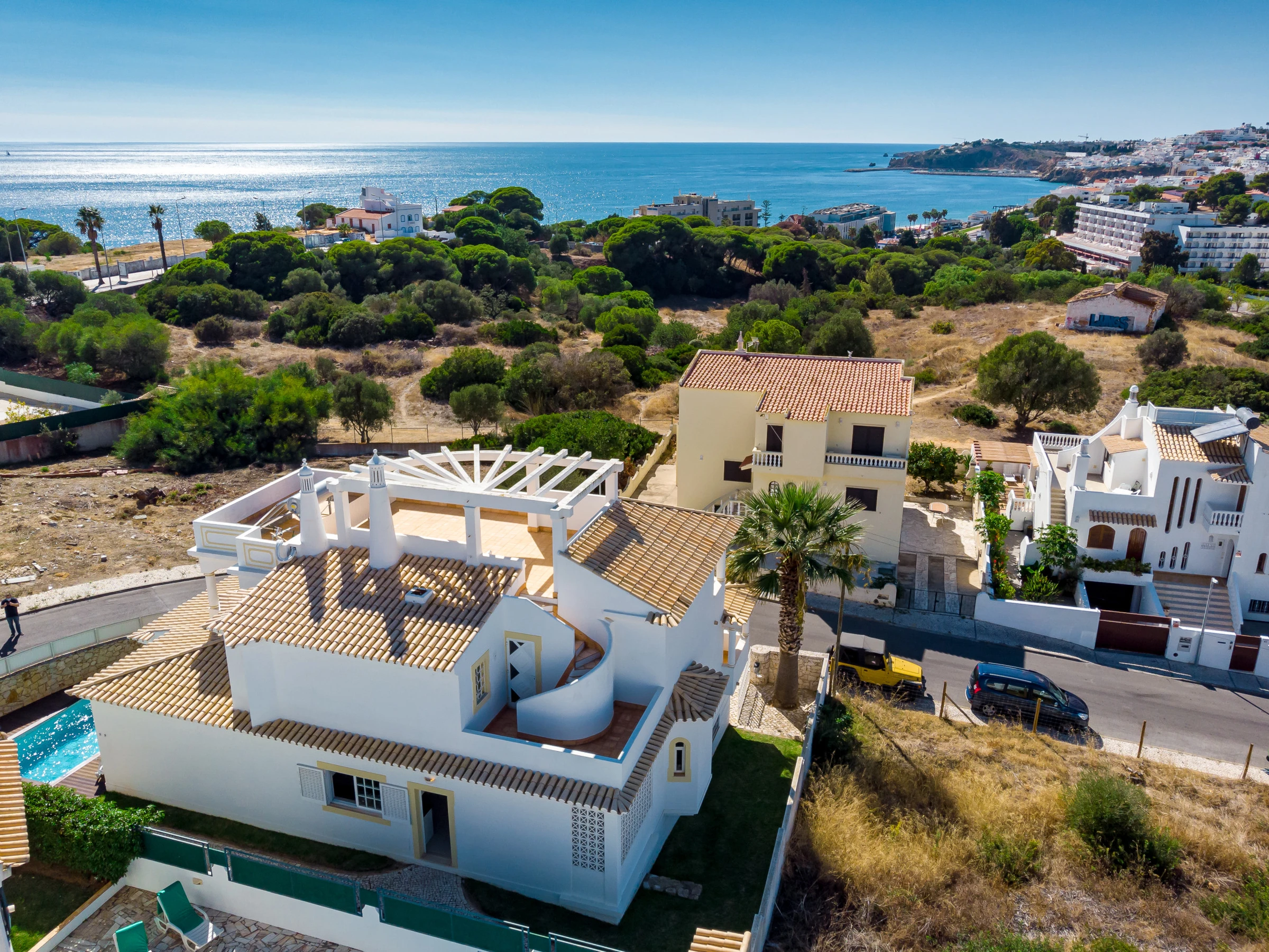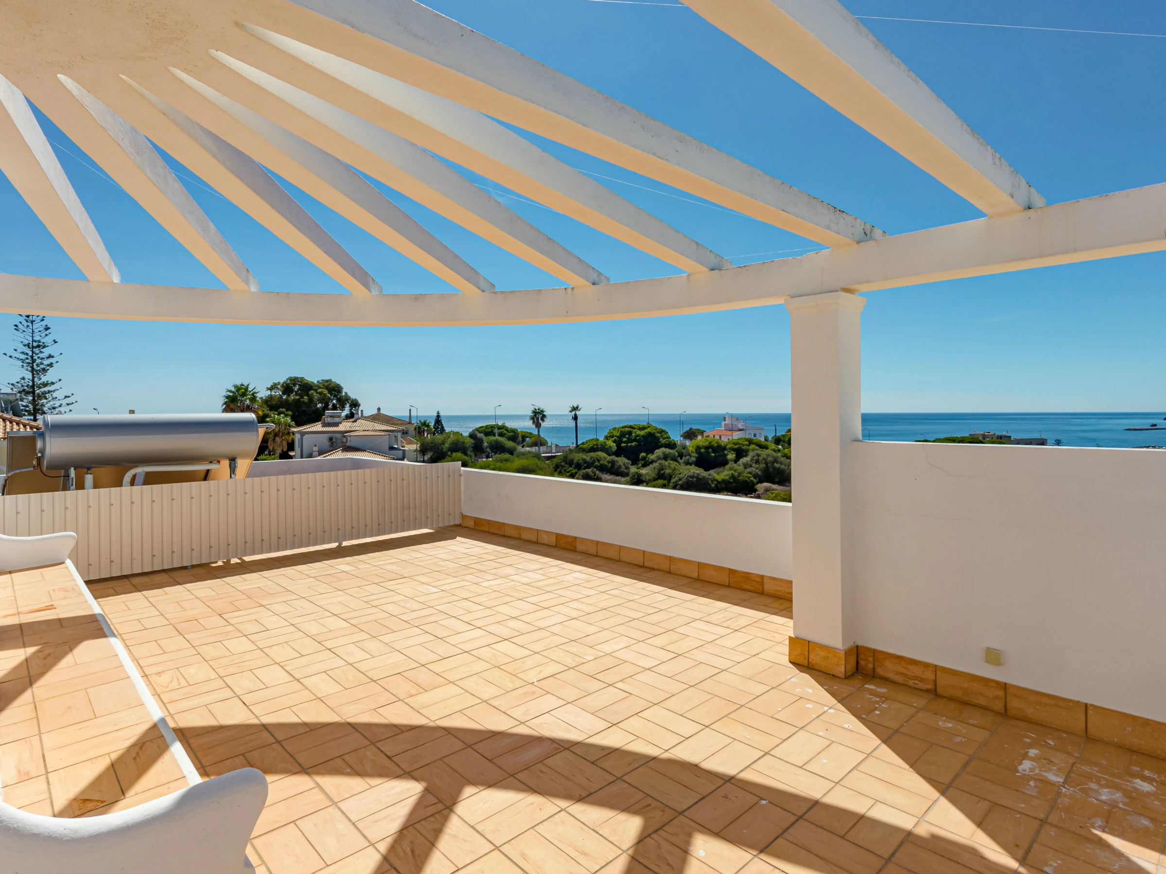 From the first floor, external stairs lead to a private roof terrace with the most superb views towards Albufeira and over the sea.