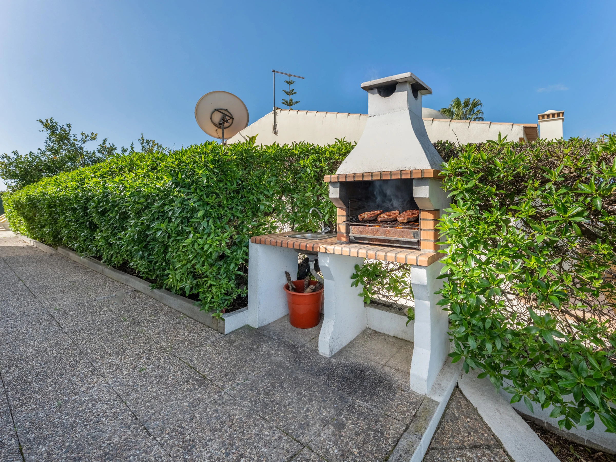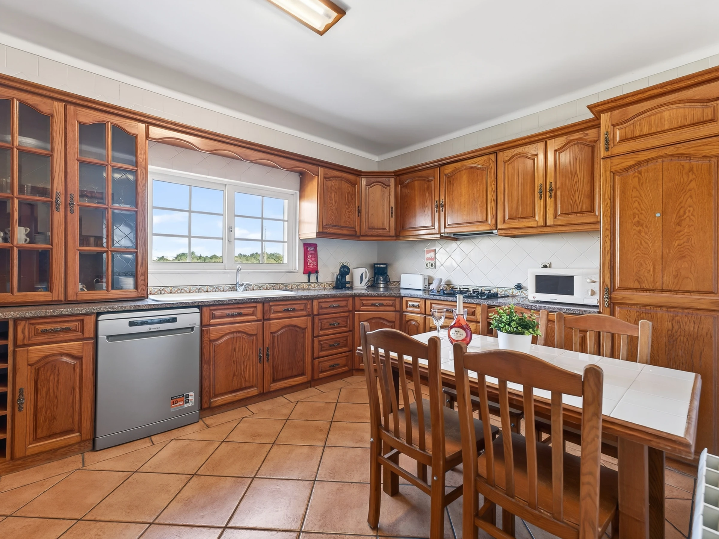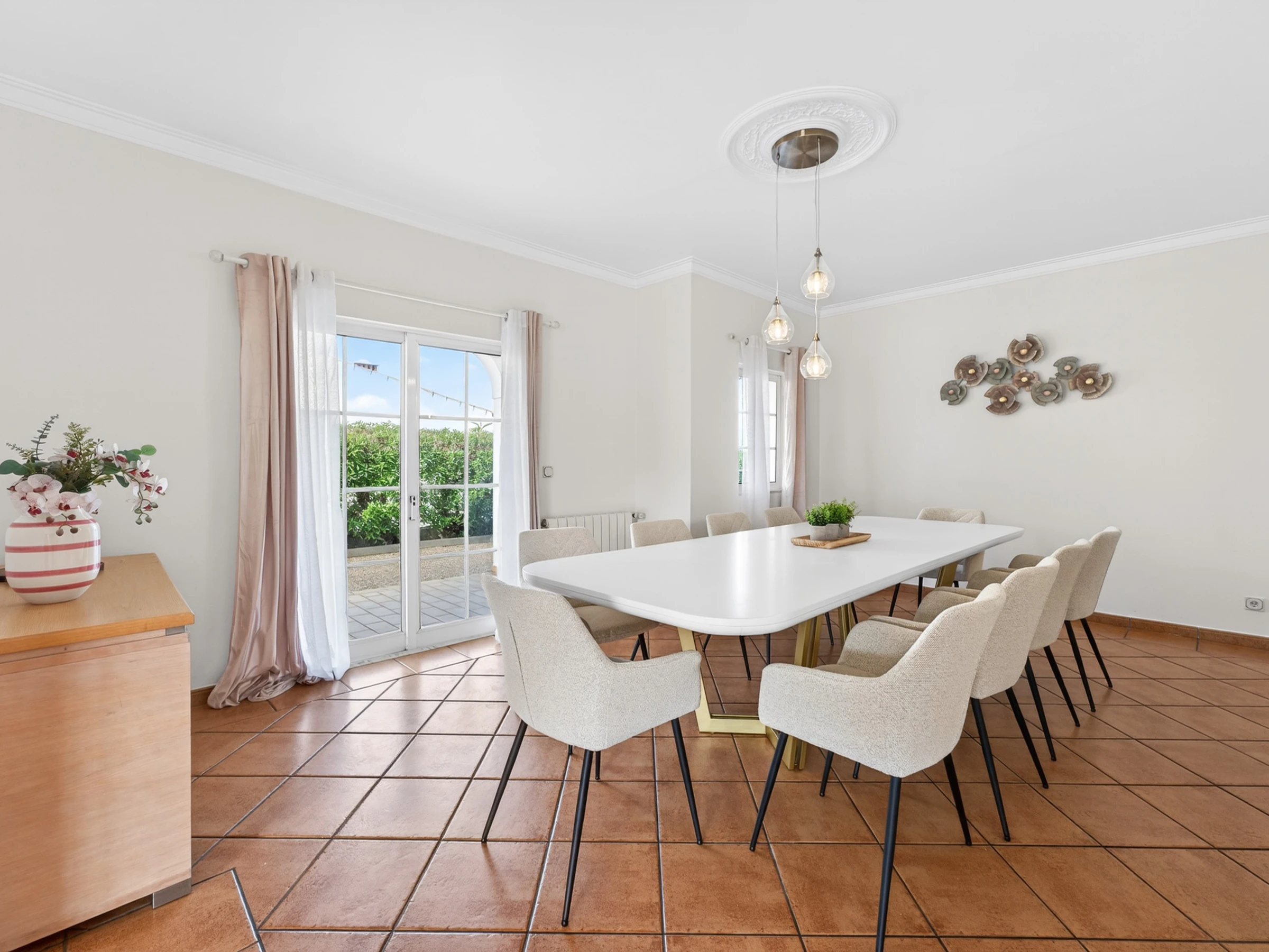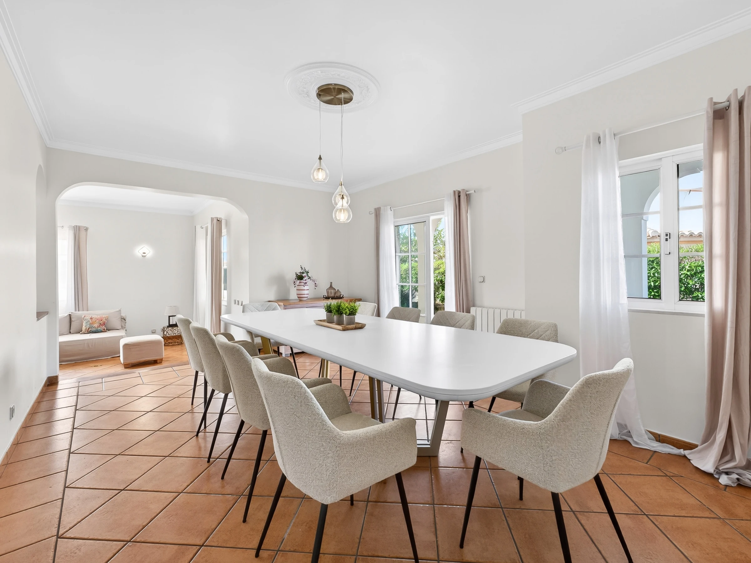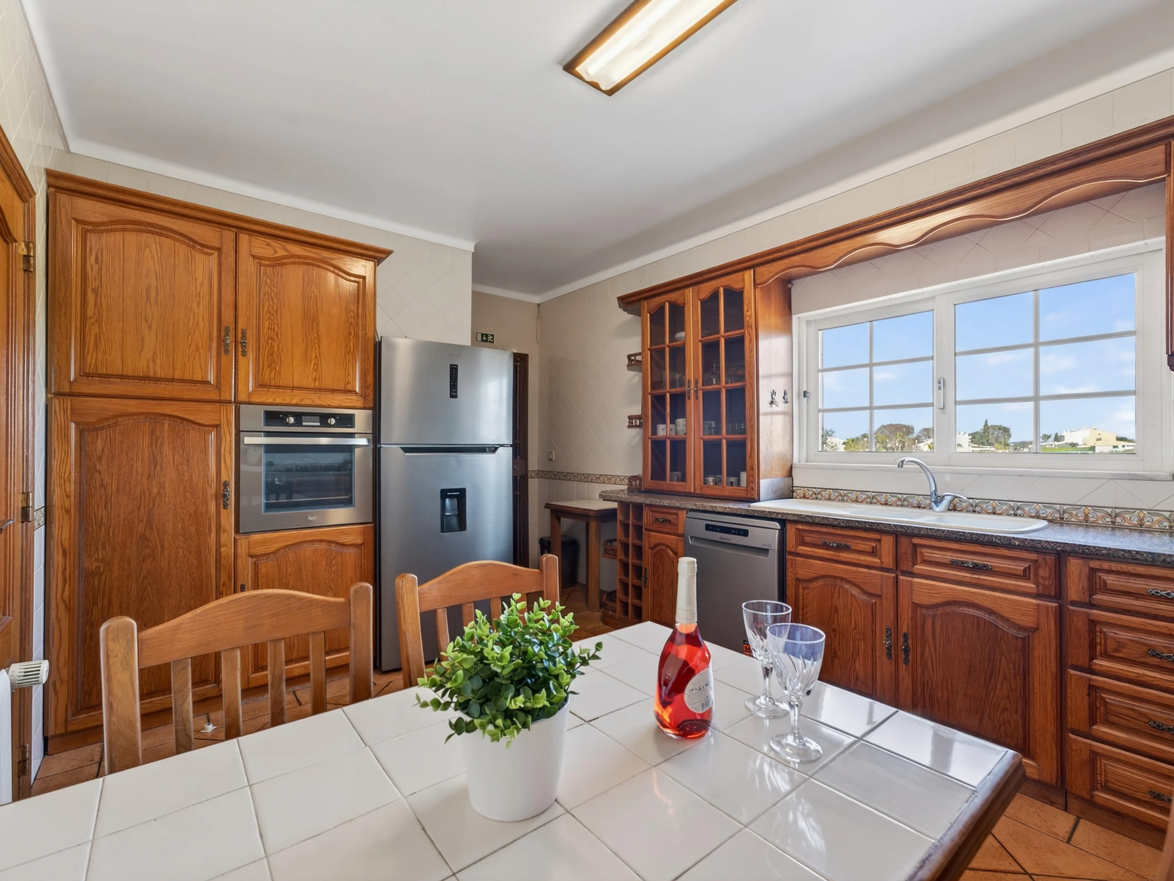 Step outside and you’ll find a private pool with around 10 sun loungers, inviting long, sunny days in the Algarve weather. A dining table sits just beside the barbecue, creating a practical and inviting corner for relaxed al fresco lunches and easy evening grills after a day out exploring.
