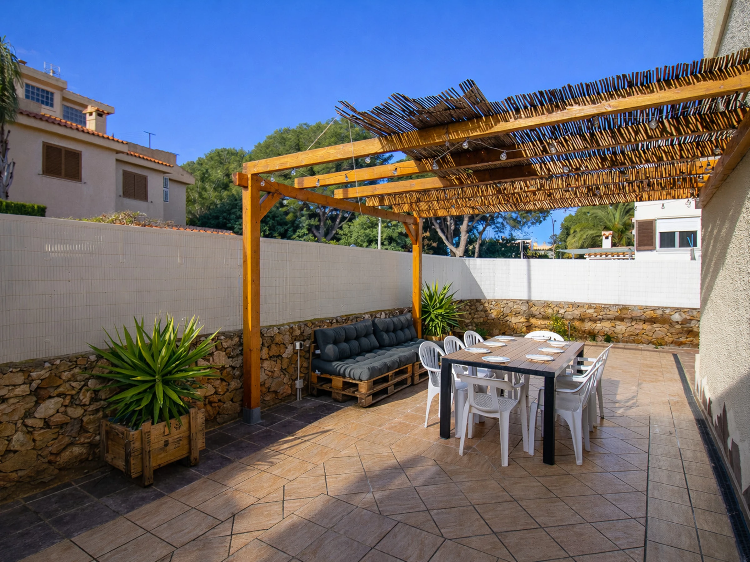 The property is located 0 m sand beach and it is located in a a family-friendly zone and in a suburb.