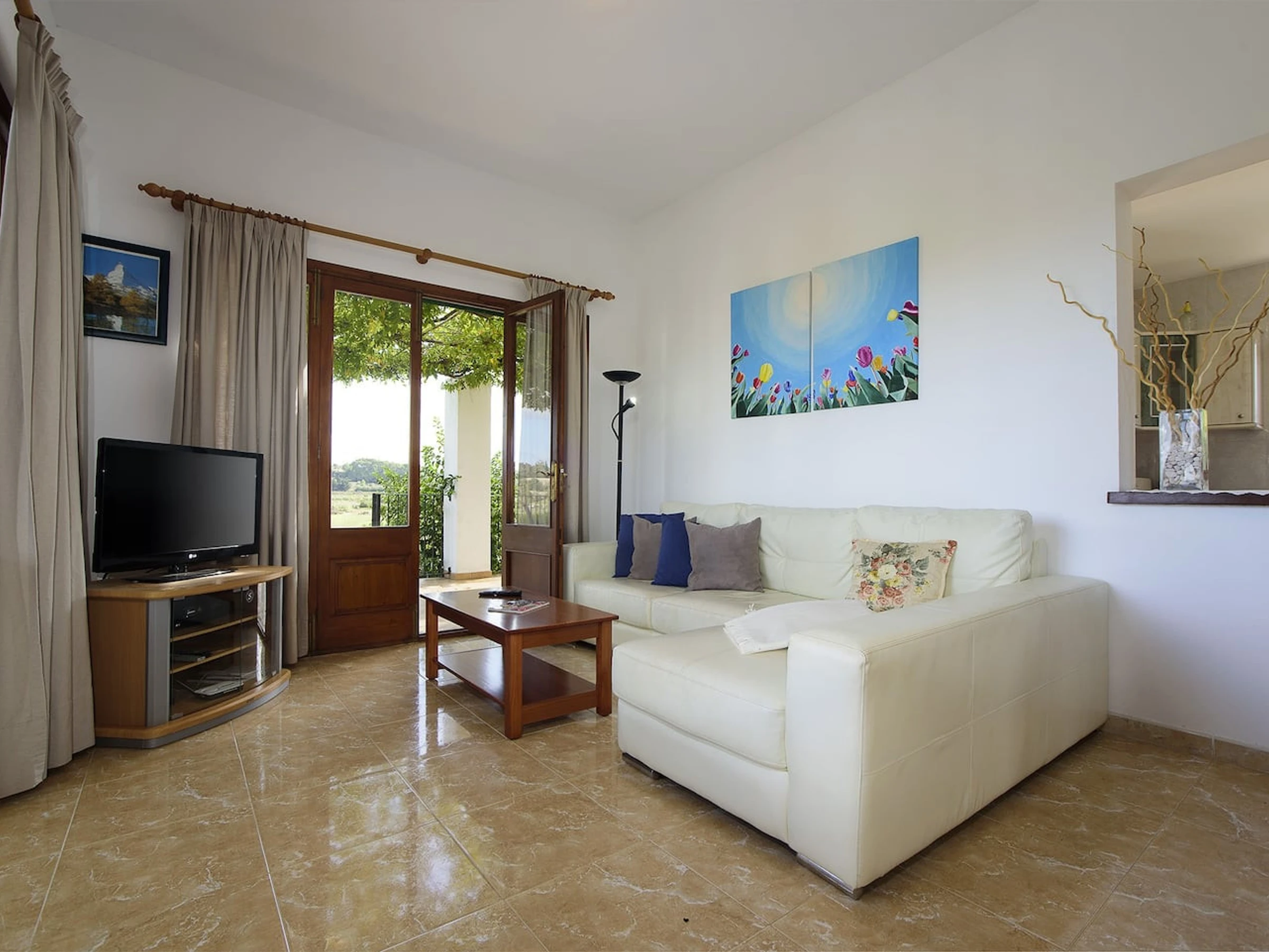 The living room opens directly onto the terrace, creating a fluid connection between interior and exterior that invites enjoyment of the Mediterranean climate throughout the day.