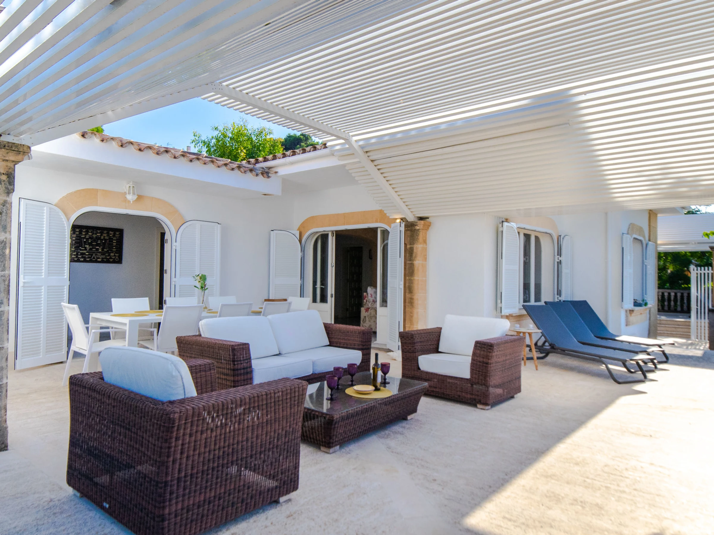 "Can Ramis", 7-room villa 170 m2. Object suitable for 10 adults. Spacious and bright, comfortable and cosy furnishings: small entrance hall. Large living/dining room with panoramic window, window onto the living room, window onto the courtyard with international TV channels, flat screen, air conditioning and forced-air heating. Exit to the patio. 1 large double bedroom, window onto the courtyard with 1 double bed (150 cm, length 200 cm), bath/bidet/WC, air conditioning and forced-air heating. 1 large double bedroom with 1 double bed (150 cm, length 200 cm), air conditioning and forced-air heating. 1 double bedroom with 2 beds (90 cm, length 200 cm), air conditioning and forced-air heating. 1 large double bedroom with 2 beds (90 cm, length 200 cm), air conditioning and forced-air heating. 1 large double bedroom with 2 beds (90 cm, length 200 cm). Kitchen (oven, dishwasher, 3 ceramic glass hob hotplates, microwave, freezer). 2 Baths/showers/WC. Large patio, large porch. Terrace furniture, barbecue, deck chairs (8), covered balcony, sitting area. Marvellous panoramic view of the sea, the mountains, the garden, the countryside, the resort, the port and the bay. Facilities: washing machine, iron, children's high chair, baby cot for up to 2 year olds, hair dryer. Internet (WiFi, free). Suitable for families. [hidden]