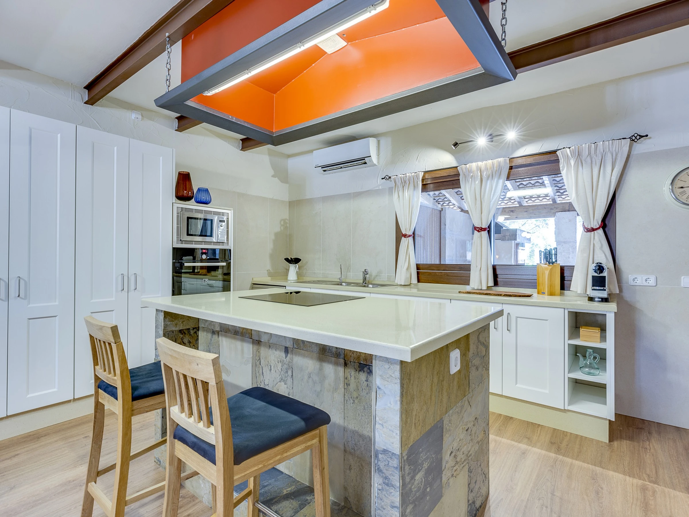 The accommodation is equipped with the following items: garden, garden furniture, fenced garden, terrace, barbecue, fireplace, iron, internet (Wi-Fi), hair dryer, childrens area, air conditioning (hot/cold), air-conditioned, private swimming pool, open-air parking in the same building, 1 TV, tv satellite (Languages: Spanish, English, German), stereo.
