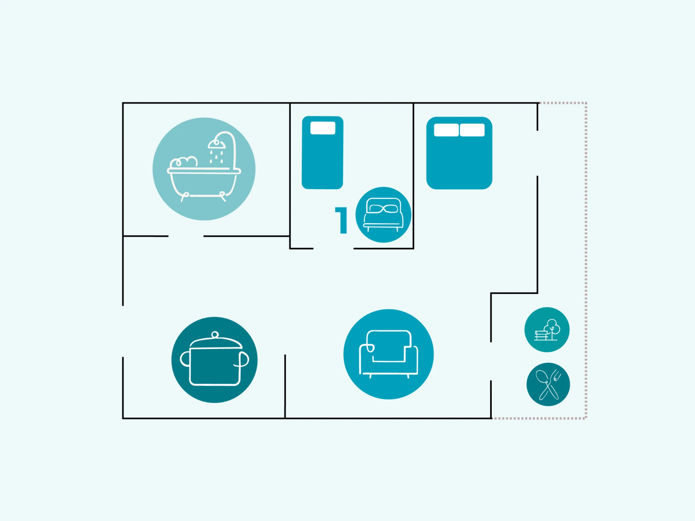 Capacity and distribution (up to 4 people):