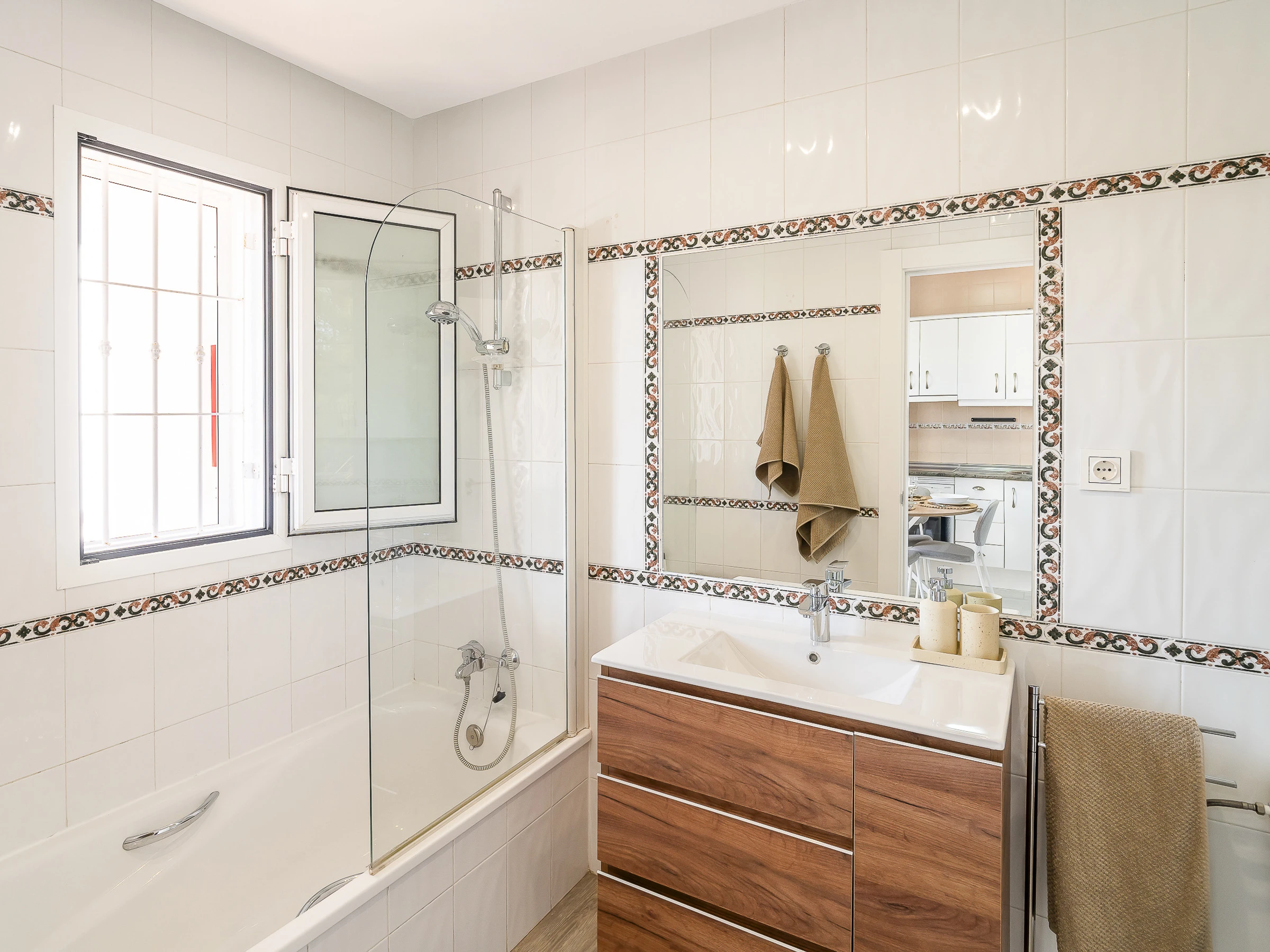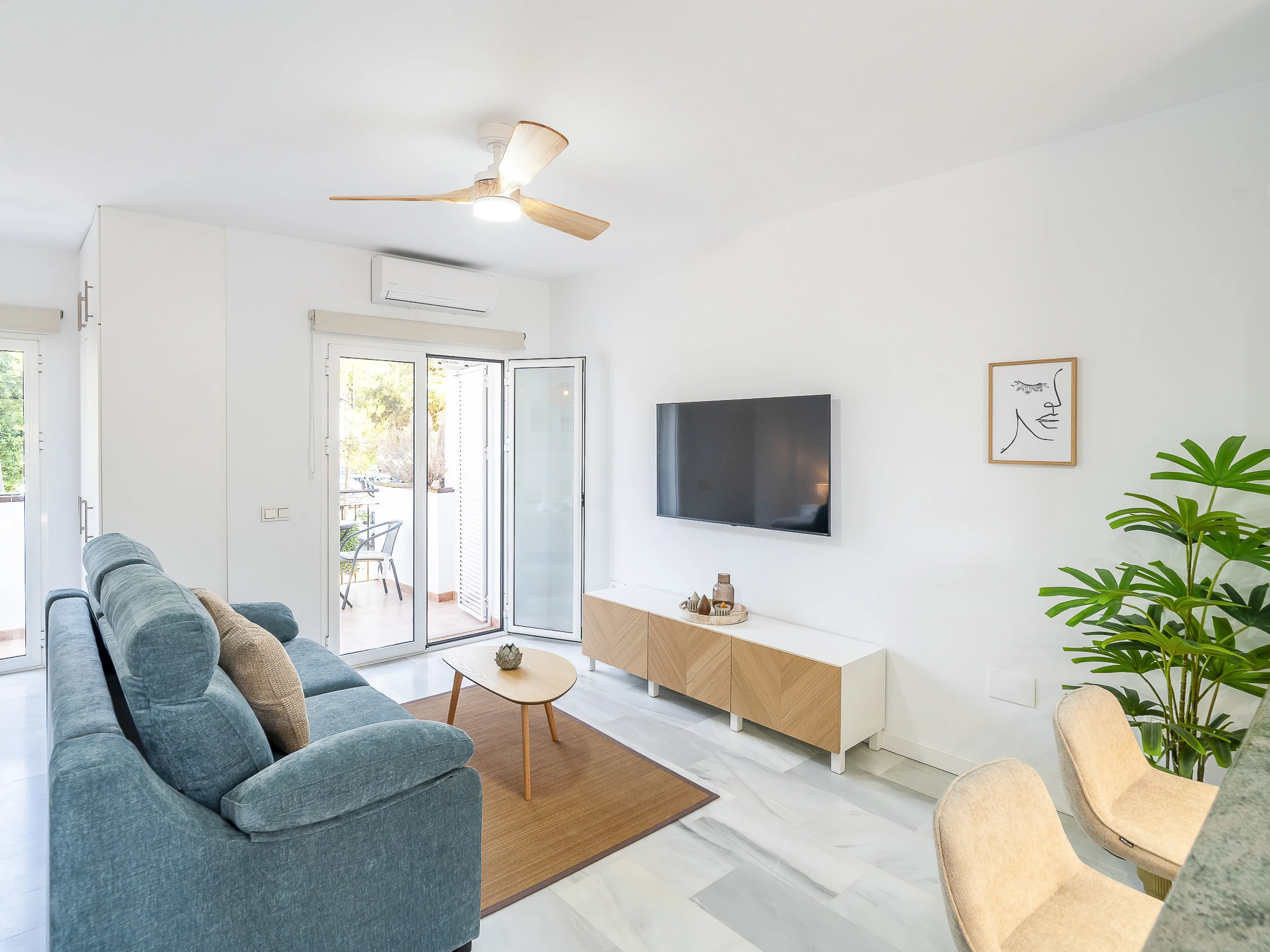 Moreover, you will have a dryer, iron, hairdryer, 2 fans and TV. The urbanisation is pleasant for walks and very practical for those who come to play golf, do routes through the interior of Málaga or go down to the coast in a few minutes.