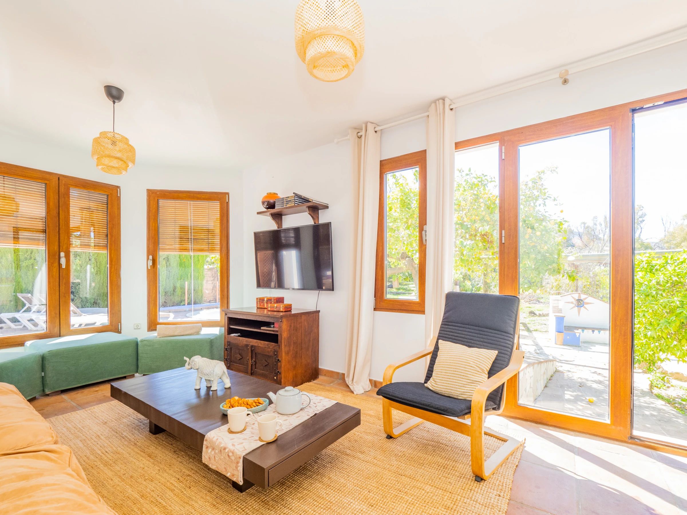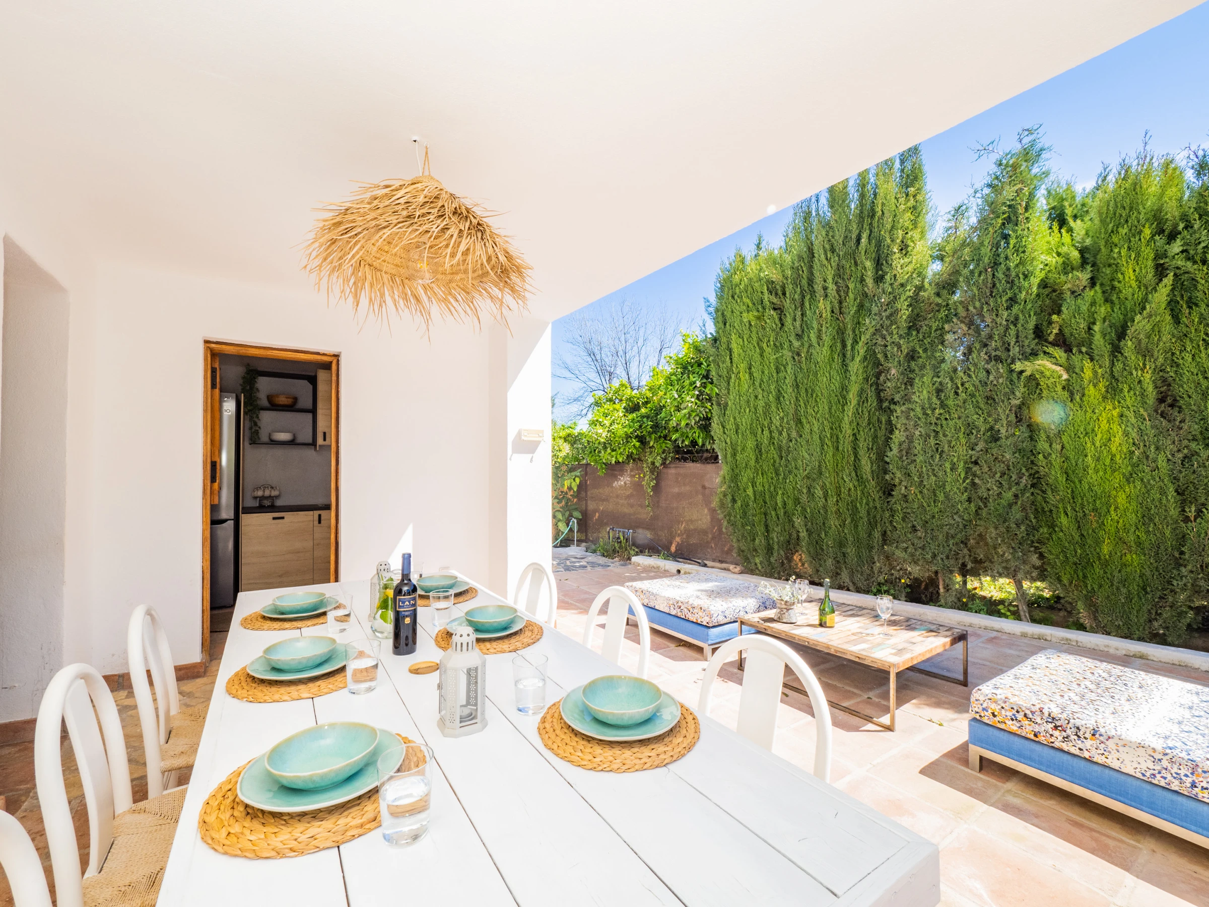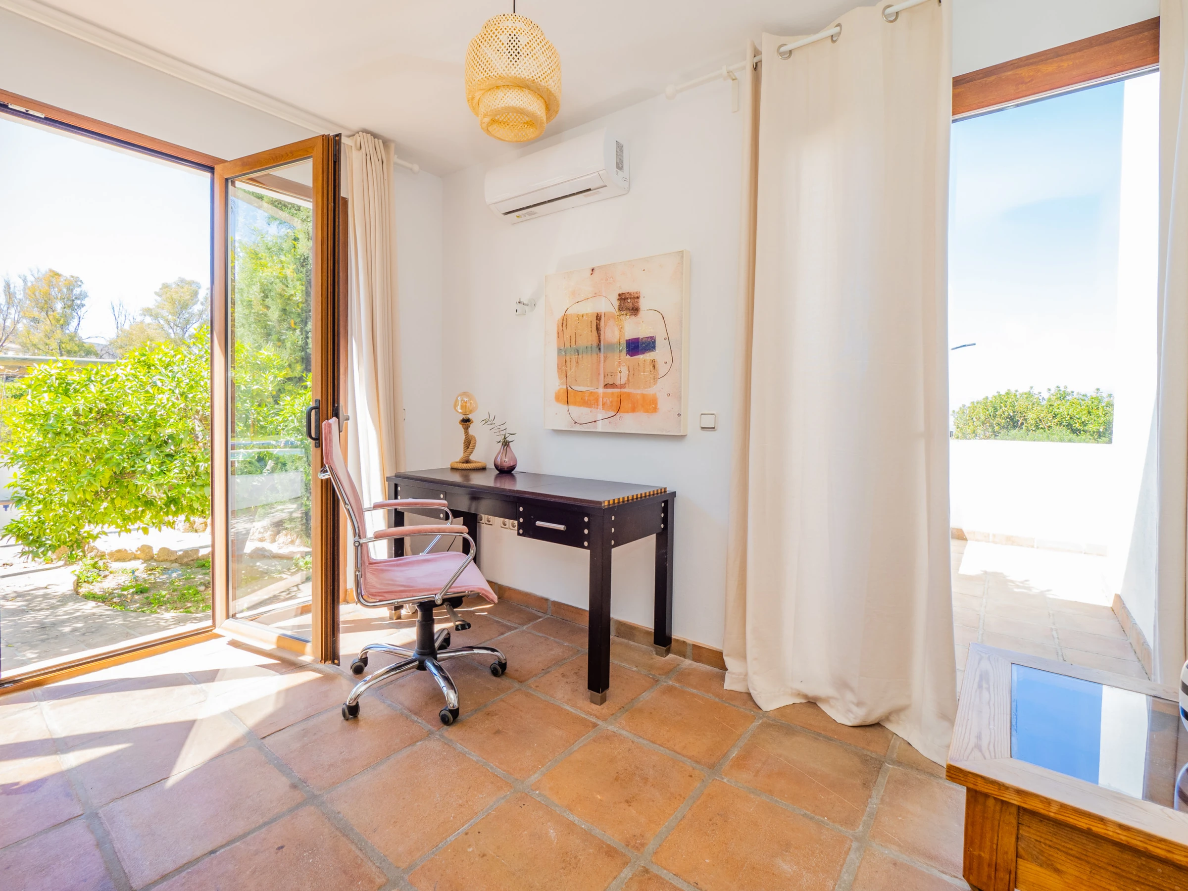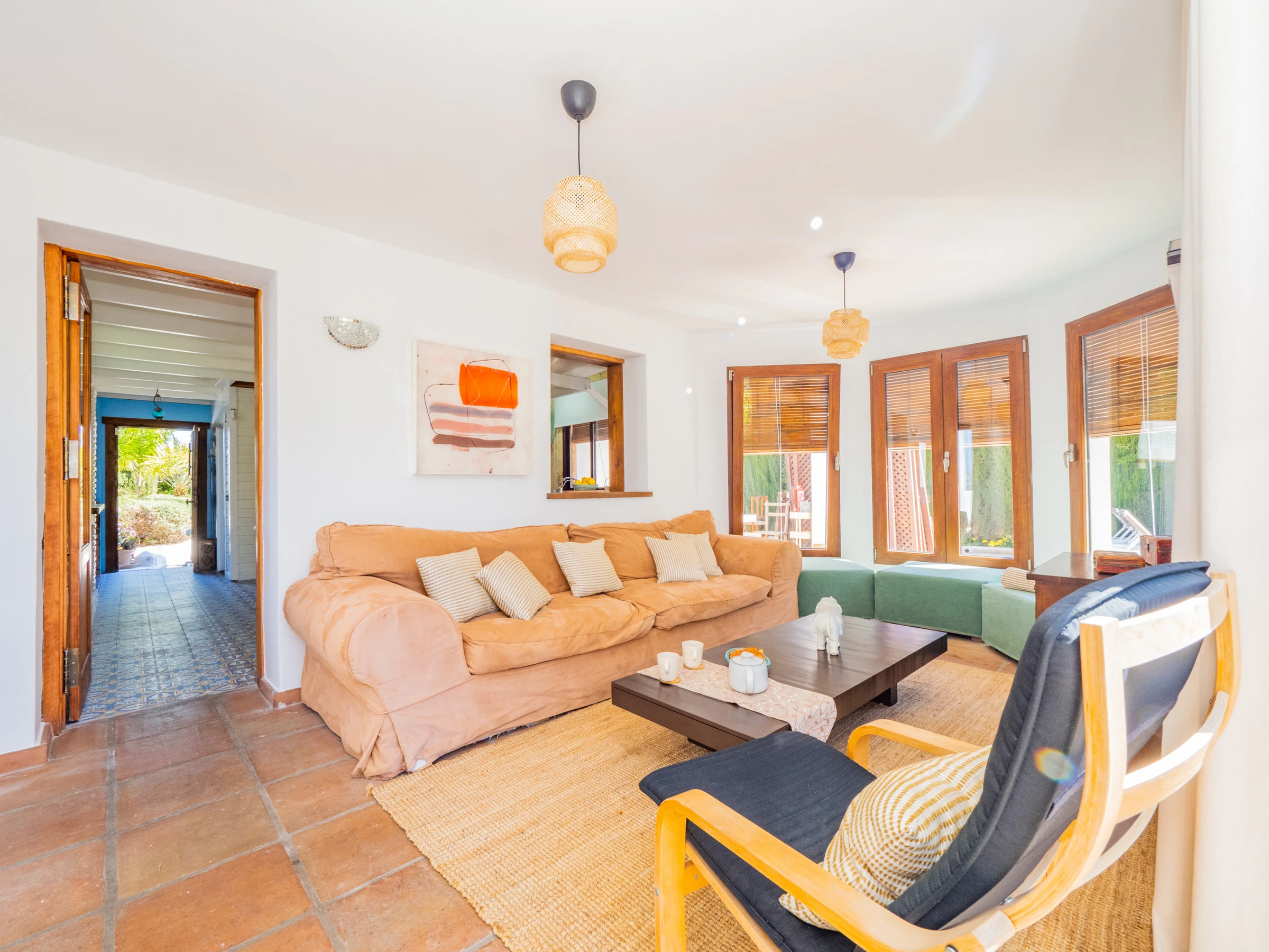 Inside the house, the ground floor houses a spacious fully equipped kitchen-diner, which connects to the bright living room with Smart TV and views of the garden and swimming pool. This space also includes a teleworking area for those who need to maintain concentration during their stay. On this floor, there is a bedroom with a double bed, wardrobes, and access to a private terrace, as well as a bathroom with a shower tray.