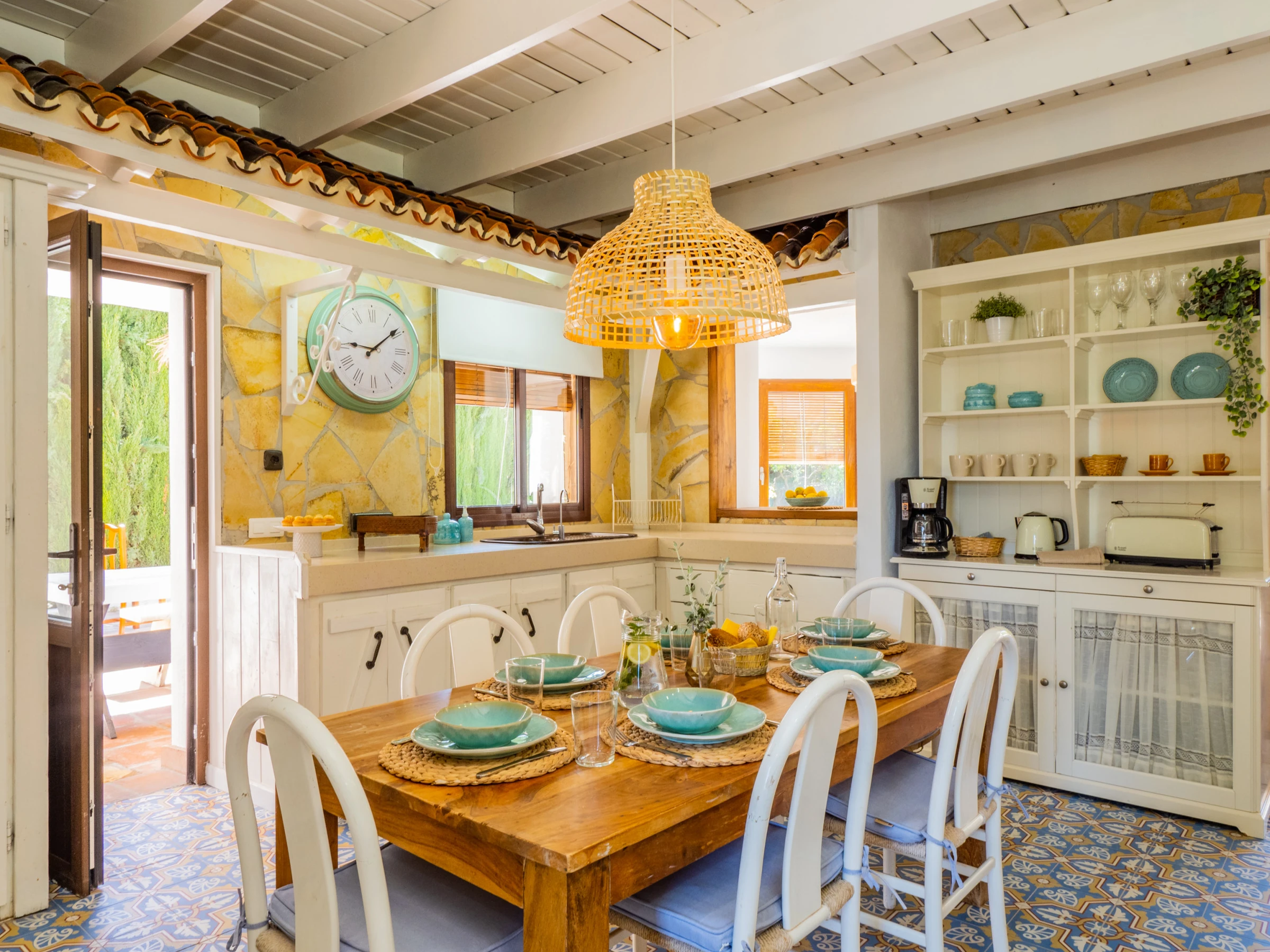 Outside, you will enjoy an elegant garden area with a swimming pool, barbecue and porch, ideal for sunny outdoor lunches while watching the little ones playing in the pool. Additionally, a small auxiliary kitchen facilitates meal organization and storage of utensils.