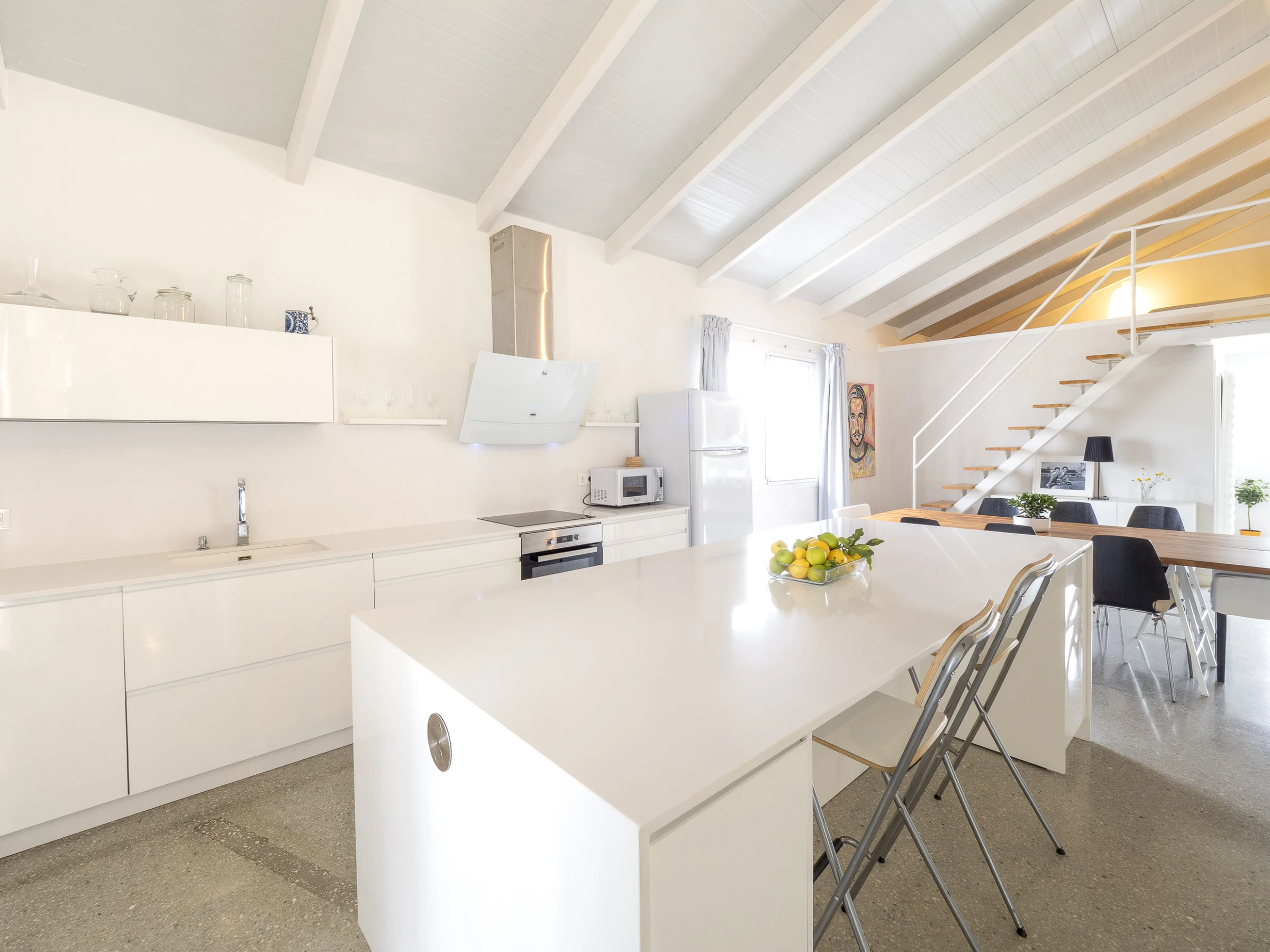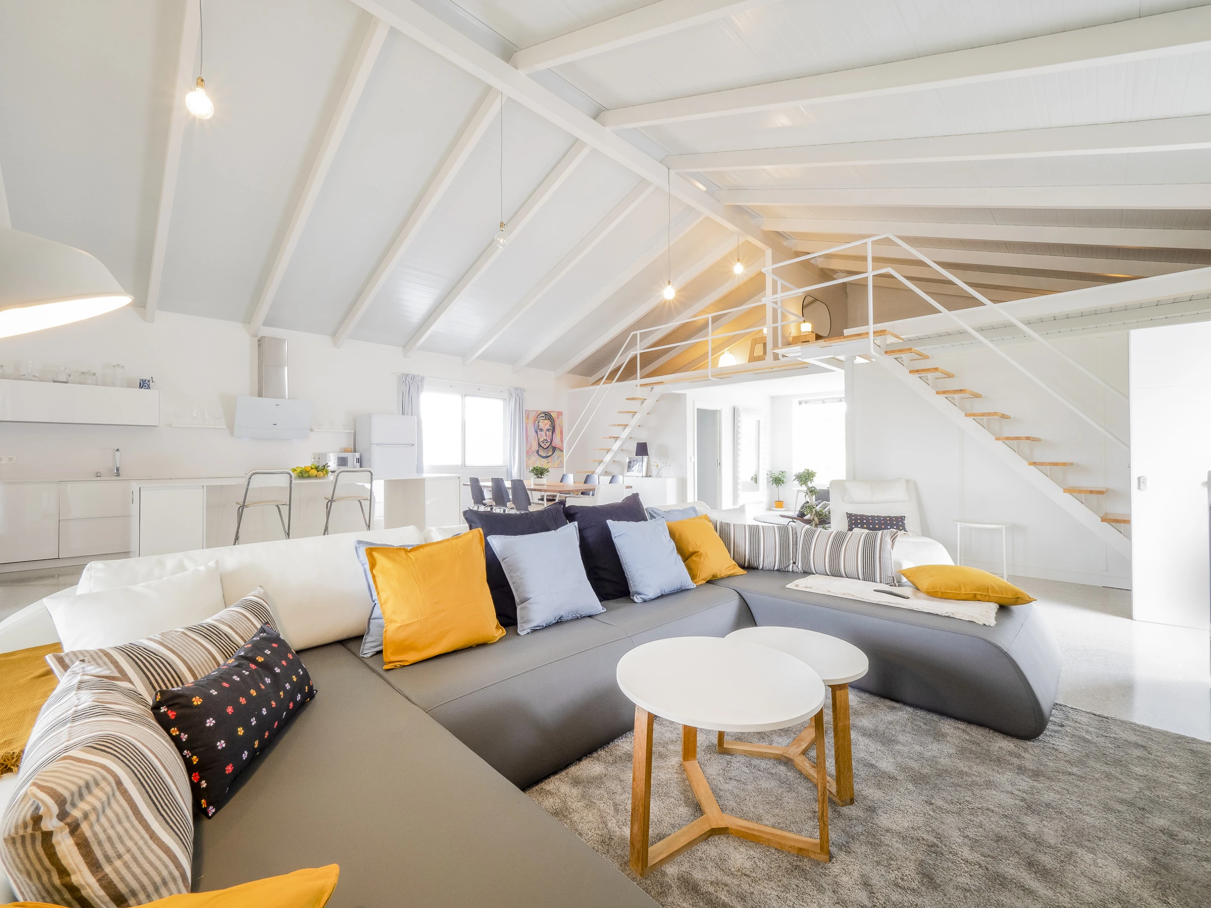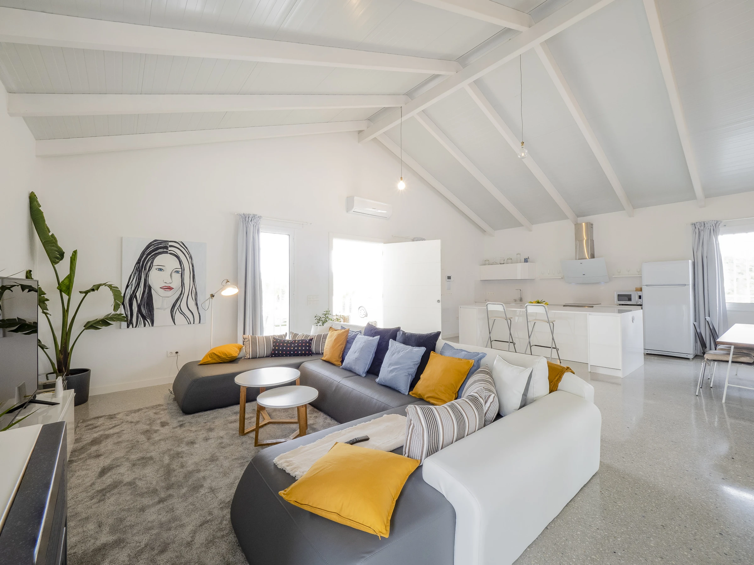 This modern and bright 170 m² loft combines carefully curated decor with all the amenities for unforgettable holidays. Located in a rural irrigation area in the Guadalhorce Valley, among avocado fields, it offers a peaceful and natural setting, less than half an hour by car from Málaga, Marbella, Fuengirola, Ronda and other cities in the province. Ideal for families or groups of friends, it features a living-dining room and an open-plan kitchen with a central island fully equipped with ceramic hob, fridge, microwave, oven, dishwasher and more. The main double bedroom is on the ground floor, while the mezzanines offer beds for 4 additional people. Additionally, it has a spacious bathroom with a double shower and an independent toilet.