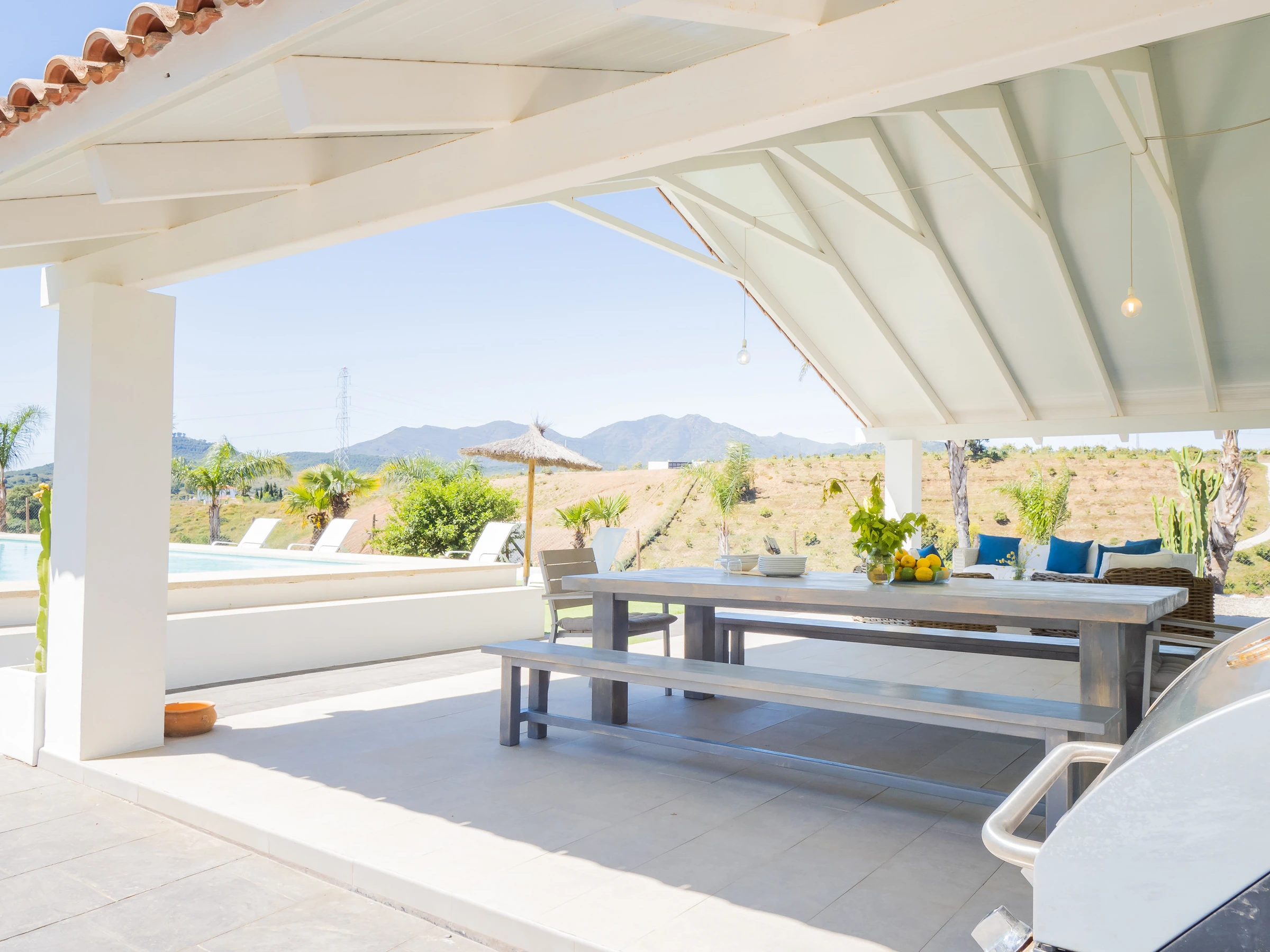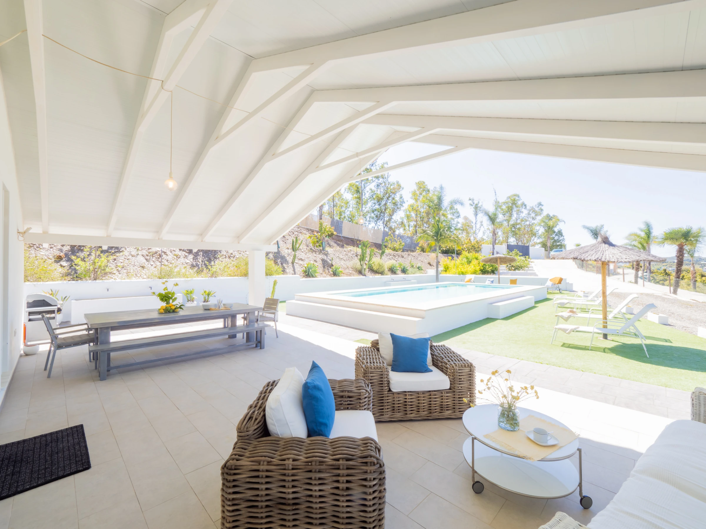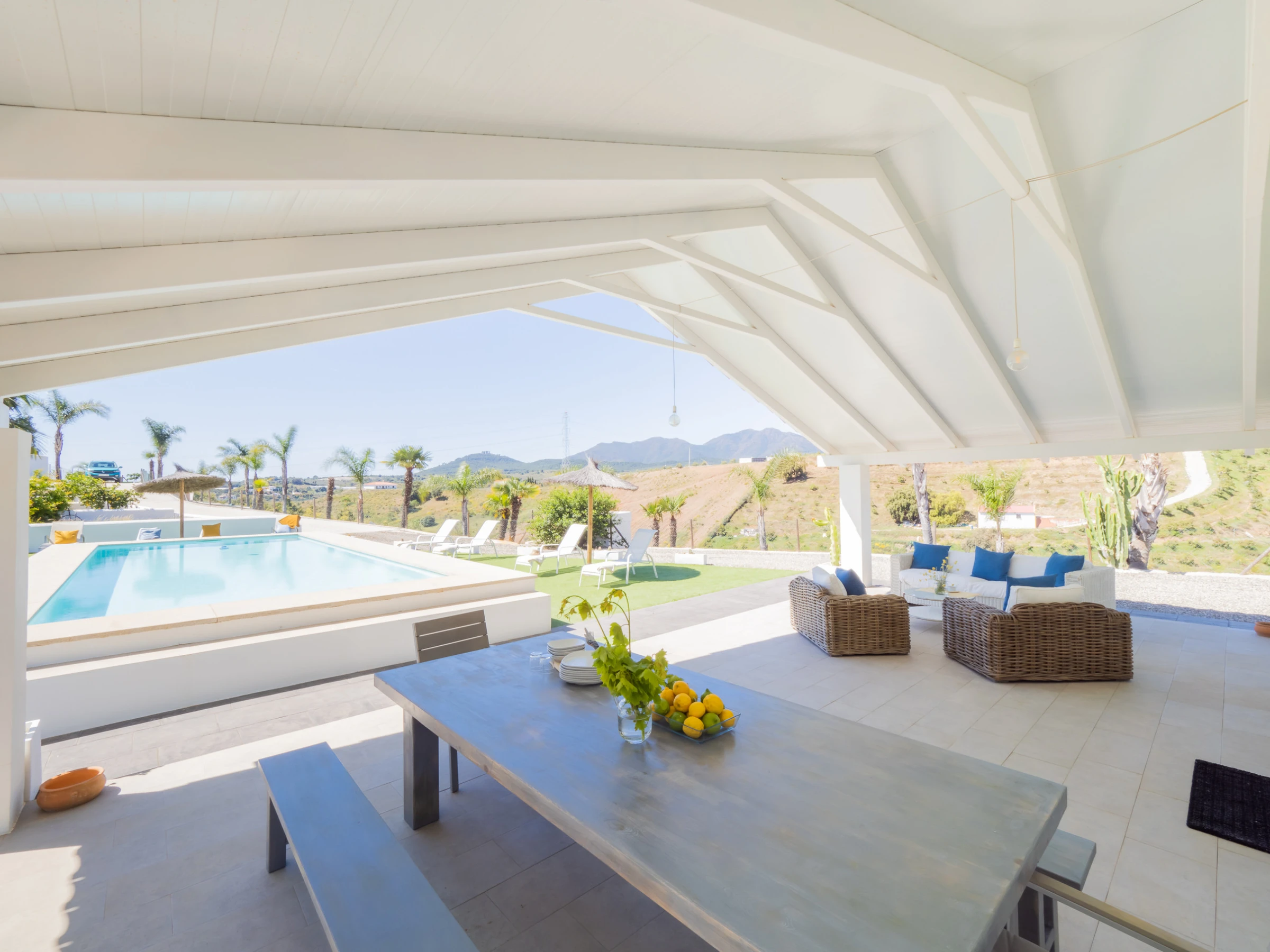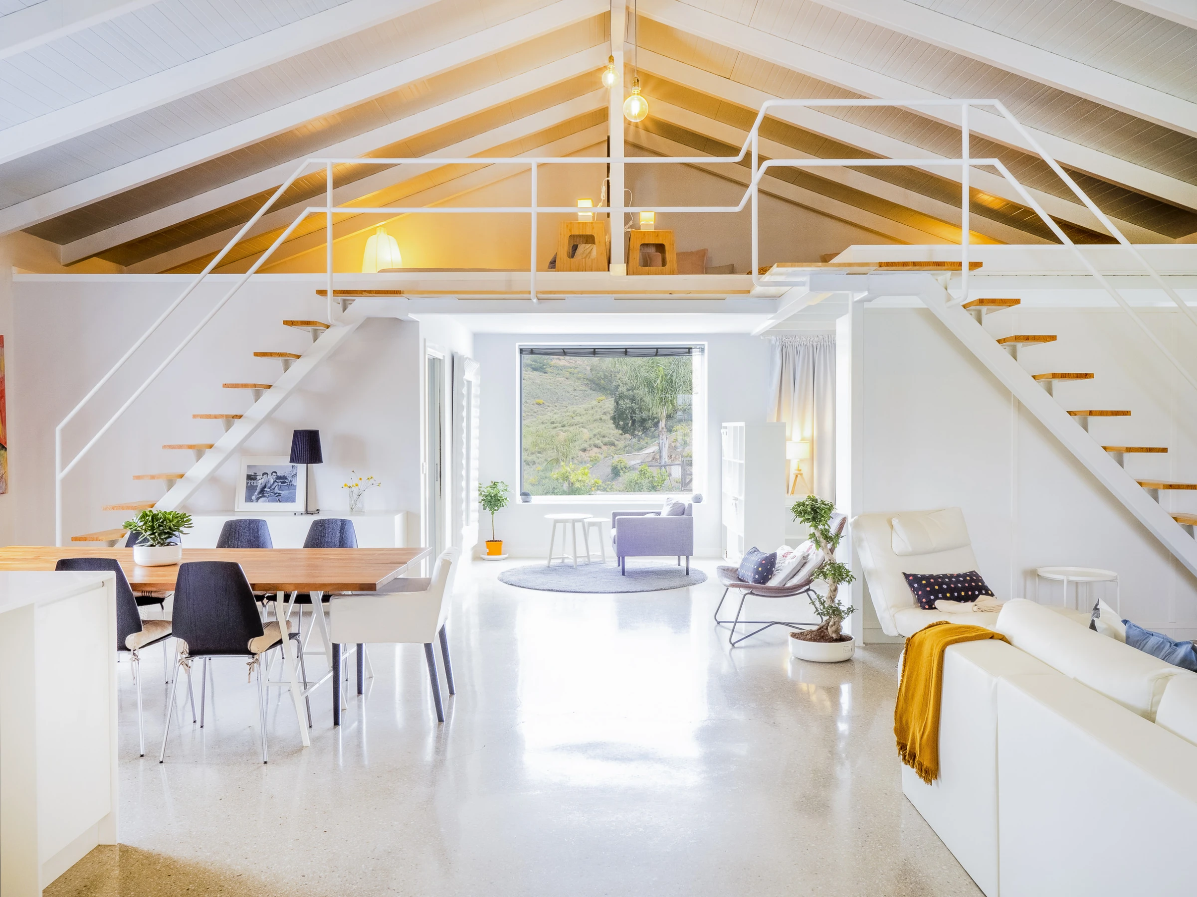 This modern and bright 170 m² loft combines carefully curated decor with all the amenities for unforgettable holidays. Located in a rural irrigation area in the Guadalhorce Valley, among avocado fields, it offers a peaceful and natural setting, less than half an hour by car from Málaga, Marbella, Fuengirola, Ronda and other cities in the province. Ideal for families or groups of friends, it features a living-dining room and an open-plan kitchen with a central island fully equipped with ceramic hob, fridge, microwave, oven, dishwasher and more. The main double bedroom is on the ground floor, while the mezzanines offer beds for 4 additional people. Additionally, it has a spacious bathroom with a double shower and an independent toilet.