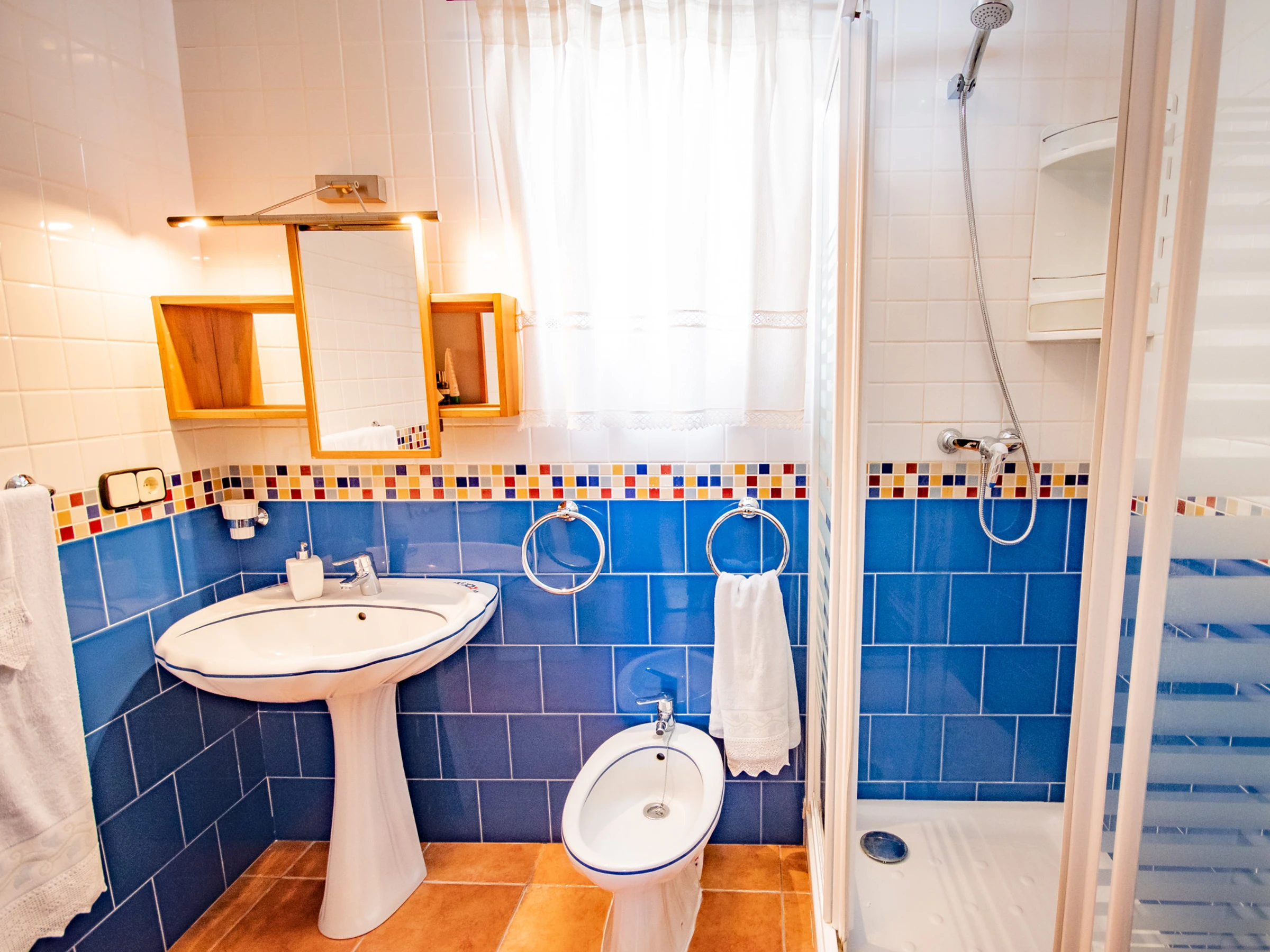 The distribution includes three rooms: two with double beds (one with a private bathroom with a bathtub) and a third with two single beds, ideal for families or groups. The kitchen, equipped with a ceramic hob and everything necessary, leads to a covered and built-in barbecue, perfect for enjoying outdoor lunches in company. At the end of your day, the comfortable living room with a fireplace invites you to relax and share special moments.