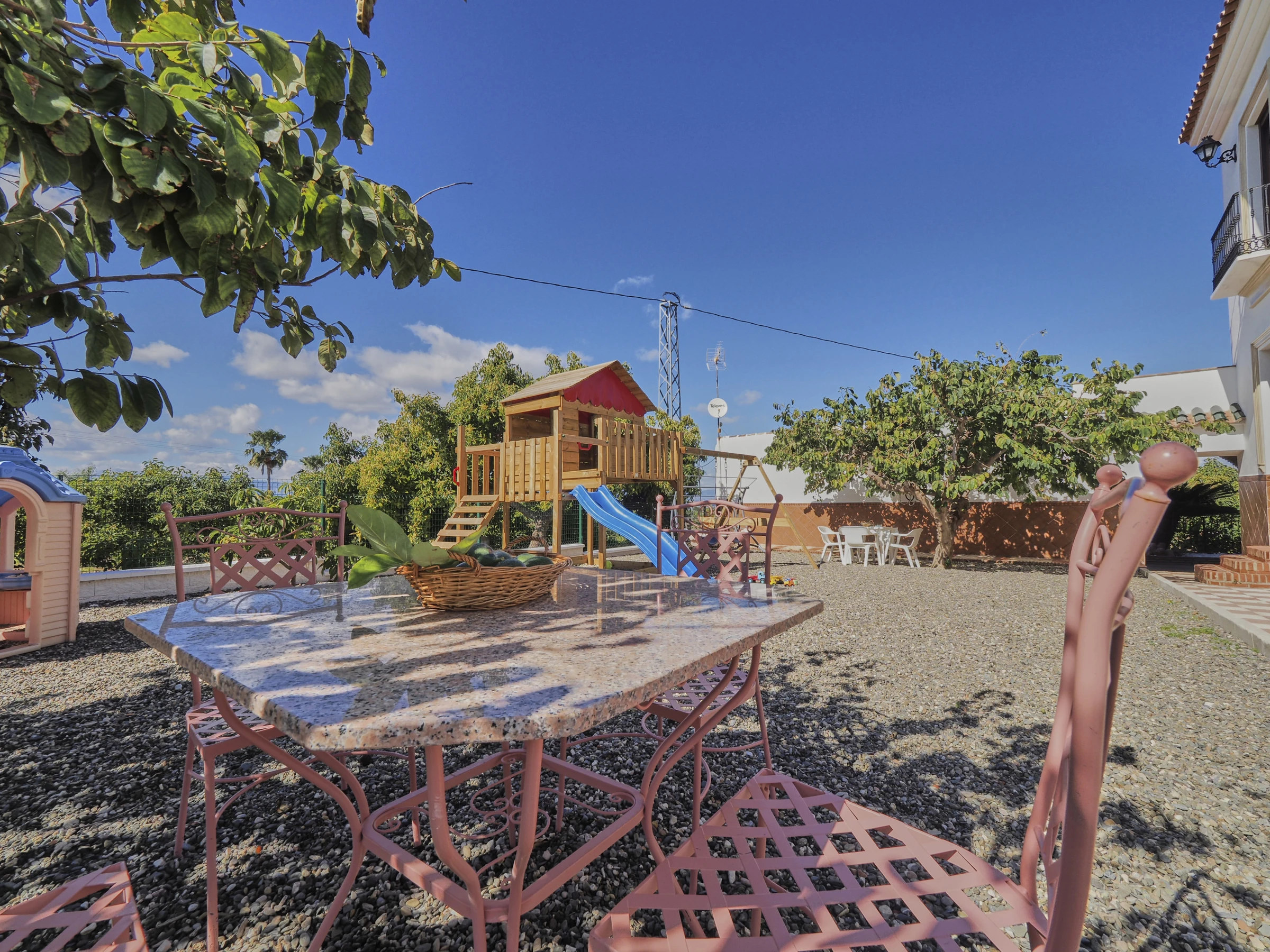 Villa Huerta de las Rosas is a luxury farmhouse with history dating back to 1890, completely renovated in 2021 to combine its rustic charm with modern amenities. Located on a private plot of 1,300 m², this holiday villa with a private pool offers an ideal space to disconnect and enjoy with family or friends. The property stands out for its sunny outdoor pool, surrounded by gardens, a pergola with a table for outdoor dining and a covered area with a barbecue and support kitchen for unforgettable moments. The little ones have their own independent children's park, ensuring fun for everyone. The private and landscaped access provides a welcome of tranquillity, privacy and elegance.