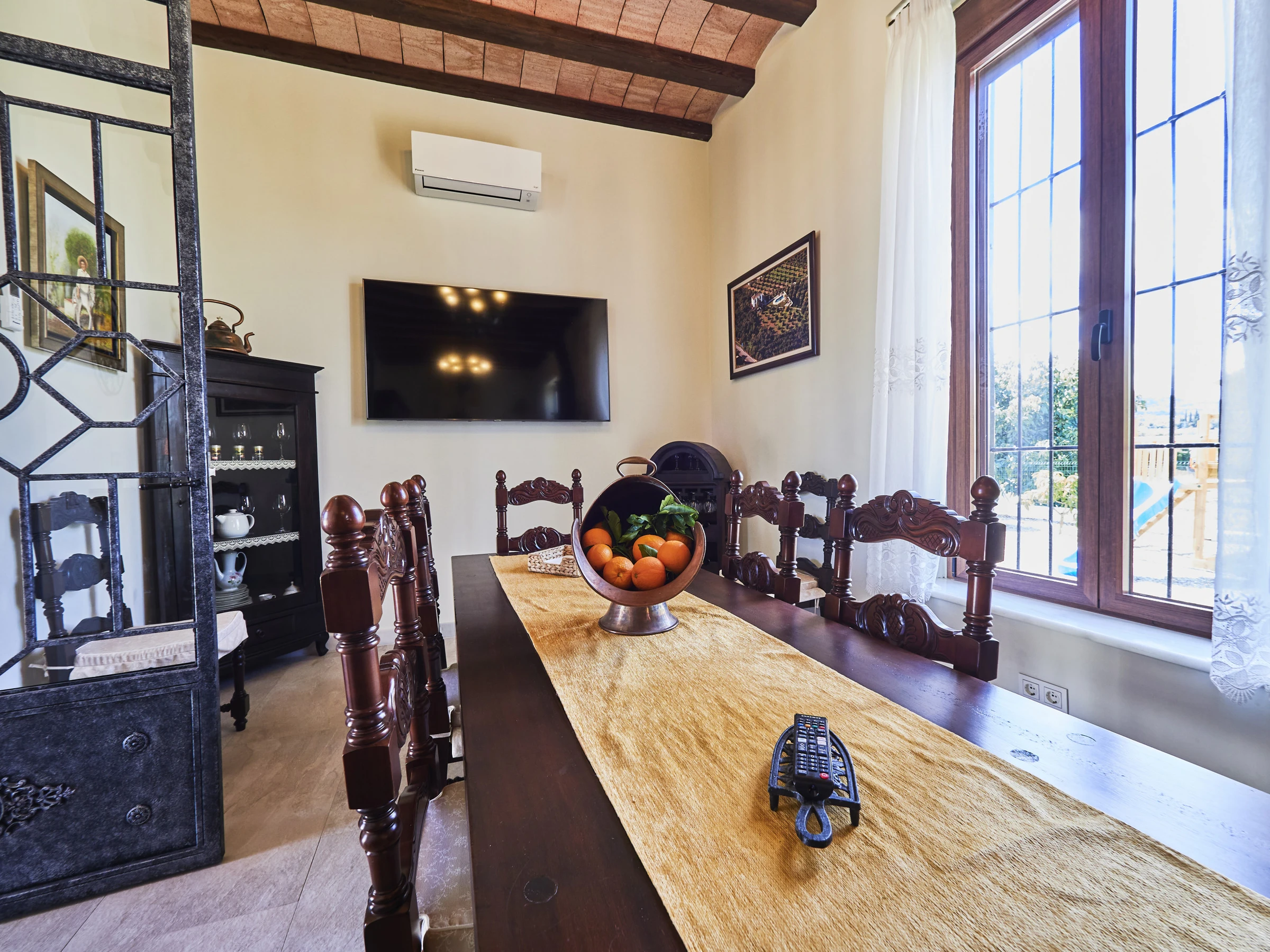 Inside, the villa is distributed over two floors. On the ground floor, you will find a reception area, a living room with a fireplace and Smart TV, an independent kitchen with dining area and a spacious full bathroom. On the upper floor, there are 5 bedrooms (3 with double beds and 2 with two single beds) and 2 bathrooms with shower, all air-conditioned and with double glazing for optimal thermal and acoustic insulation. Additionally, the villa offers free Wi-Fi throughout the accommodation and ample private parking, facilitating comfort and connectivity during your stay. It is located just 5 minutes by car from the centre of Alhaurín el Grande, allowing you to combine rural relaxation with proximity to services and activities.