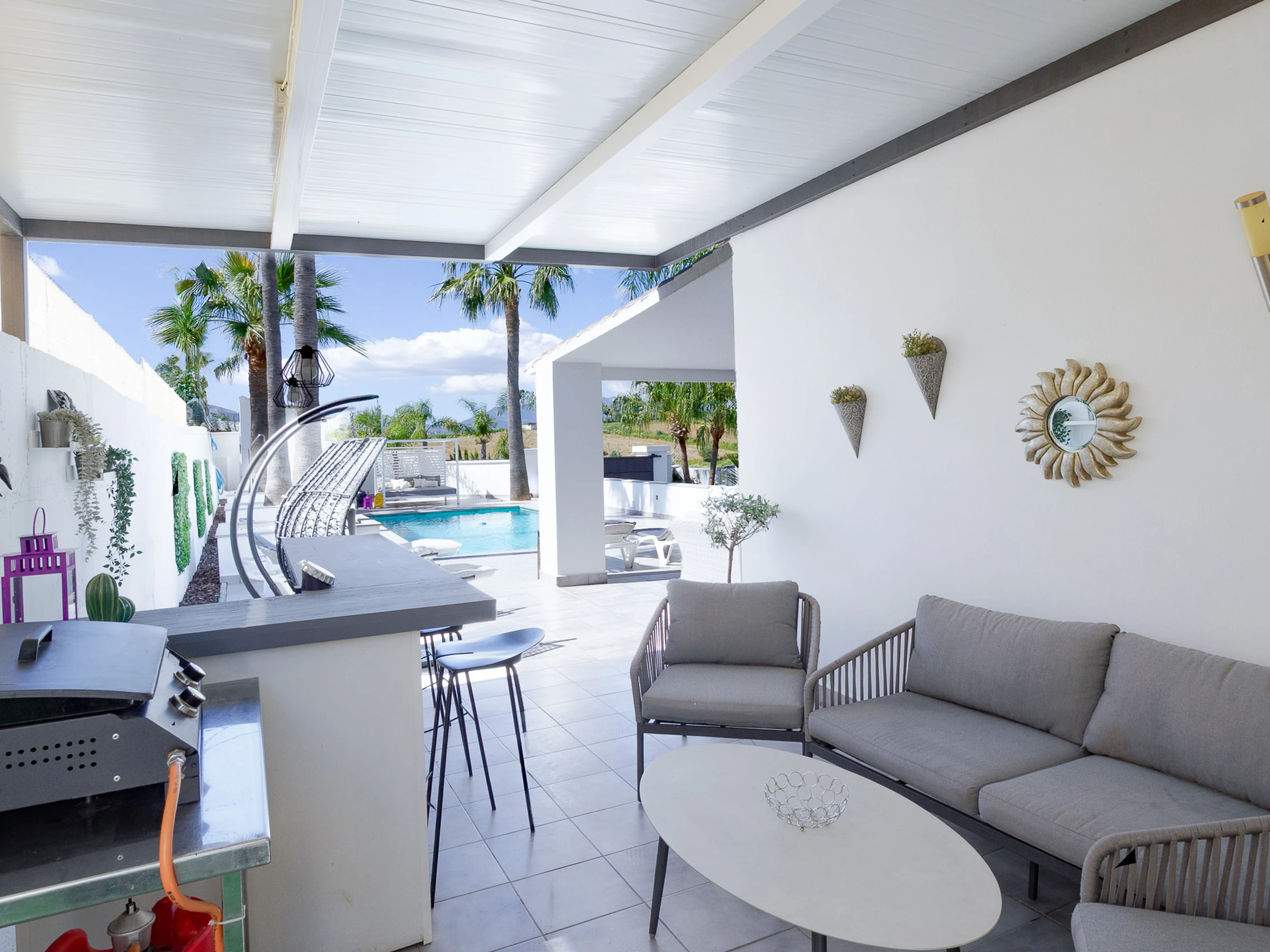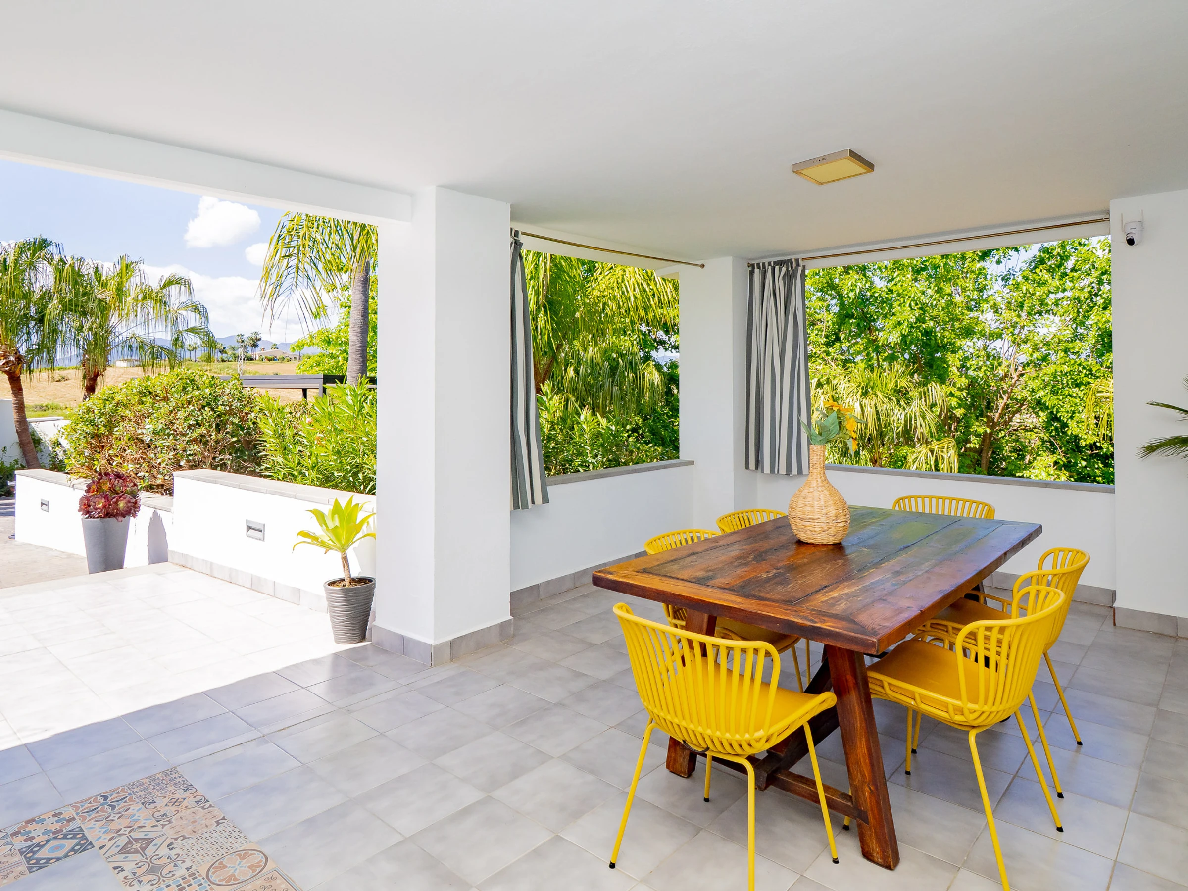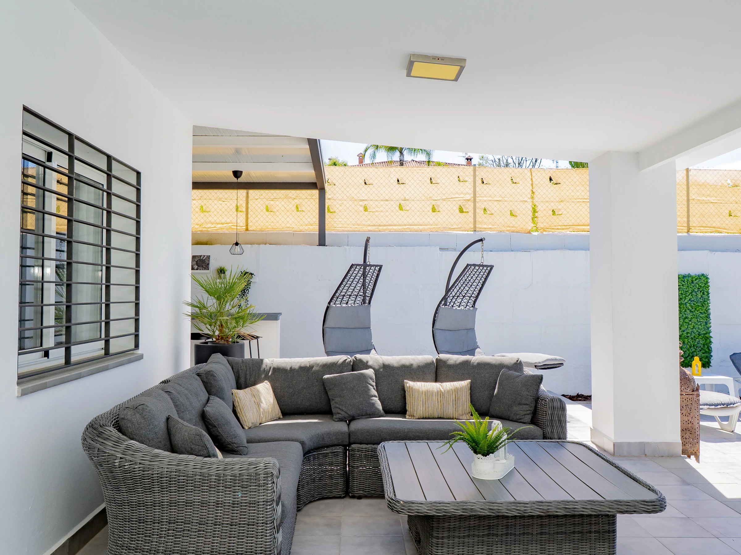 As soon as you arrive, you will comfortably park inside the fenced plot, and you will be received by a spacious outdoor area with a private pool, sun loungers and umbrellas to relax under the sun or the stars 🌌. The large covered porch offers two environments: an outdoor dining area with an elegant table and a cosy garden lounge, ideal for family chats or moments of relaxation ☕📖.