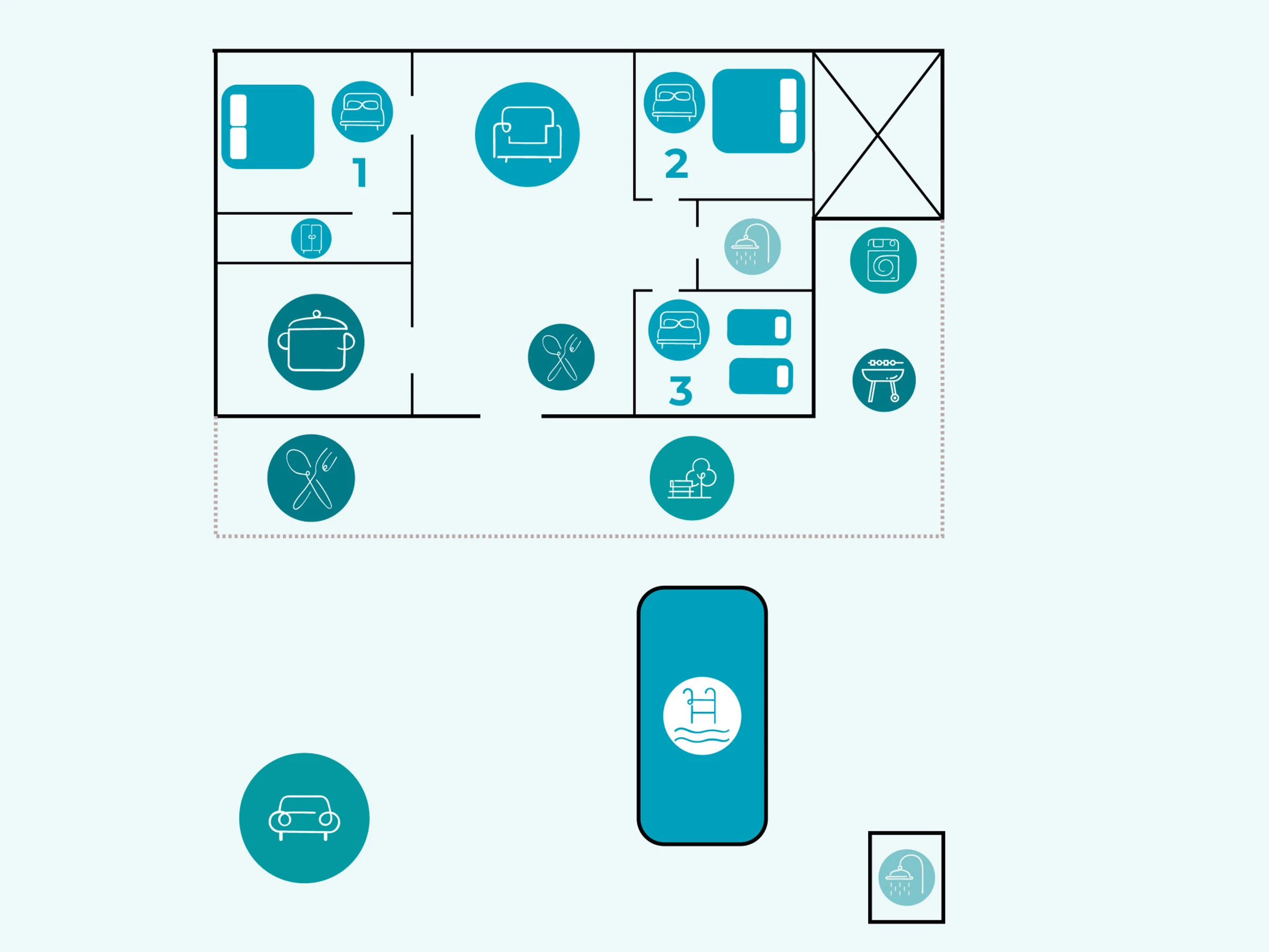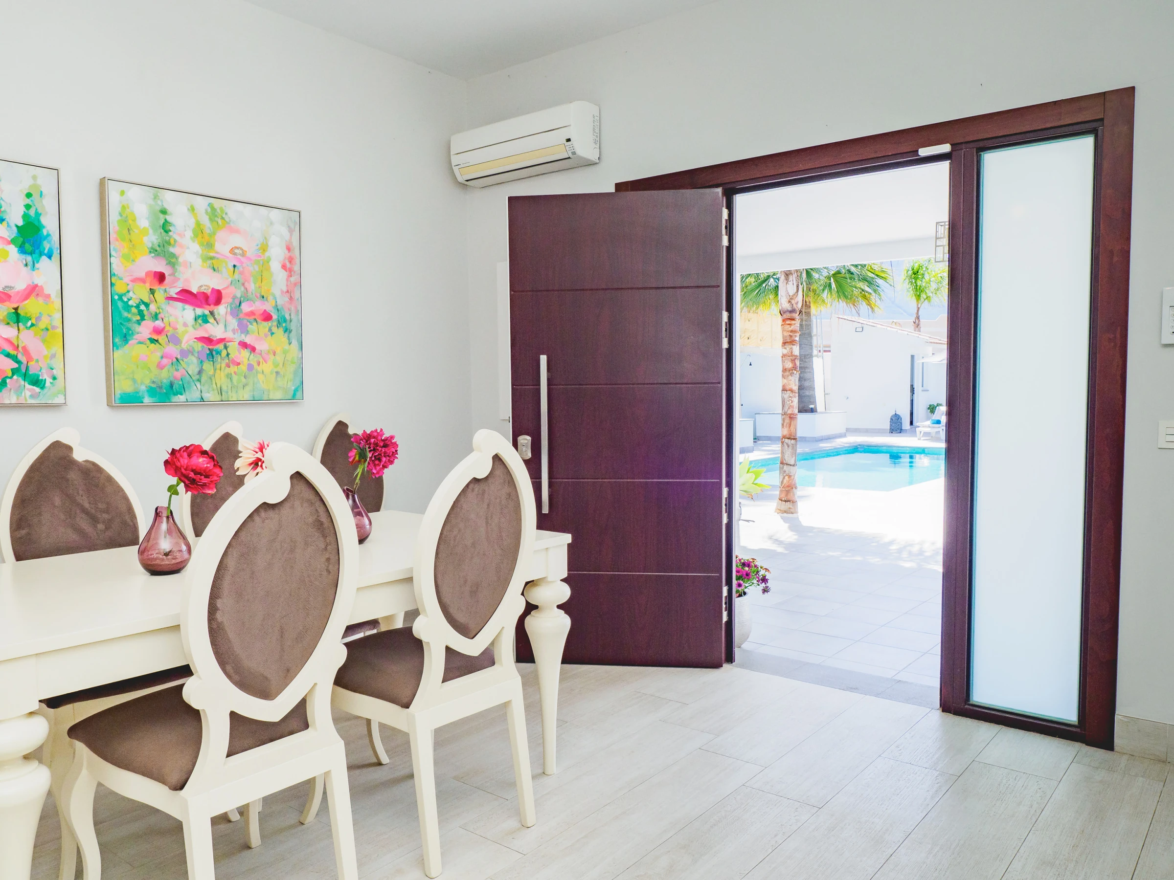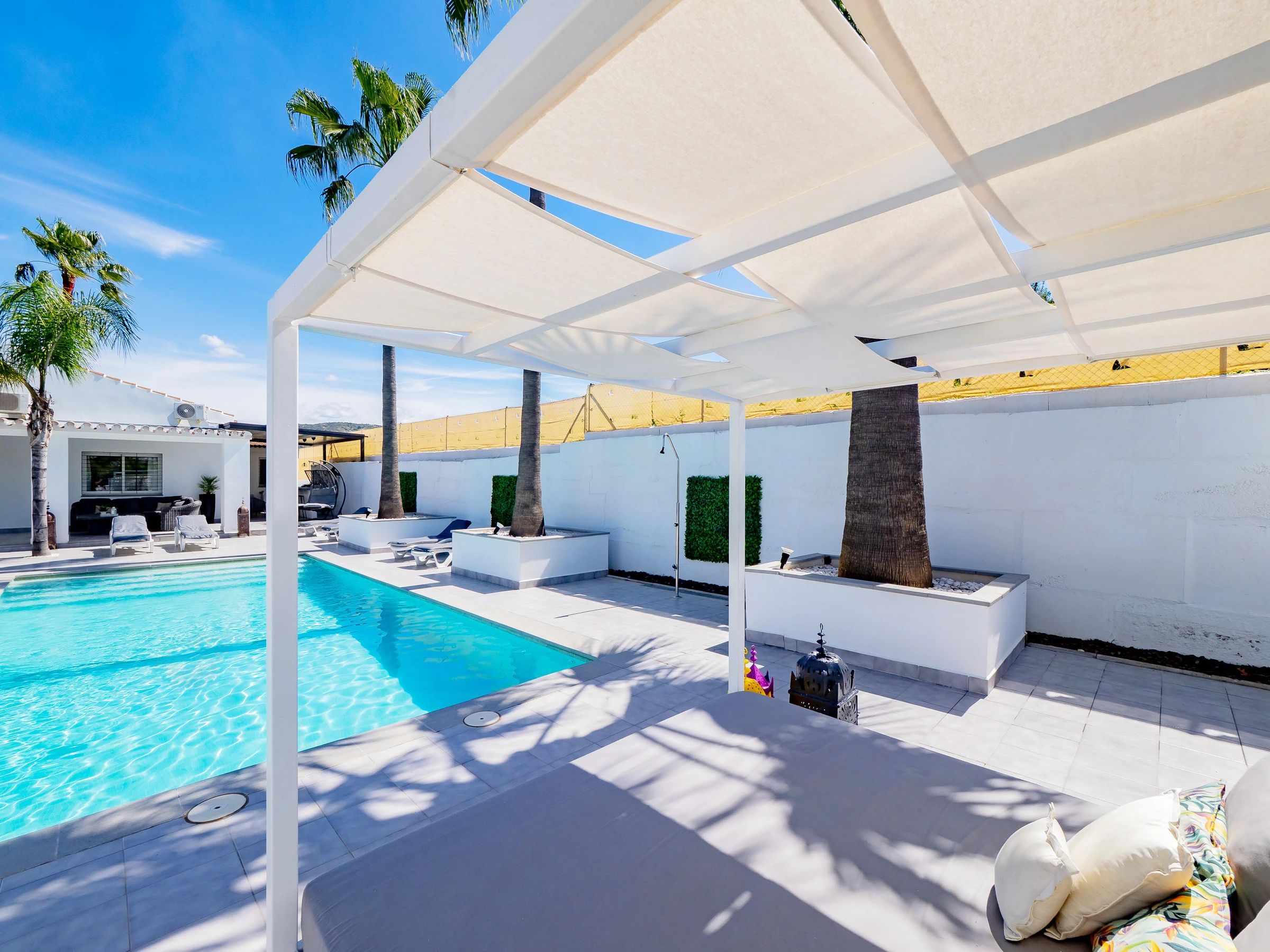 The house has three air-conditioned bedrooms, all with windows to the outside and storage space. The main bedroom has a private dressing room for greater comfort. In addition, it has two bathrooms with shower, one inside and another outside next to the pool 🚿. The included Wi-Fi connection will allow you to stay connected or share your favourite moments at any time 🌐.
