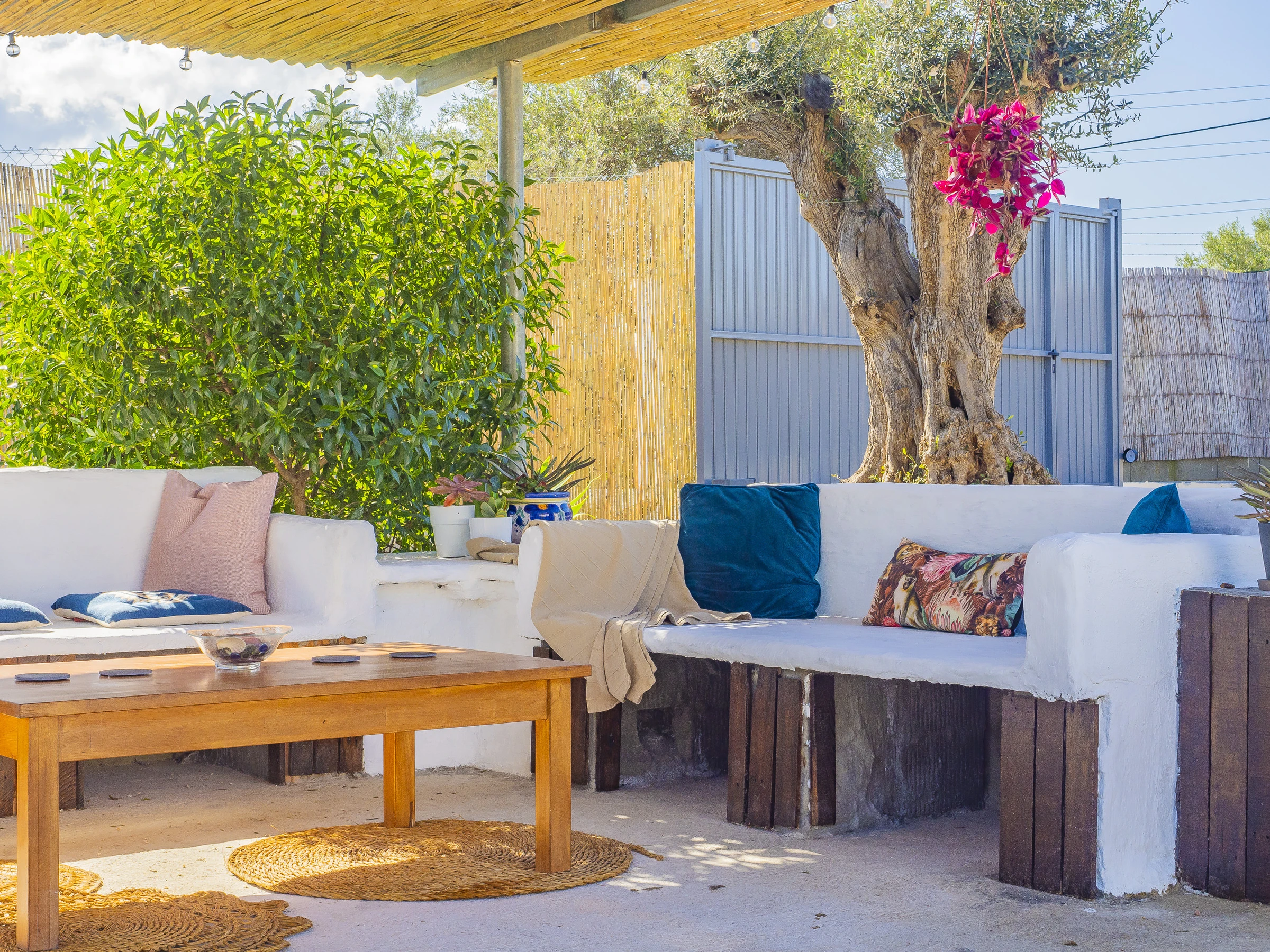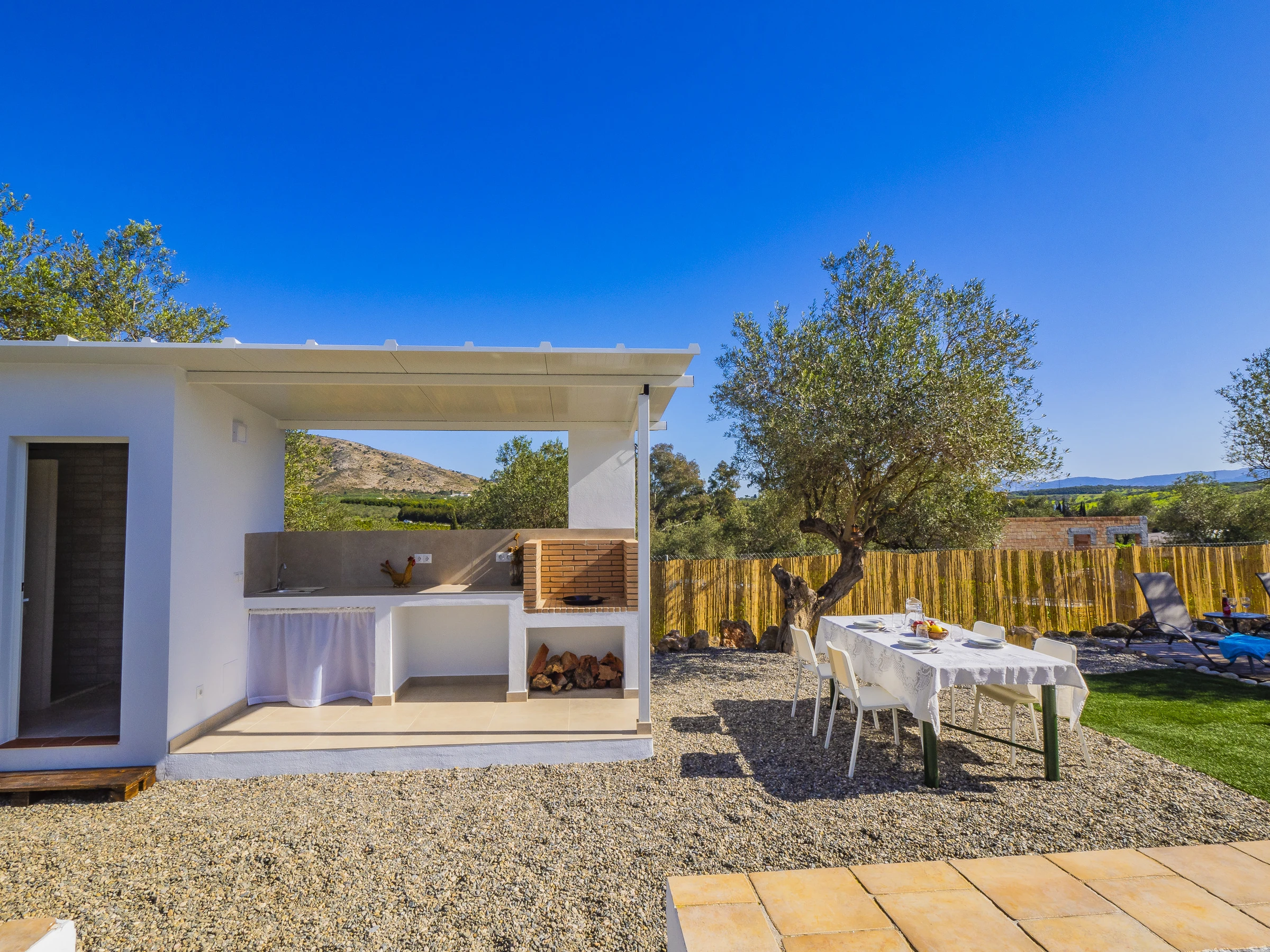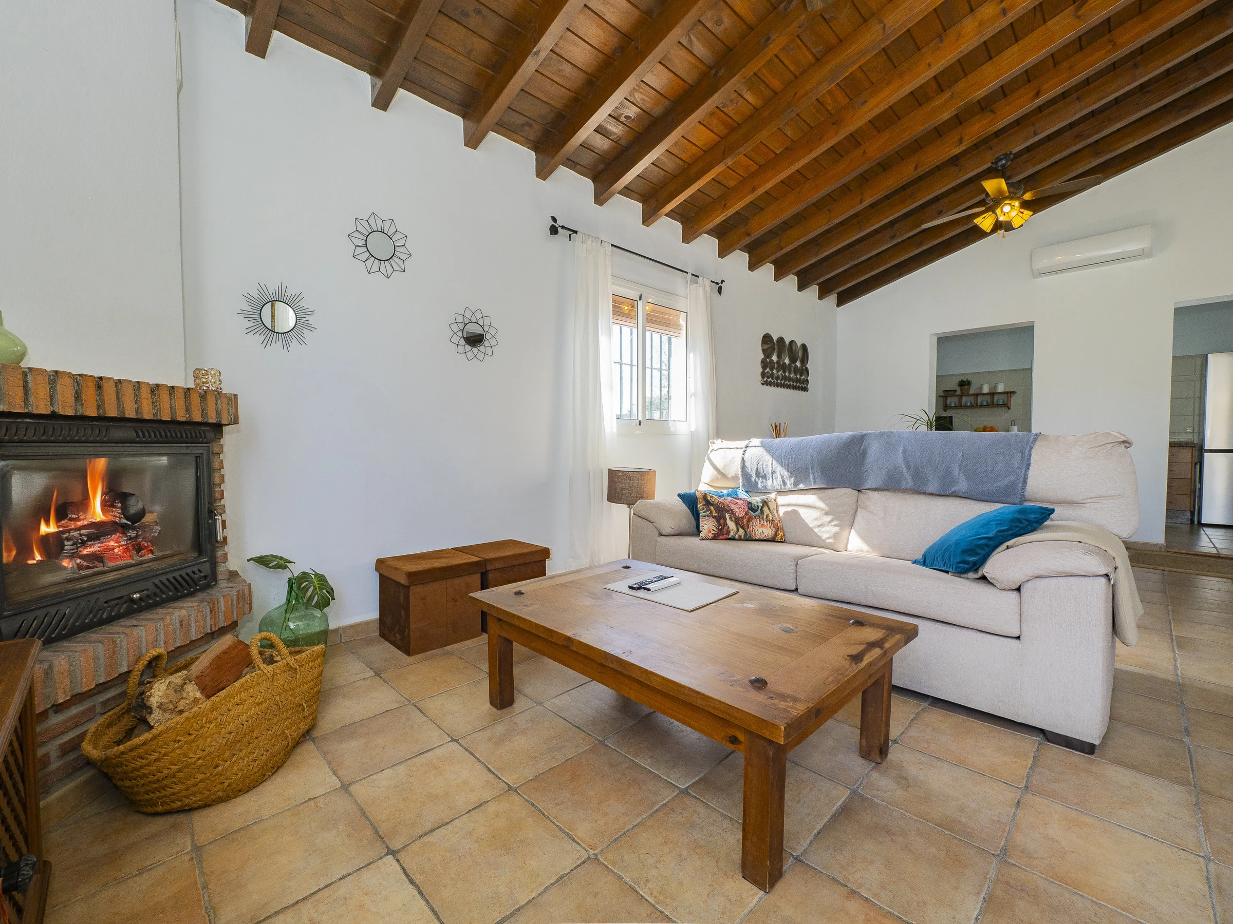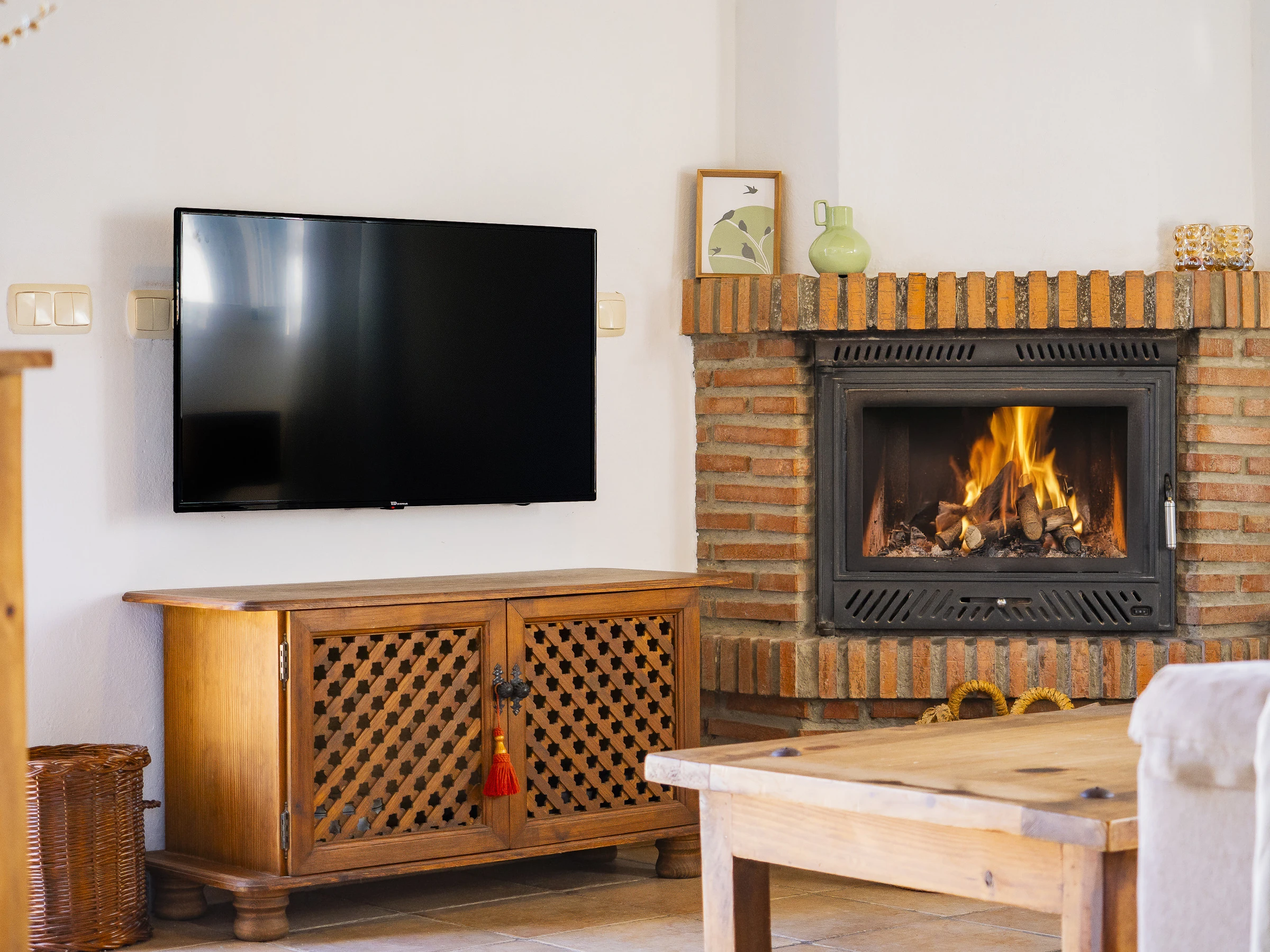 The living-dining room, spacious and functional, connects to an American kitchen fully equipped with modern appliances such as refrigerator, microwave, oven, and coffee maker, ideal for preparing delicious home-cooked meals. Cool nights become cosy thanks to a fireplace (firewood not included). The two bedrooms have air conditioning, built-in wardrobes and exterior views; one with a double bed and another with two single beds, adapting to family needs. The accommodation also has an interior bathroom with shower and an exterior bathroom next to the barbecue area for greater comfort.