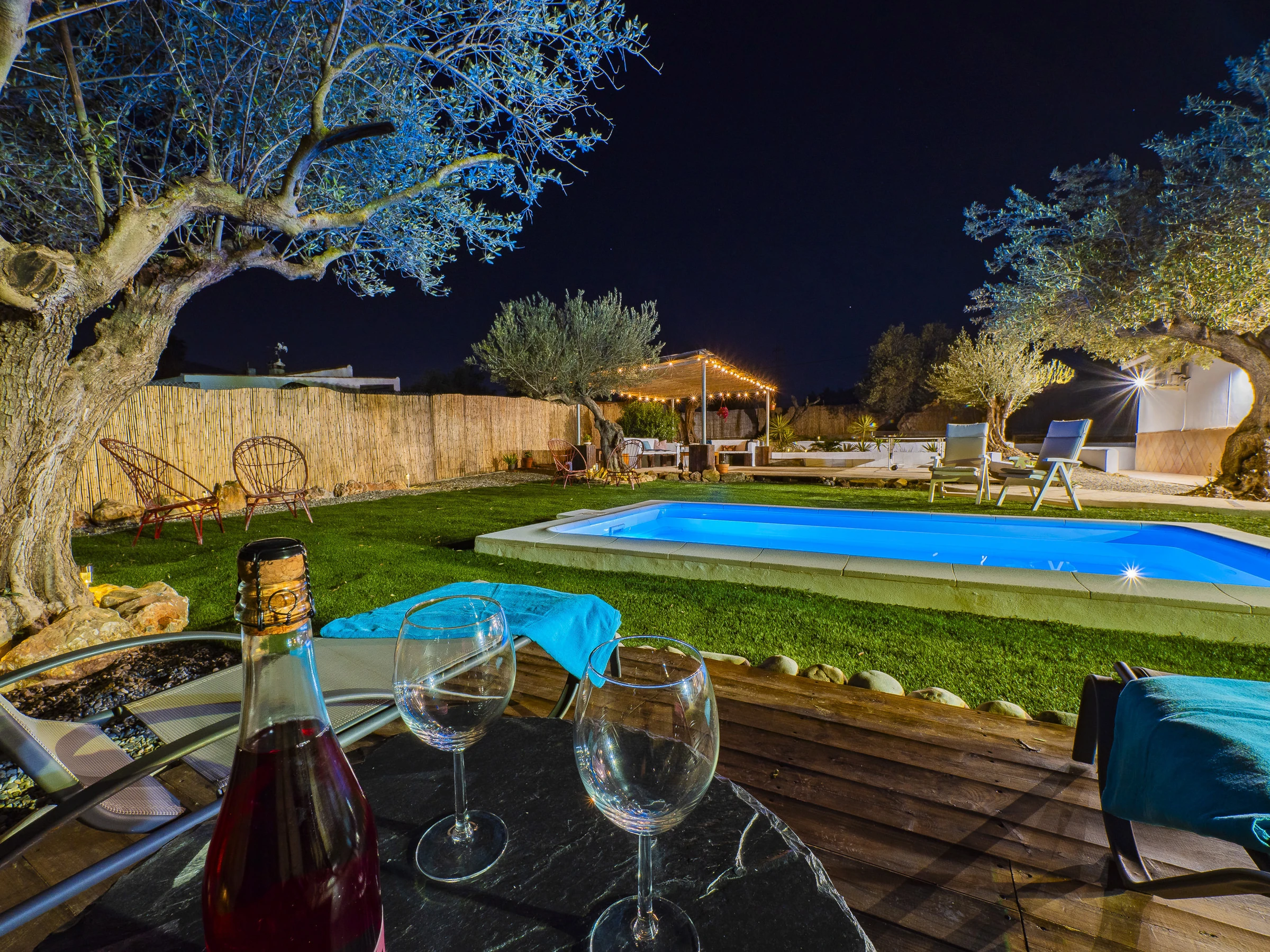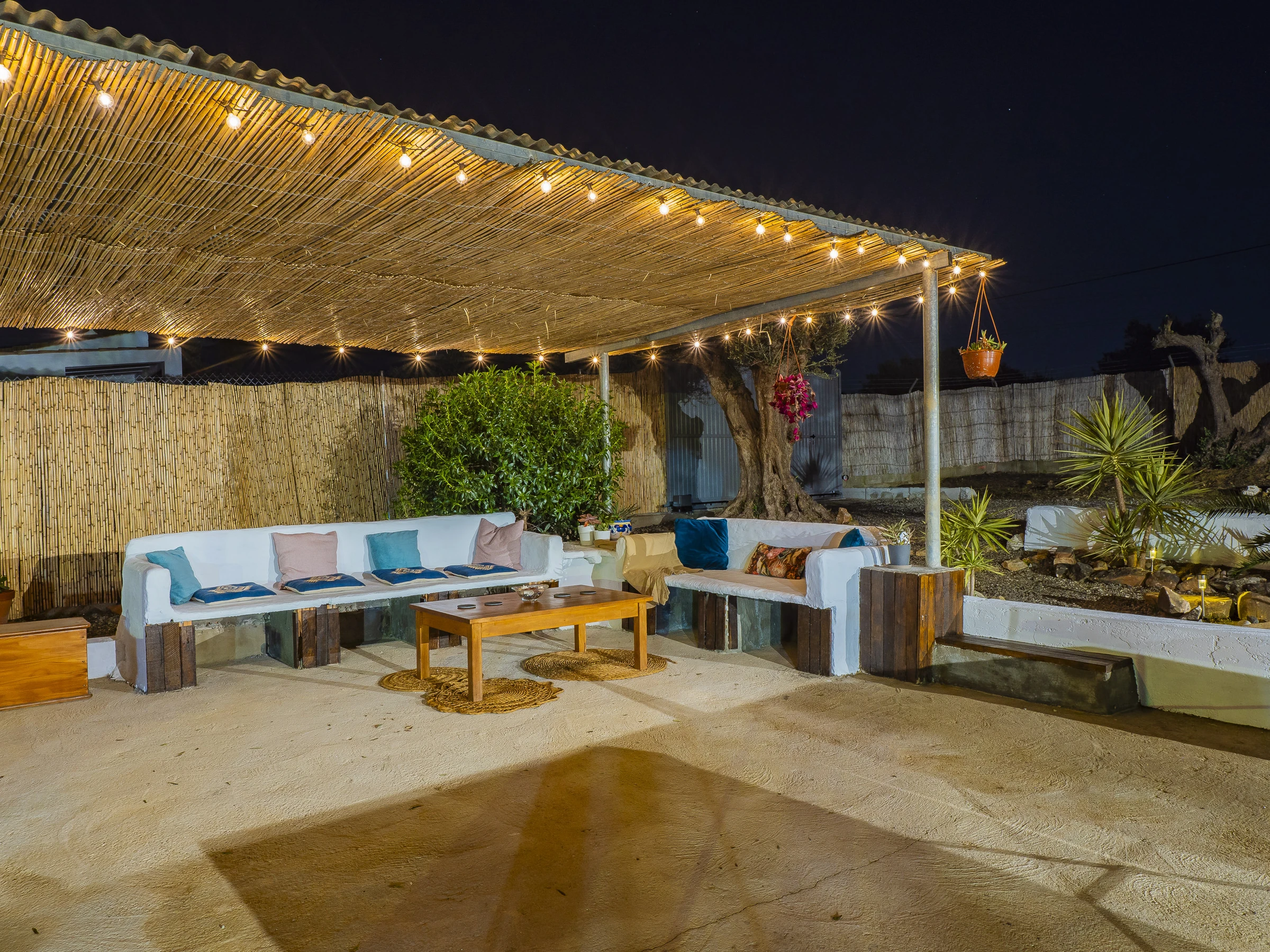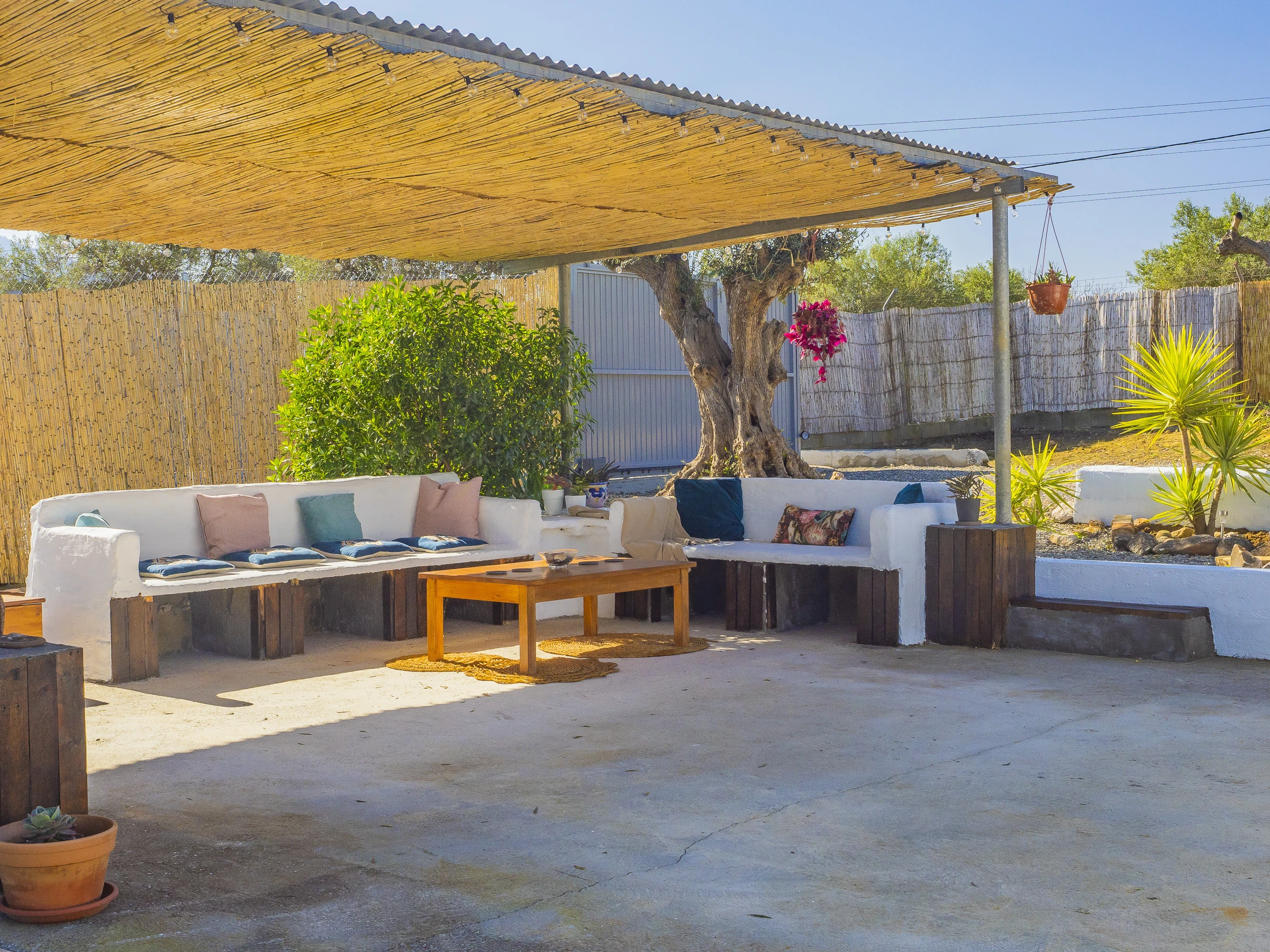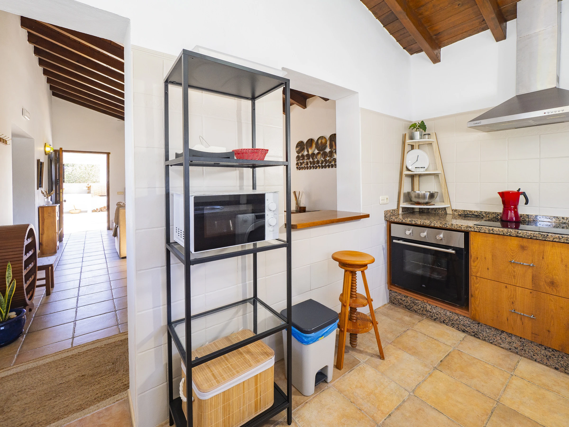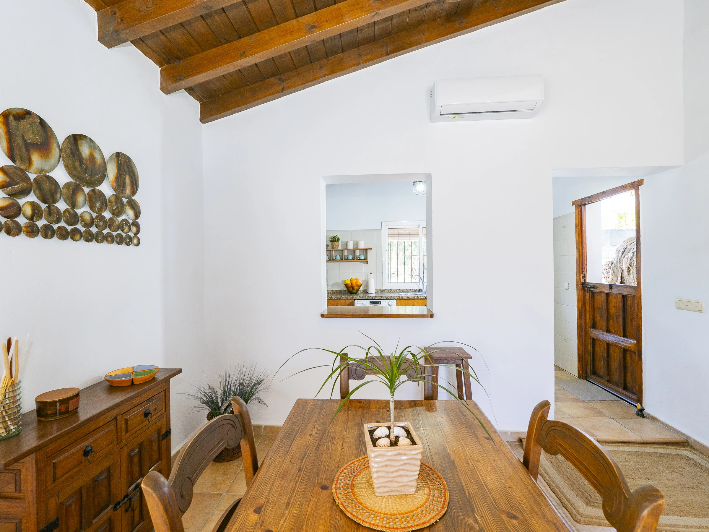 The living-dining room, spacious and functional, connects to an American kitchen fully equipped with modern appliances such as refrigerator, microwave, oven, and coffee maker, ideal for preparing delicious home-cooked meals. Cool nights become cosy thanks to a fireplace (firewood not included). The two bedrooms have air conditioning, built-in wardrobes and exterior views; one with a double bed and another with two single beds, adapting to family needs. The accommodation also has an interior bathroom with shower and an exterior bathroom next to the barbecue area for greater comfort.