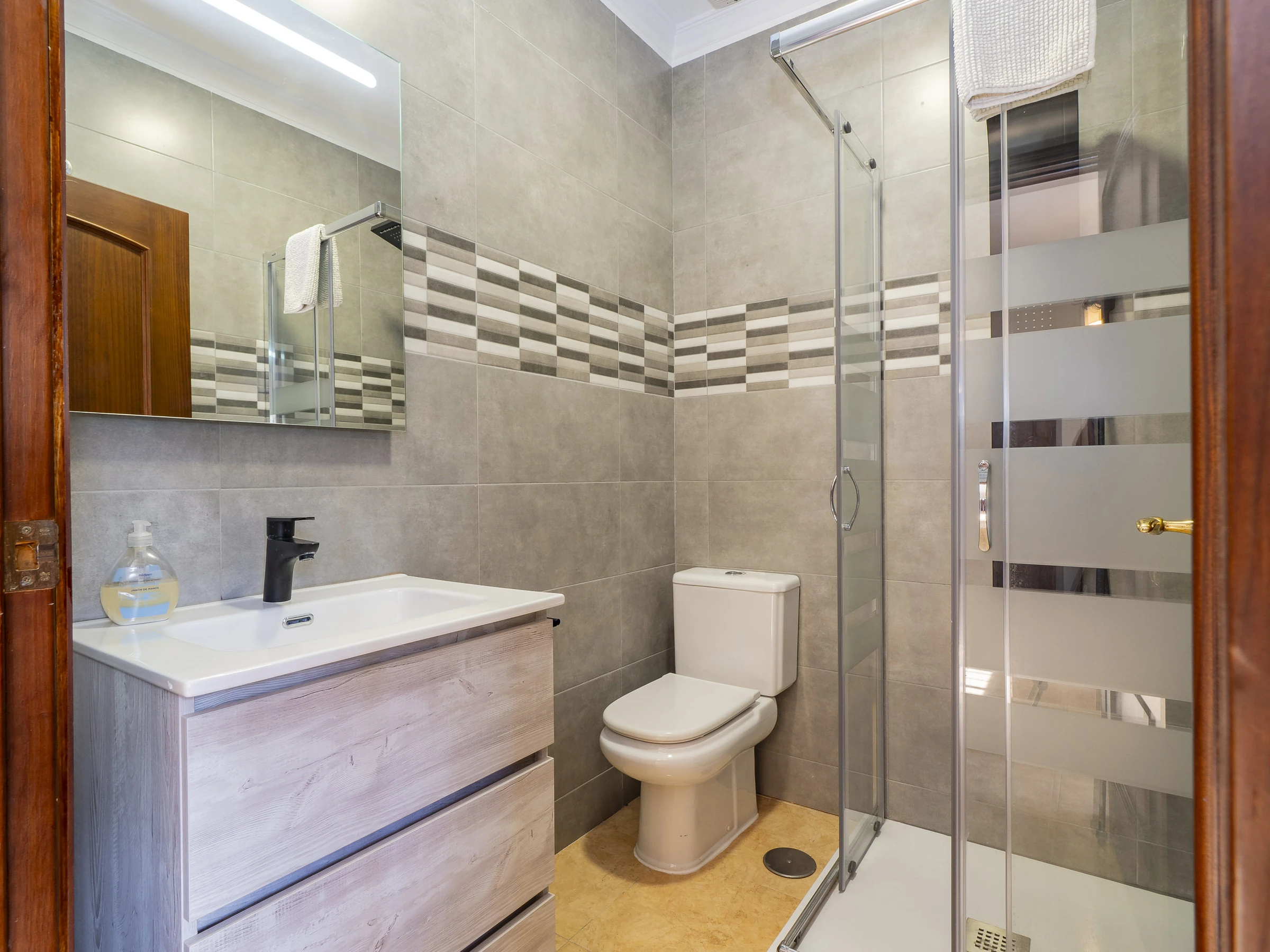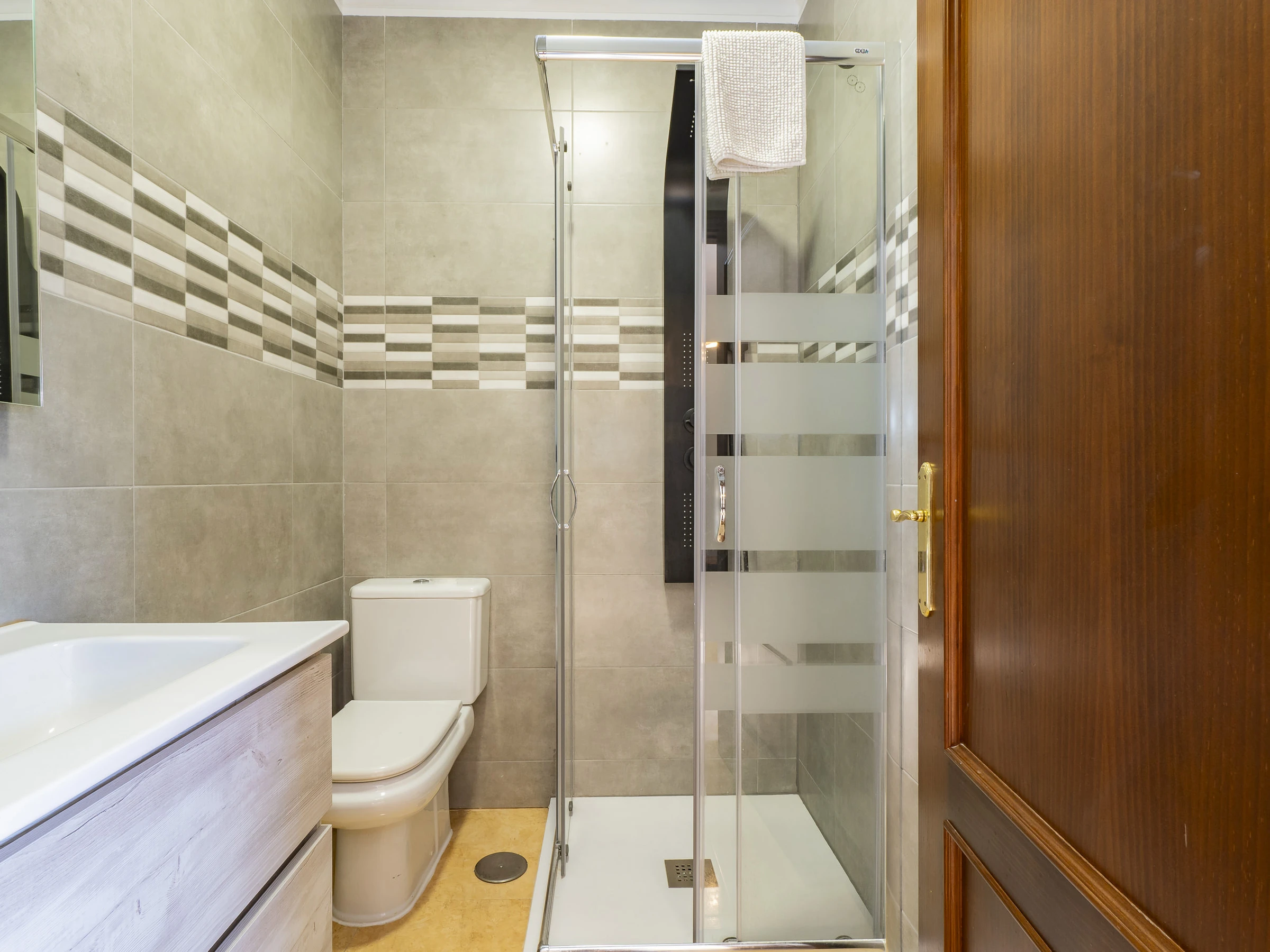 The accommodation offers a spacious and bright living area with a living-dining room and an American kitchen equipped with a ceramic hob, fridge, microwave, freezer, toaster, kettle and all the necessary utensils to feel at home. It has two bedrooms: one with a double bed and an en-suite bathroom with a shower tray, and another with two single beds, both with windows to the outside and furniture to comfortably store your belongings. In addition, it has a second bathroom with a shower tray in the common area.